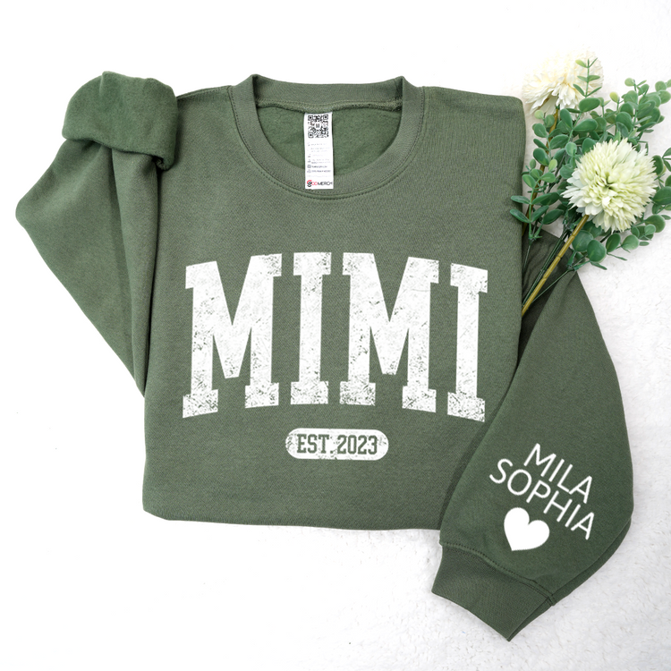 Custom Mimi Est with Granddaughter and Grandson Names Sweatshirt