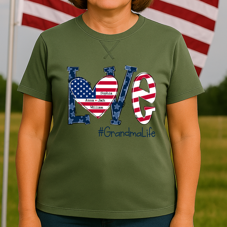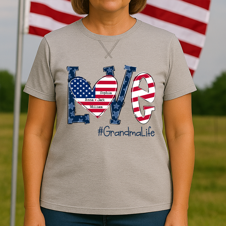 Love Grandma Life With Grandkids Names 4th Of July Flag Classic X-Stitch Tee