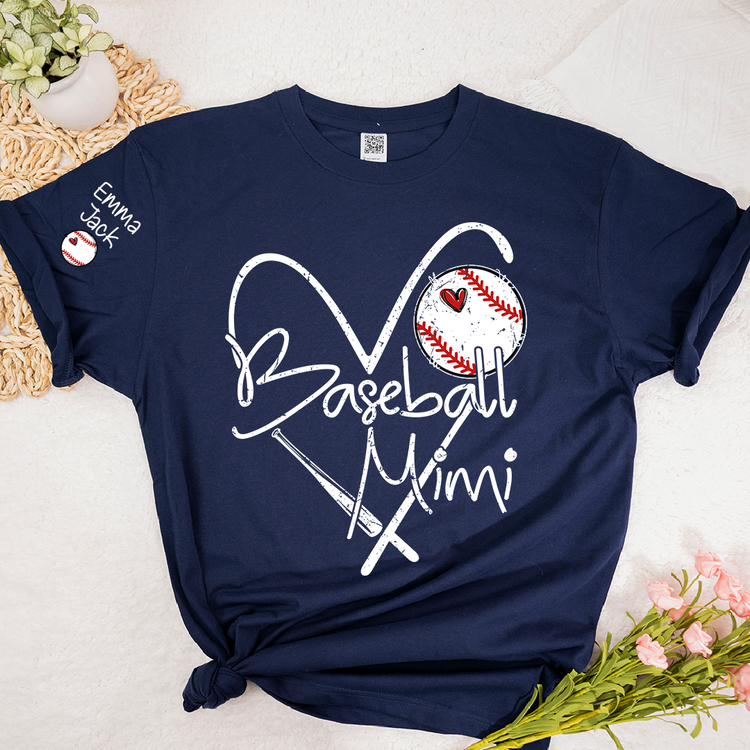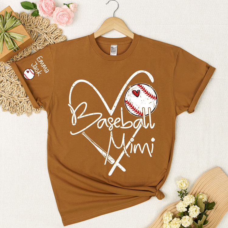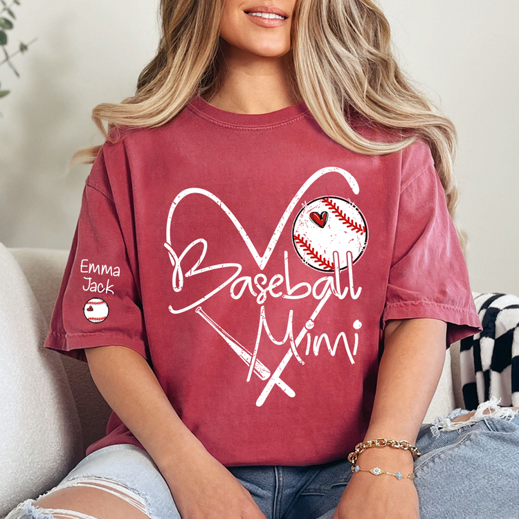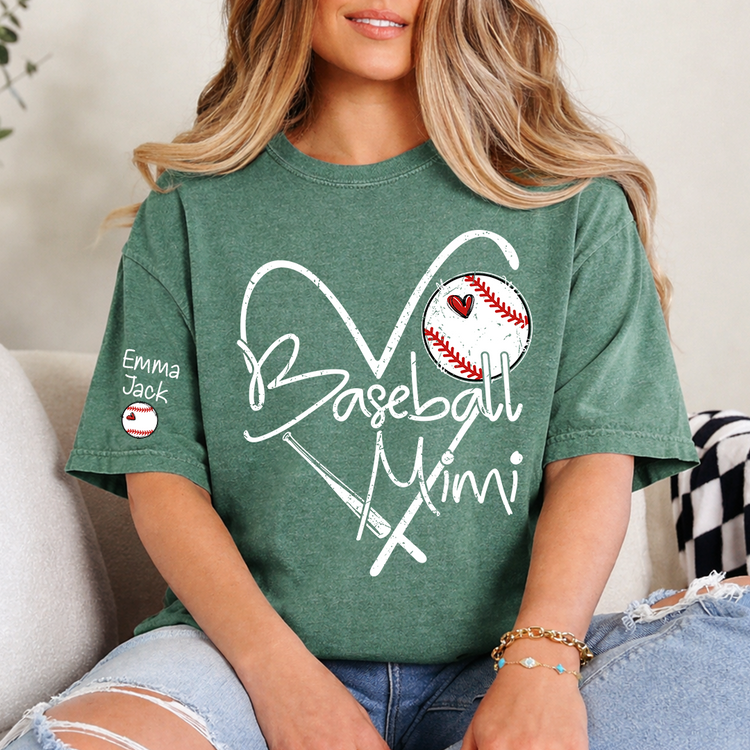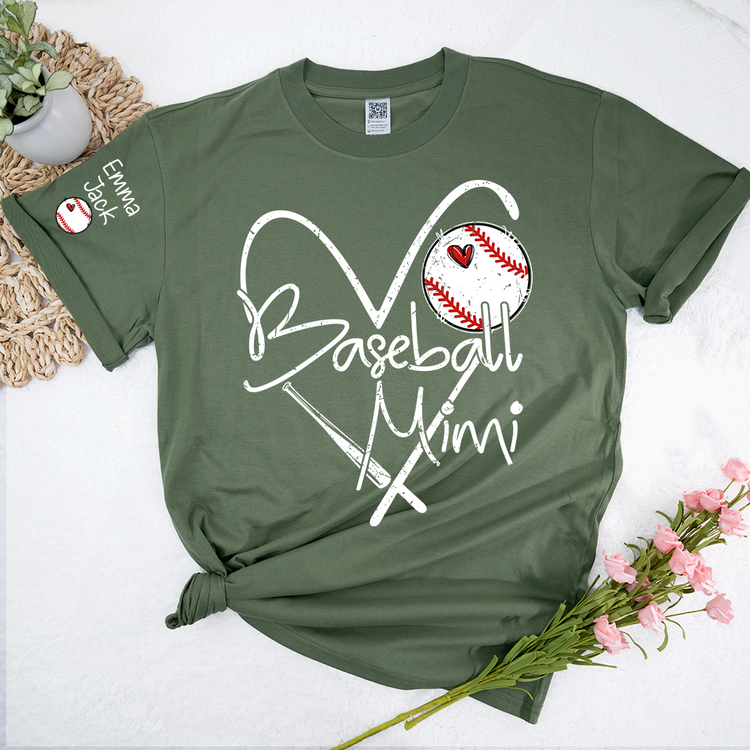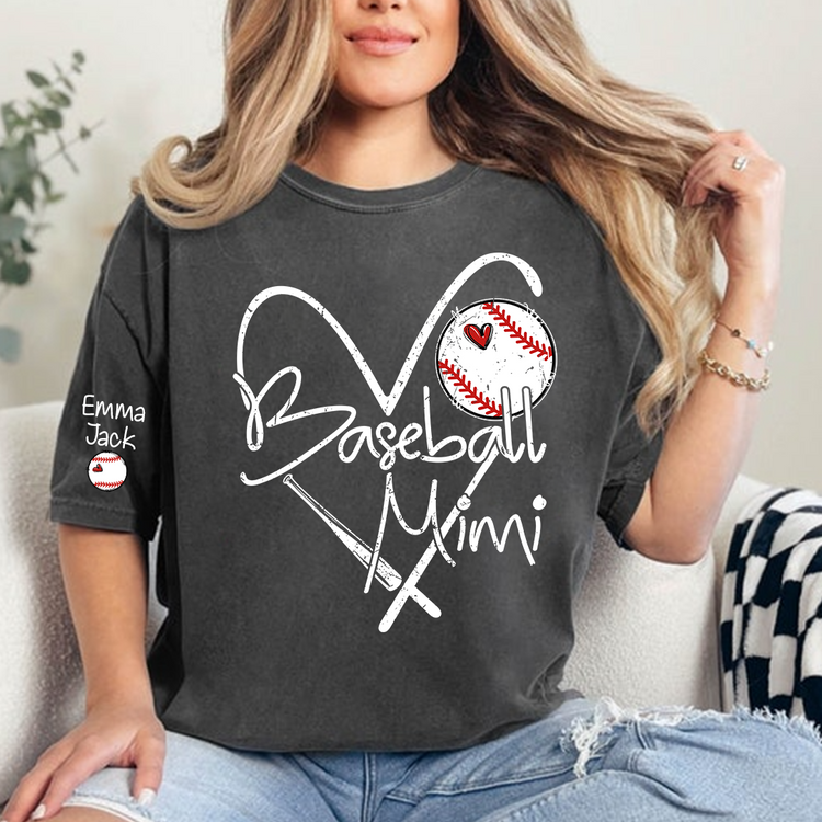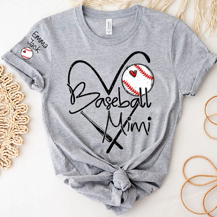 Baseball Mimi Shirt Personalized with Grandkids Names, Heart and Bat Sports Family T Shirt