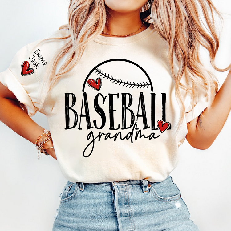 Baseball Nana Personalized T-Shirt, Cute Heart Baseball Design Nana T-Shirt