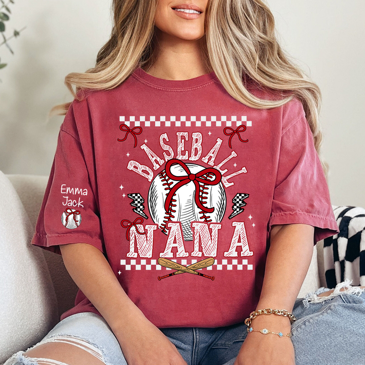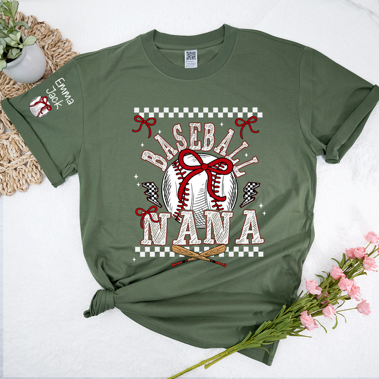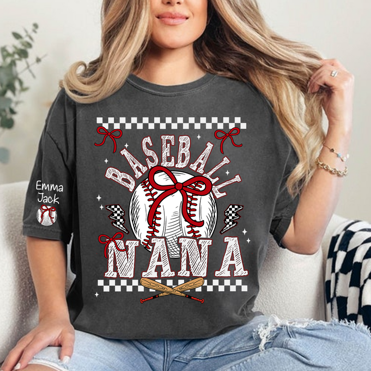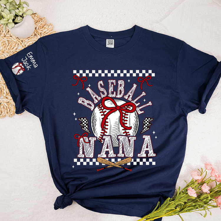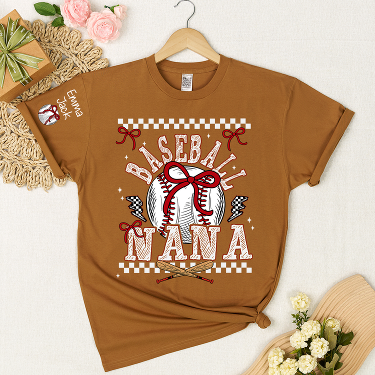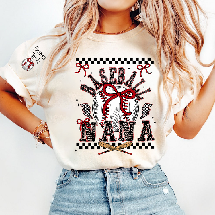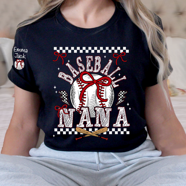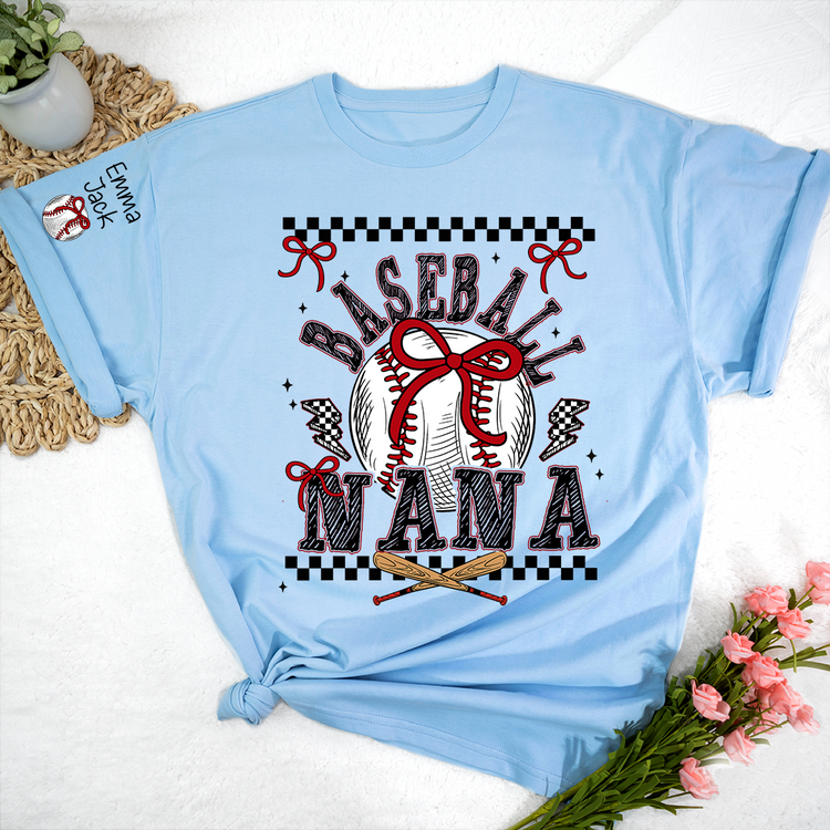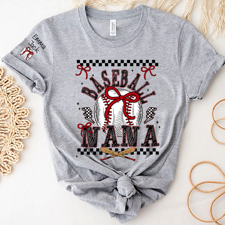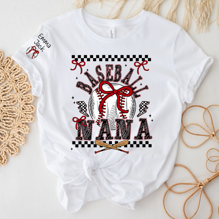 Baseball Nana T-Shirt, Personalized Nana T-Shirt with Bow and Vintage Baseball Design