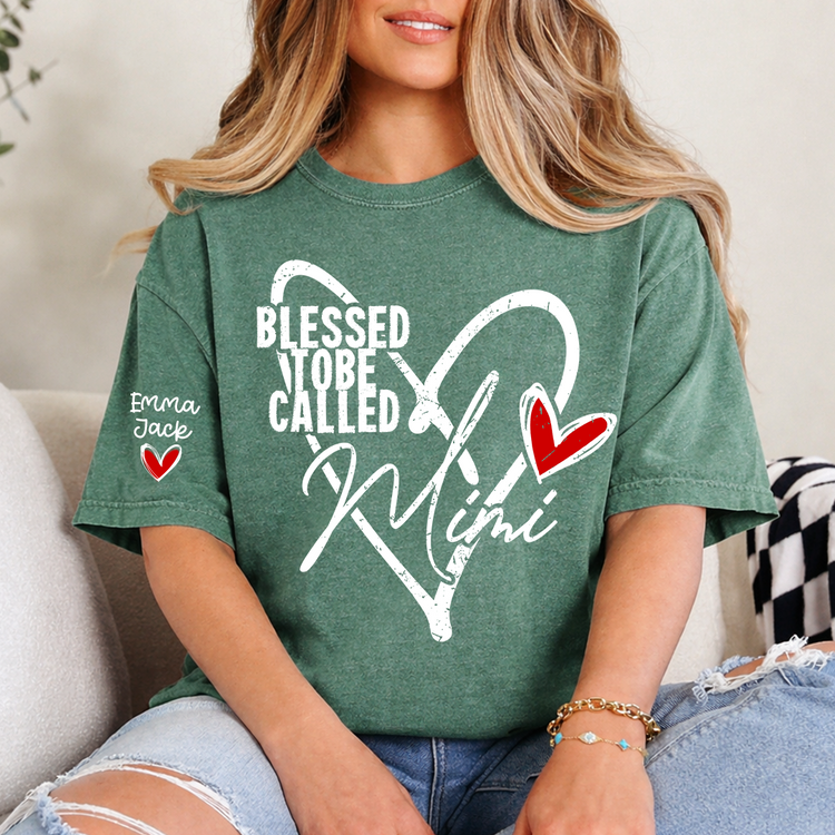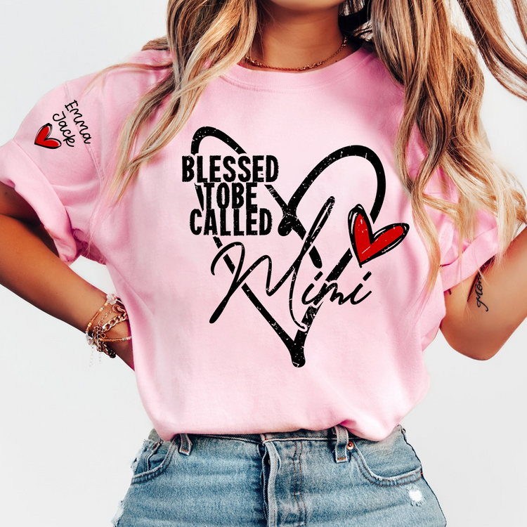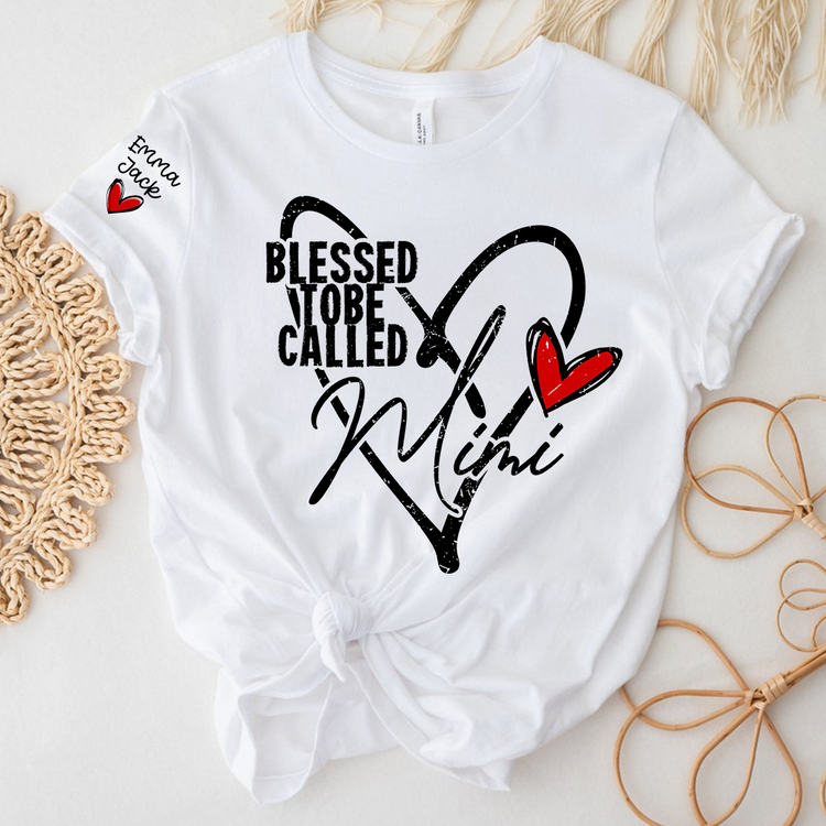 Blessed To Be Called Mimi Shirt with Names on Sleeve, Gift for Mimi
