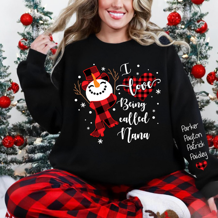 I Love Being Called Grandma Sweatshirt – Personalized Snowman Christmas Shirt with Grandkids' Names