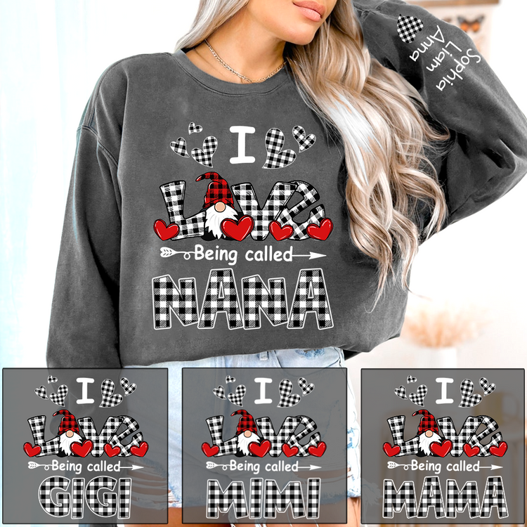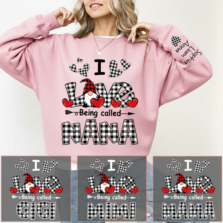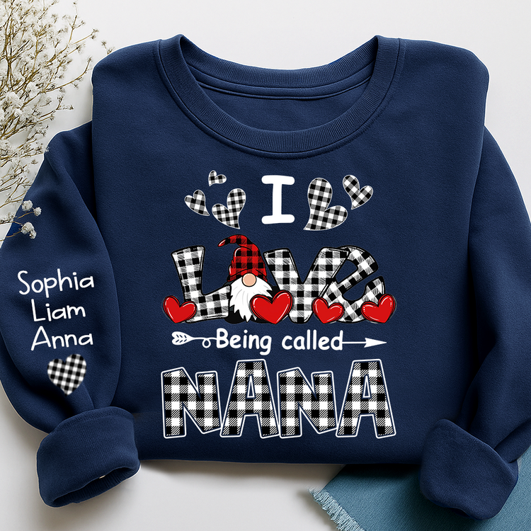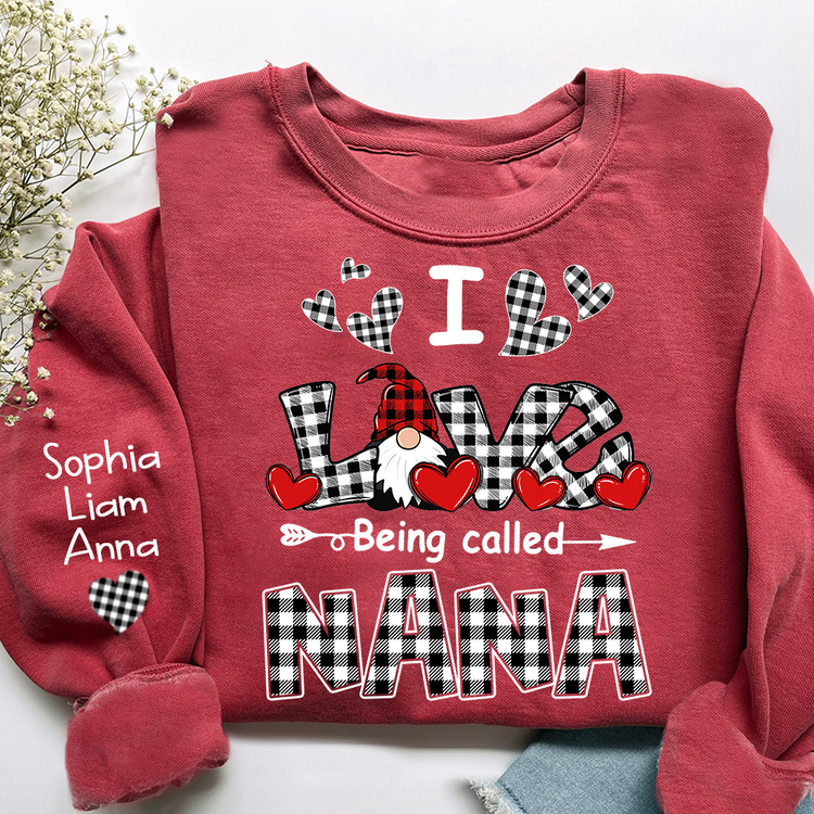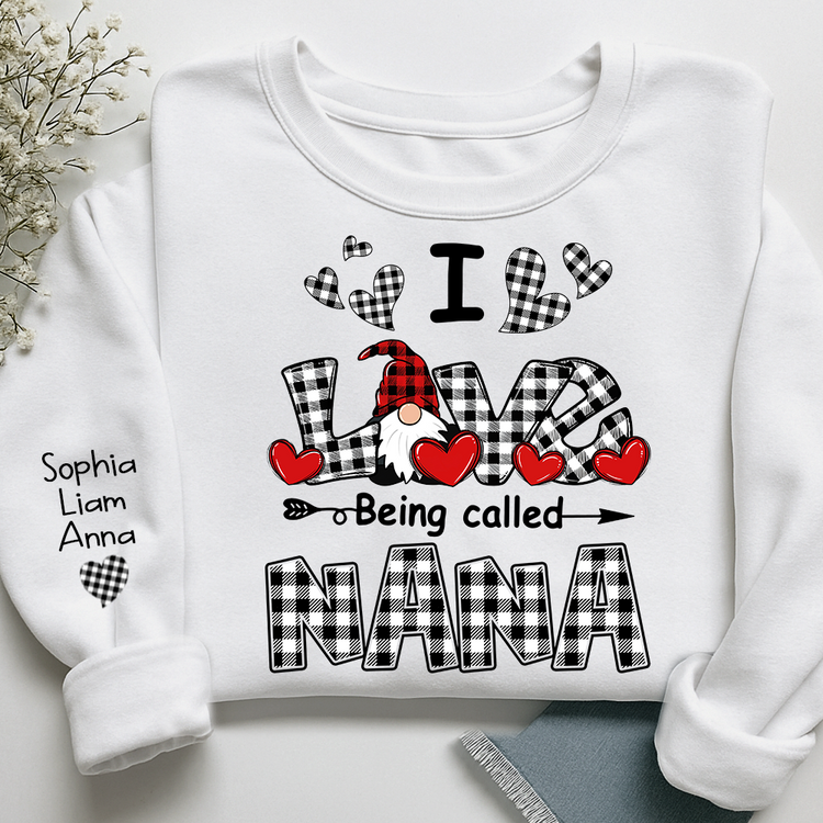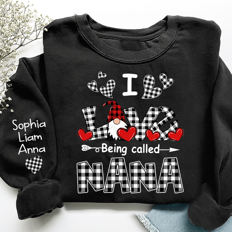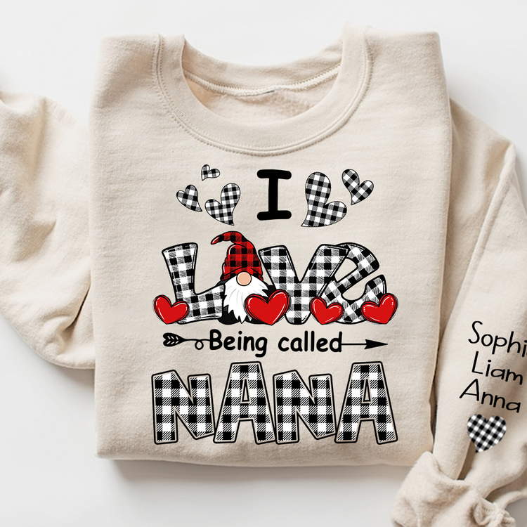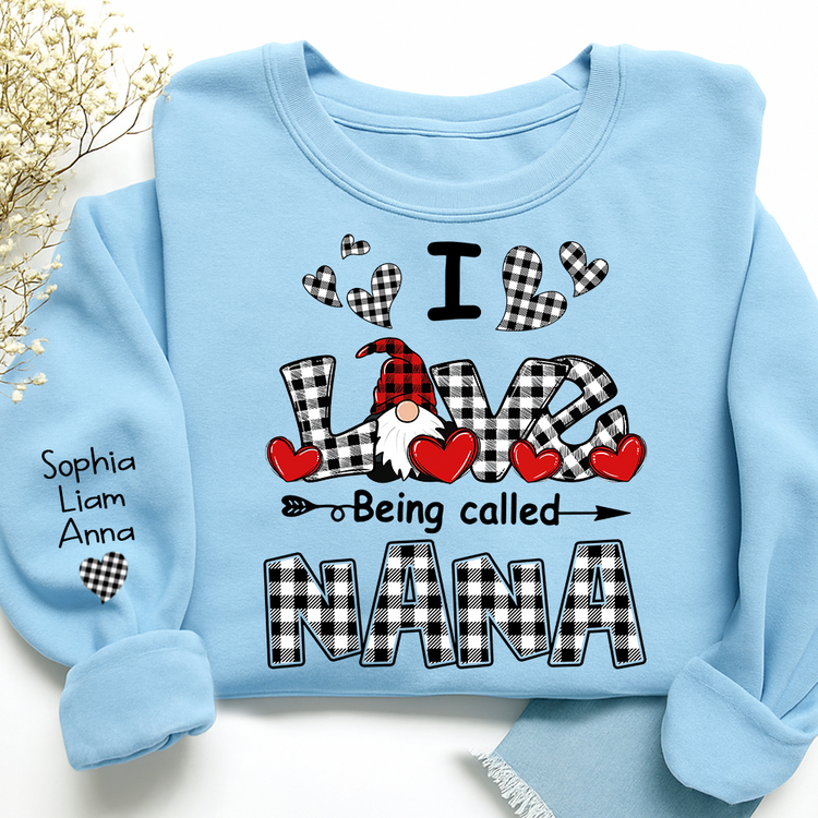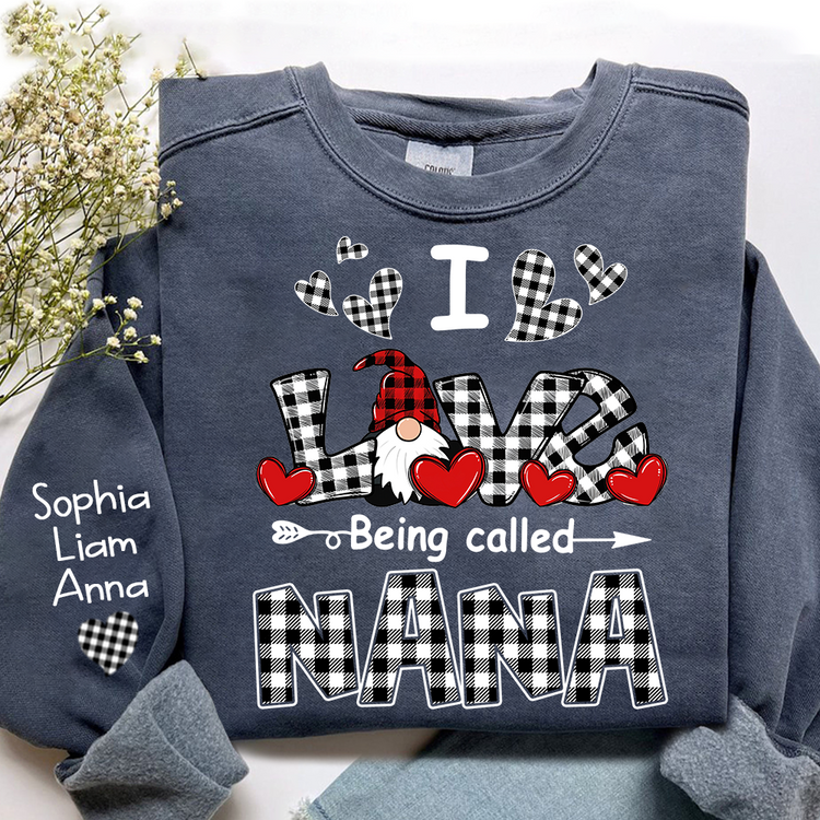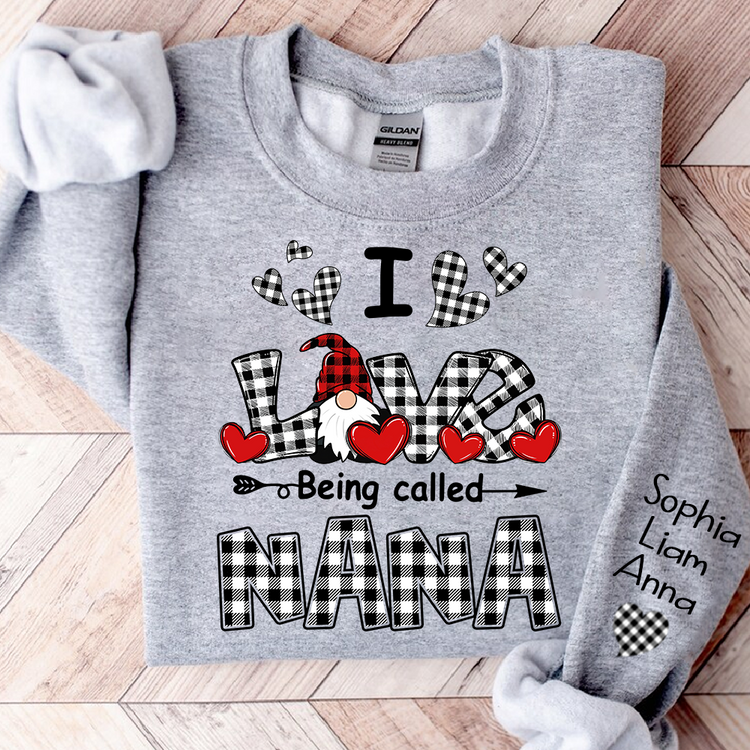 I Love Being Called Nana Sweatshirt, Gingham Heart Gnome, For Gift Valentine Grandma And Kids