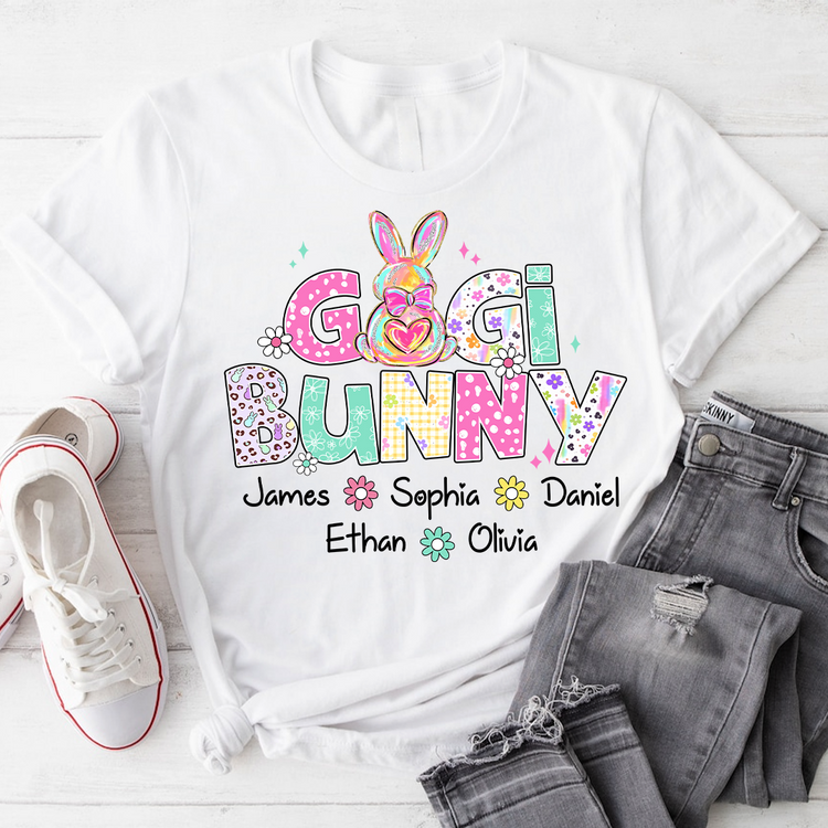 Nana Bunny Mimi Grandma Nana and Grandkids Easter Day T-shirt