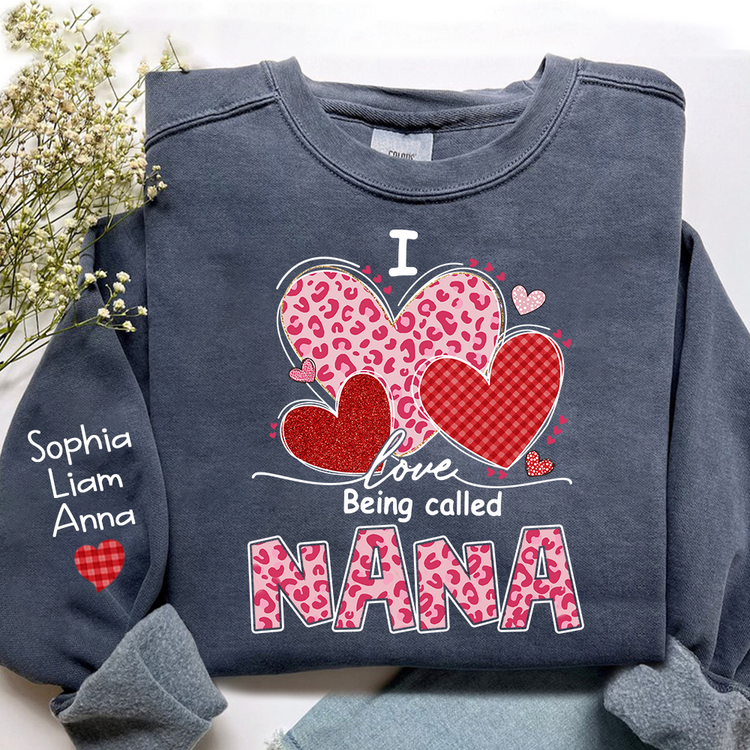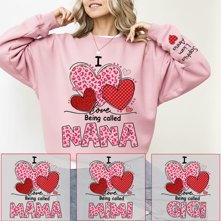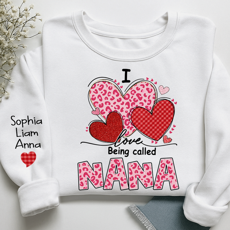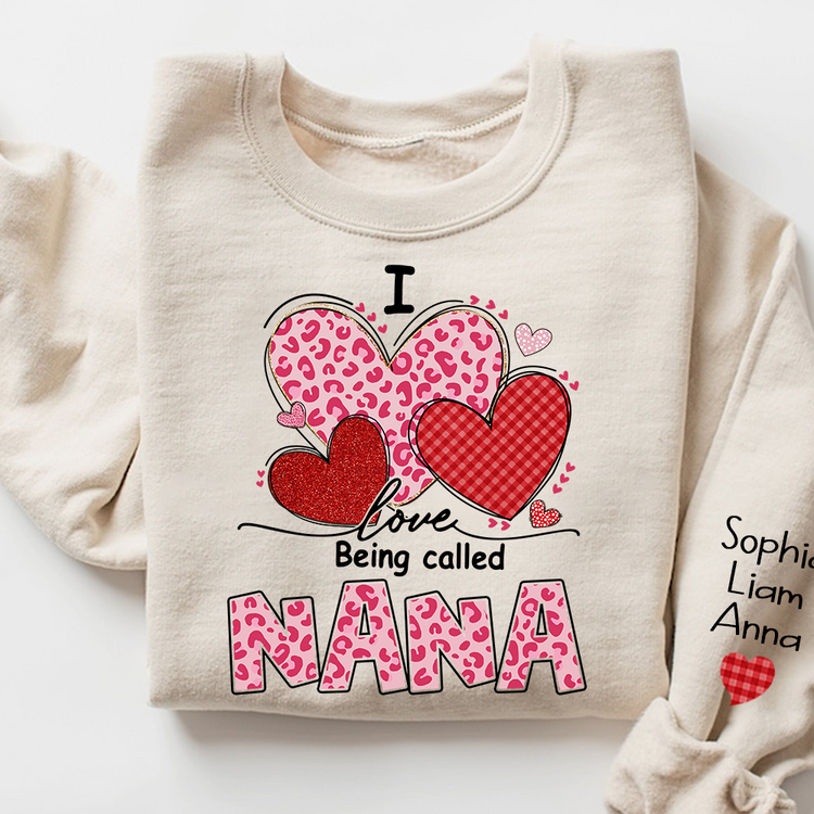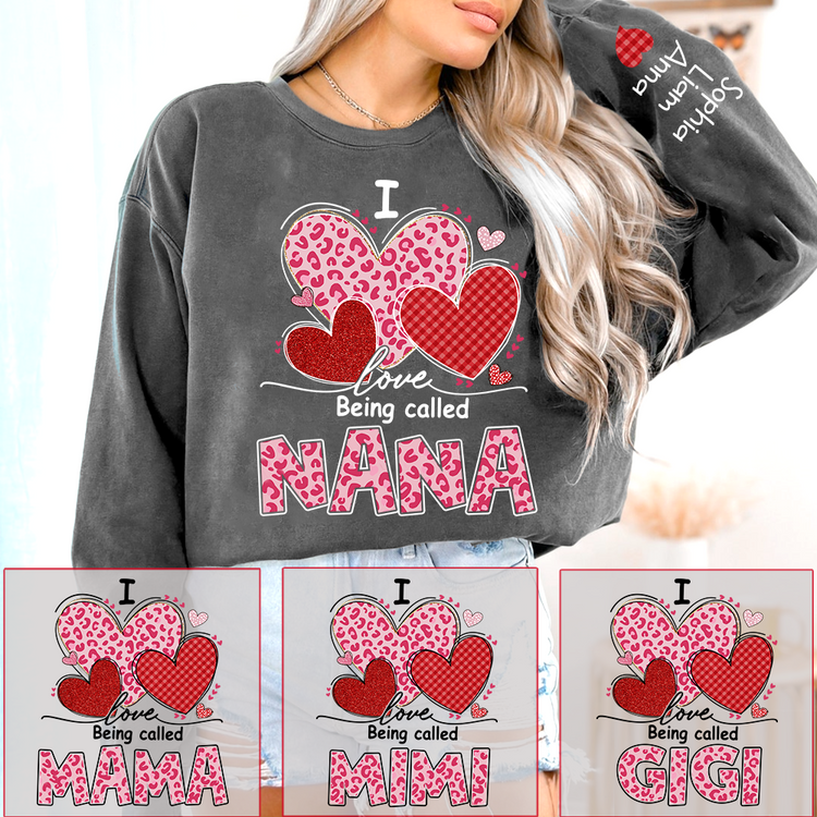 Personalized Mimi Sweatshirt, I Love Nana Leopard Heart Graphic, Cozy Valentine Family Style