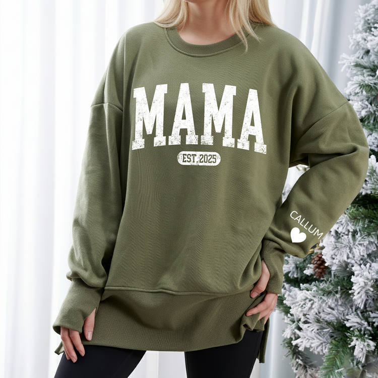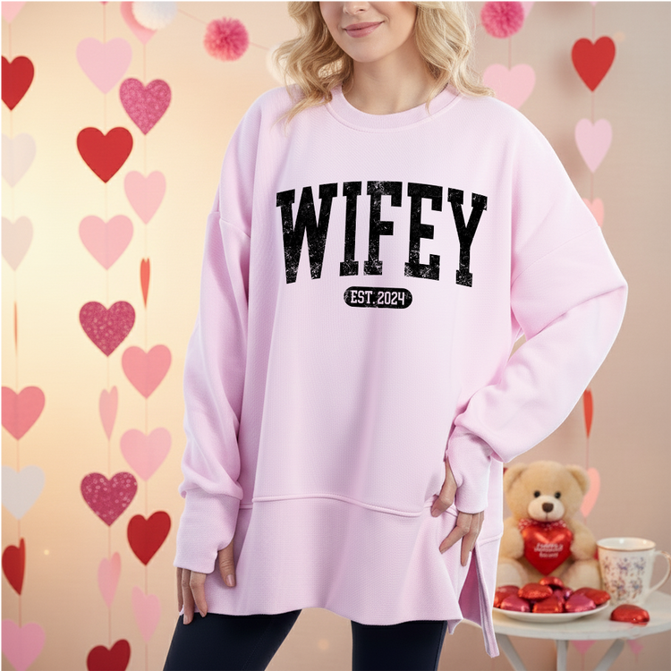 Personalized Wifey Women Oversized Sweatshirts Thumbhole Long Sleeve, Thumbhole Fall Side Slit Pullover