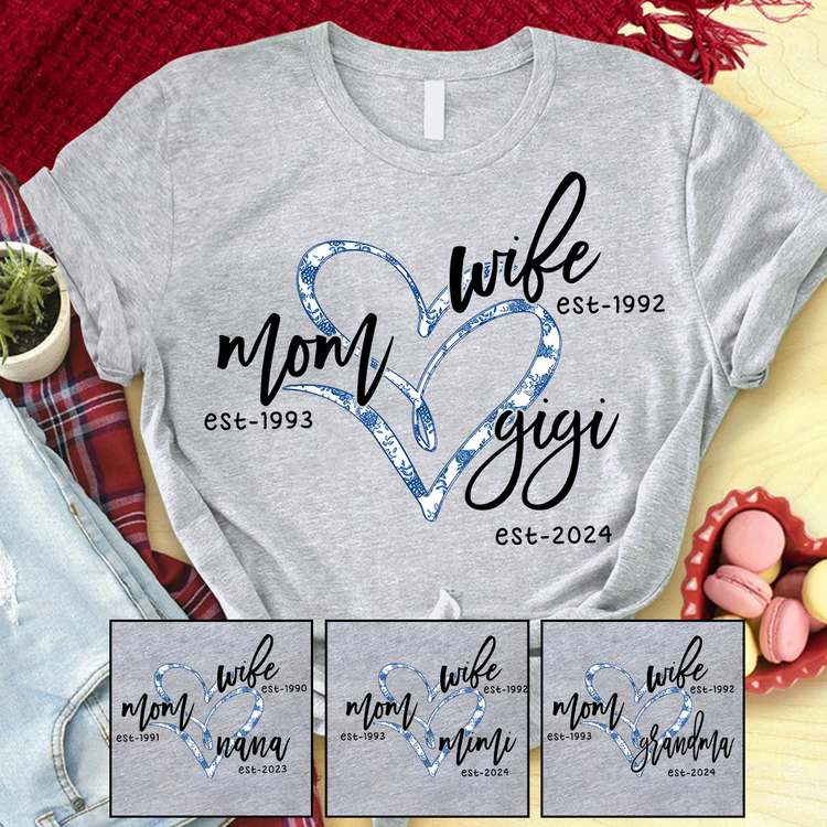 Wife Mom Gigi Est Year Blue Flower CTH01