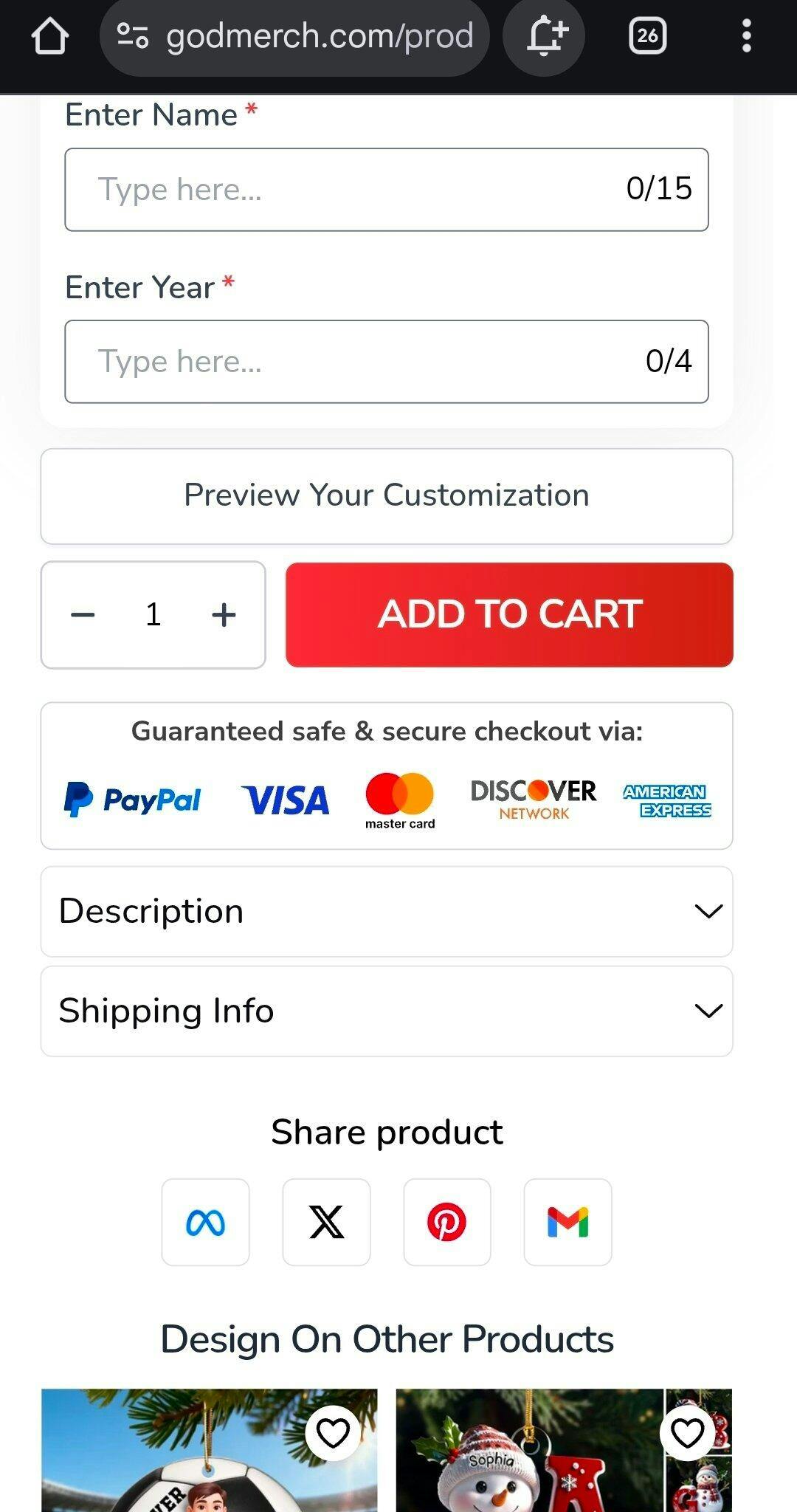 Hello, I ordered 3 softball bag and 1 football ornament. What I received looked nothing like the pictures on the website. The website pictures look 3-dimensional. What you get is a flat acrylic ornament that is very shiny and poorly colored. STAY AWAY from them. You will be very disappointed considering their cost.