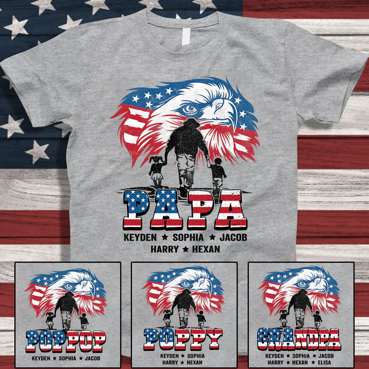 American Eagle Flag Papa And Grandkids CTH01 T-Shirt