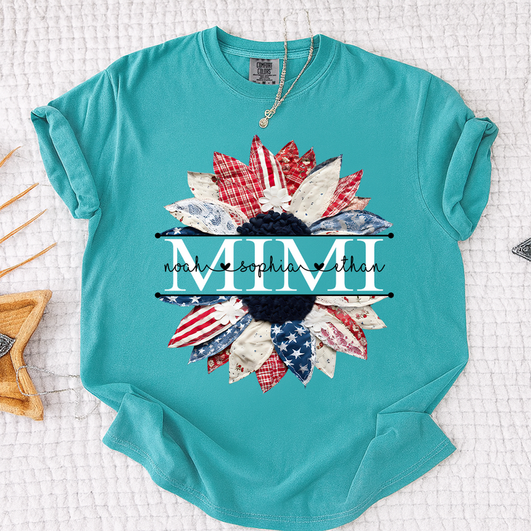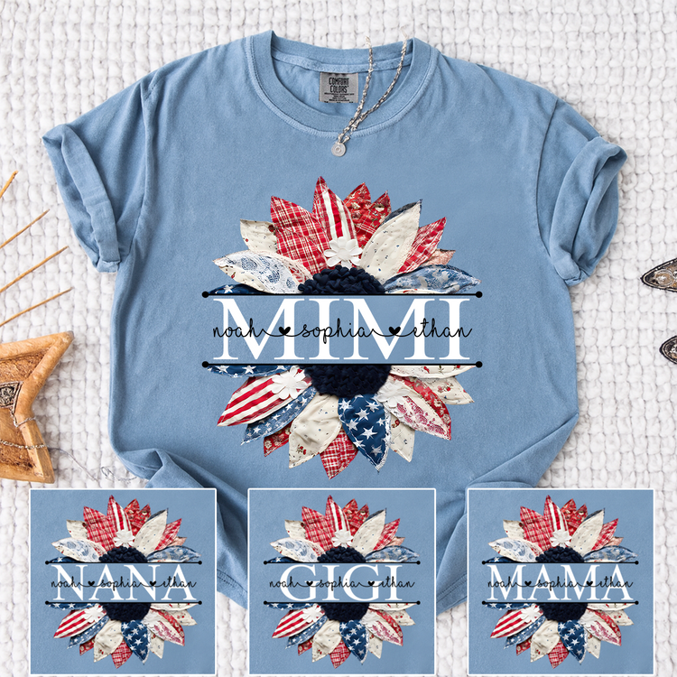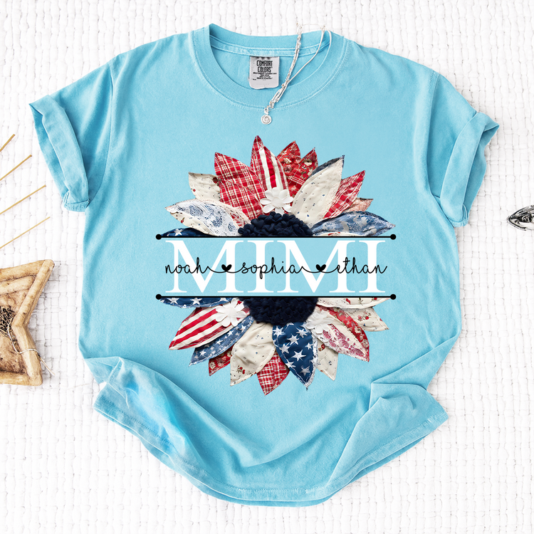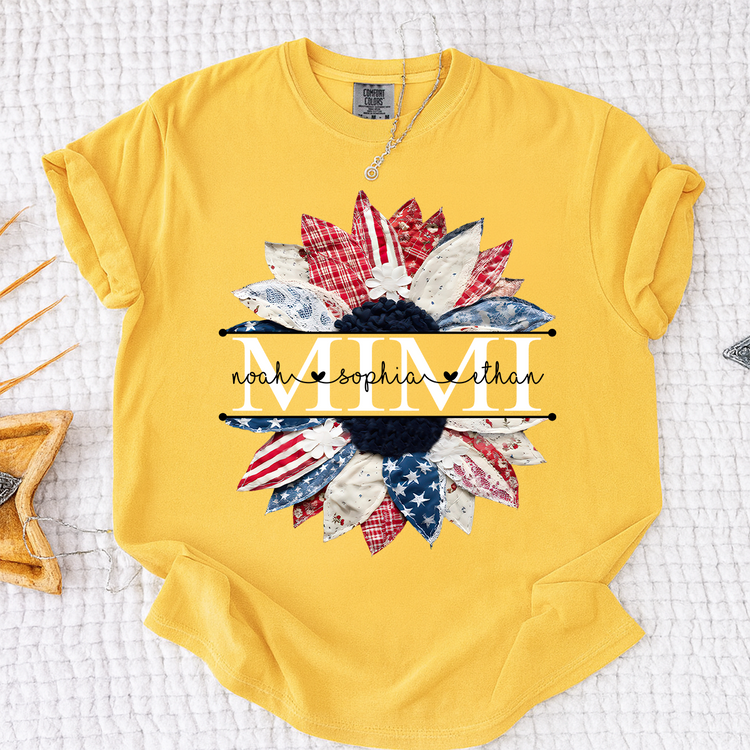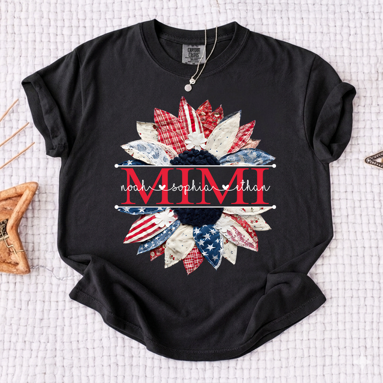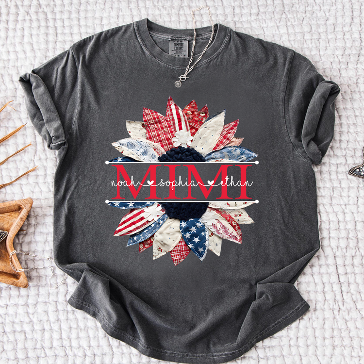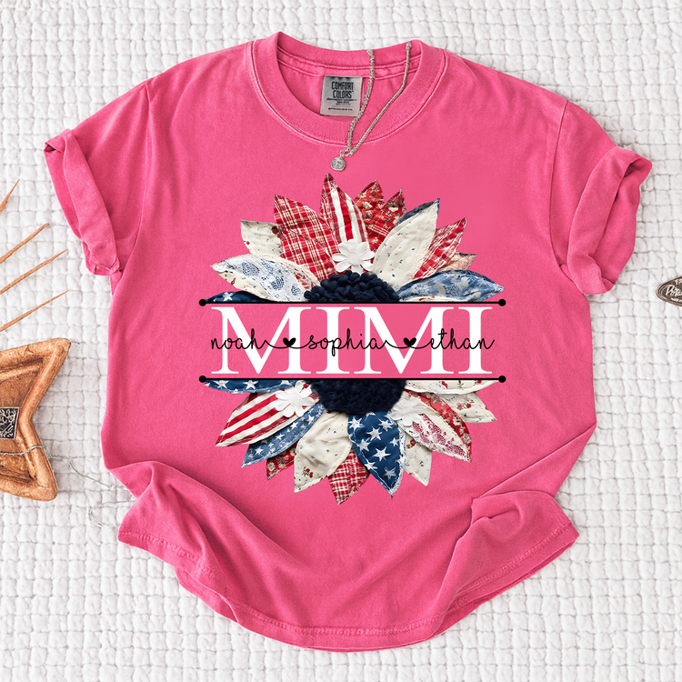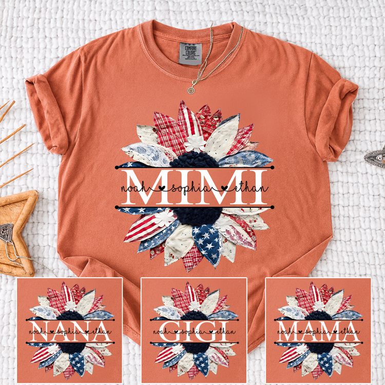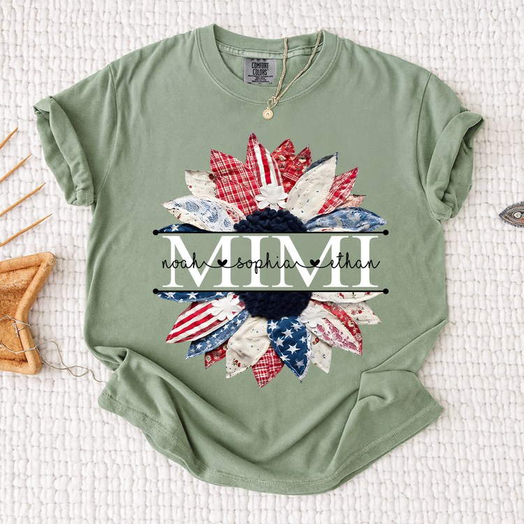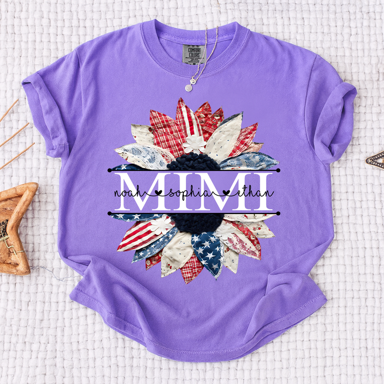 Comfort Colors Mimi Patchwork Floral Shirt with Custom Grandkids Names, Personalized Family Tee