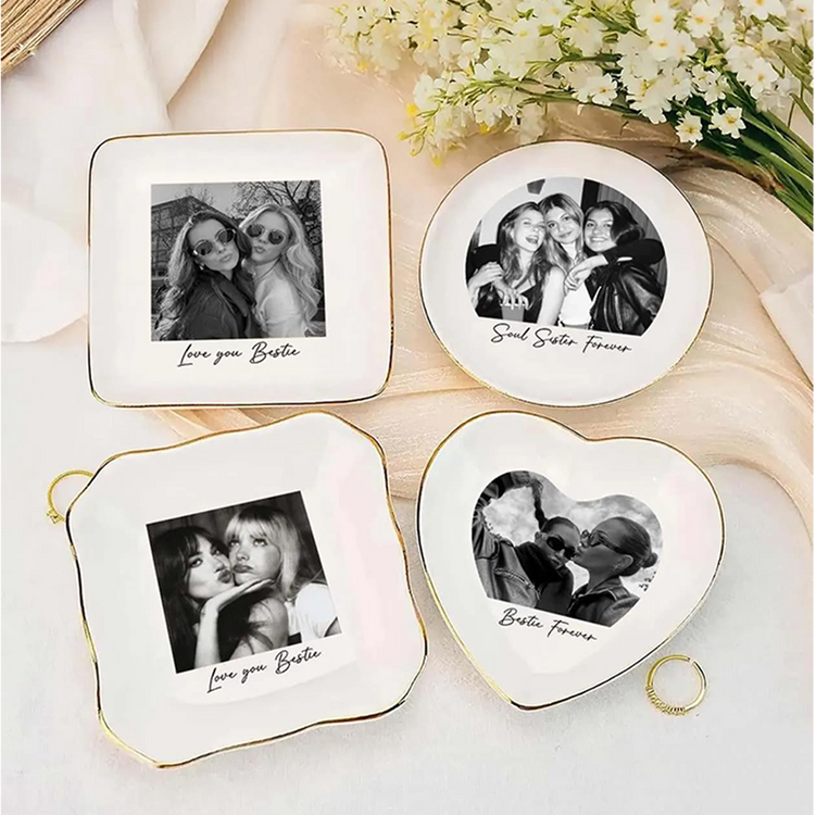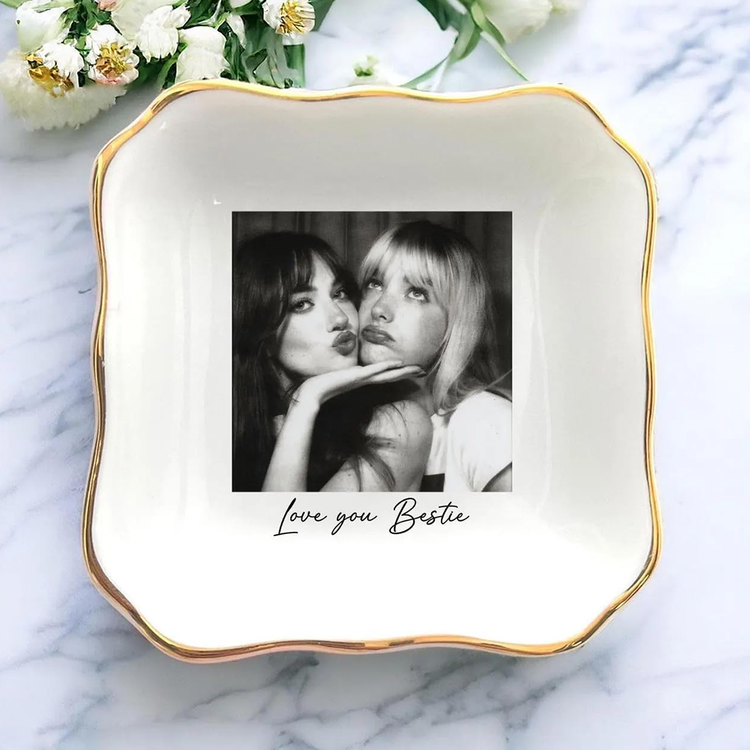 Custom Bestie Photo Trinket Tray For Best Friend Friendship Thank You Gifts - Personalized Jewelry Dish