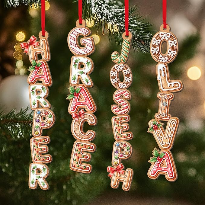 Custom Gingerbread Letter Christmas Ornament – Personalized Family Name, Initial Alphabet Monogram & Tree Decoration for 2025 Holidays