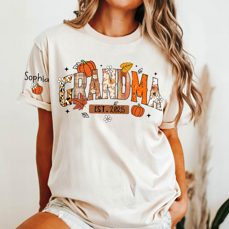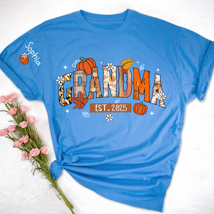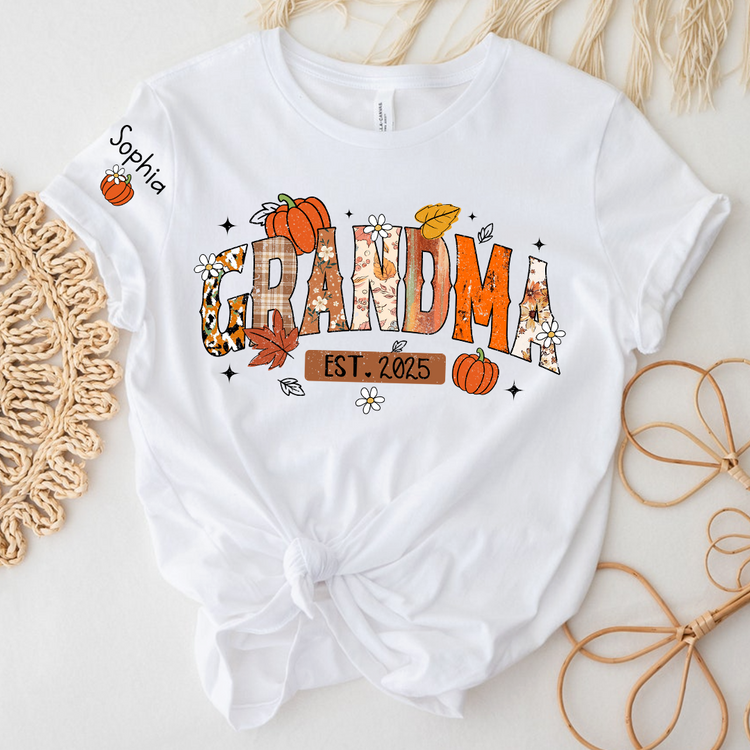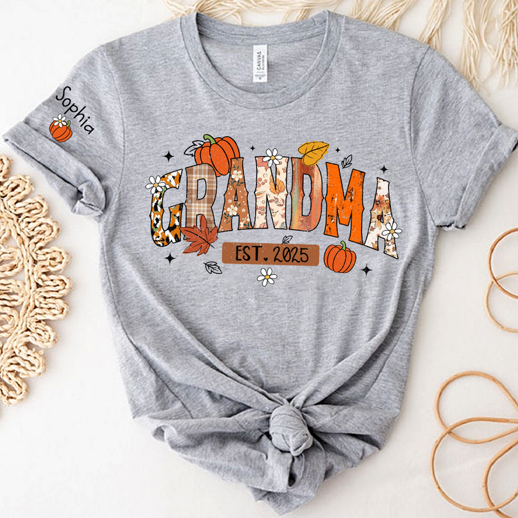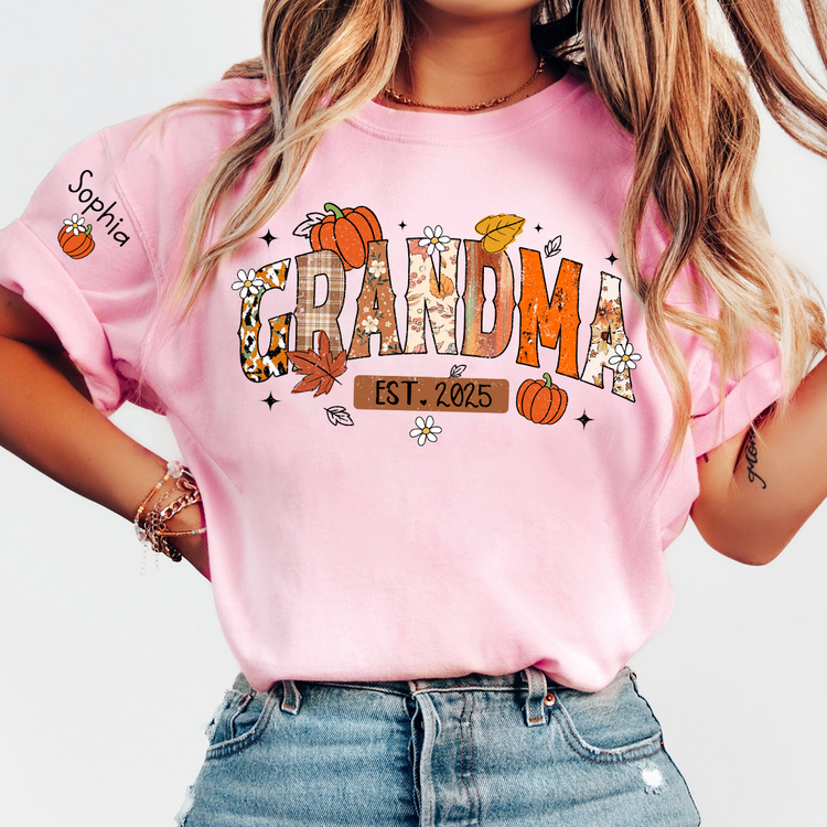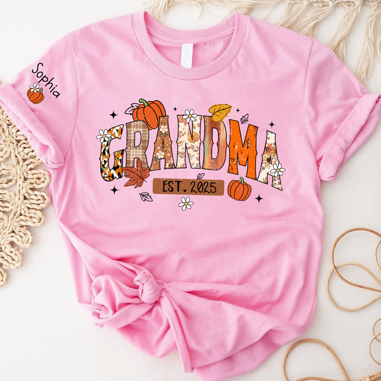 Custom Grandma Pumkin Tshirt, Personalized For Grandma And Kids
