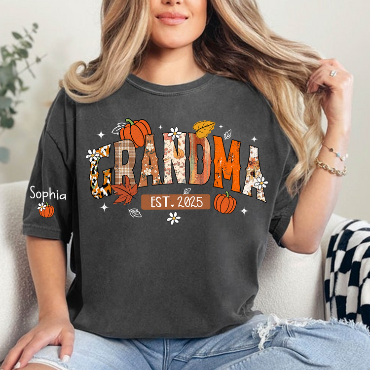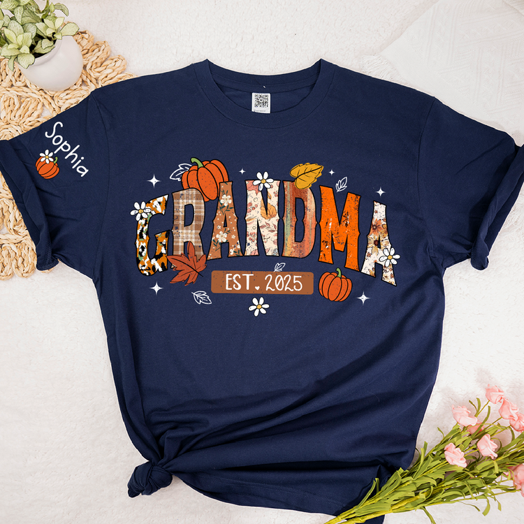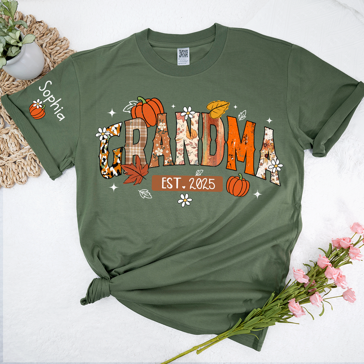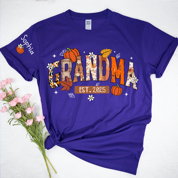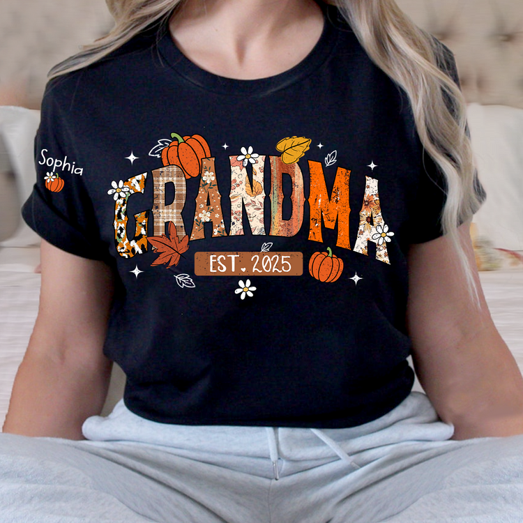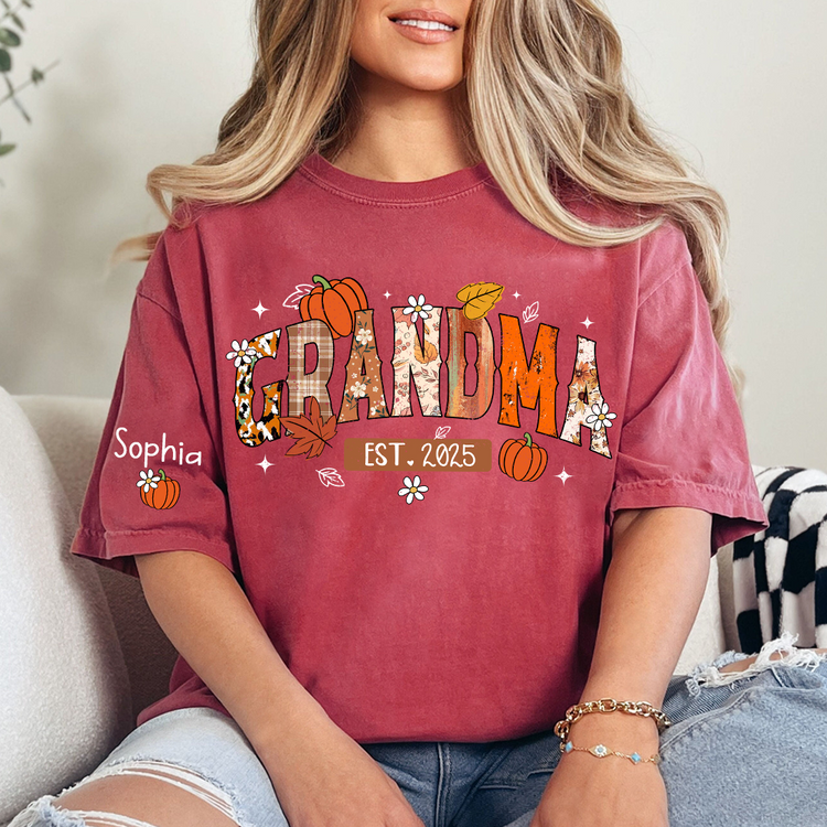 Custom Grandma Pumkin Tshirt, Personalized For Grandma And Kids