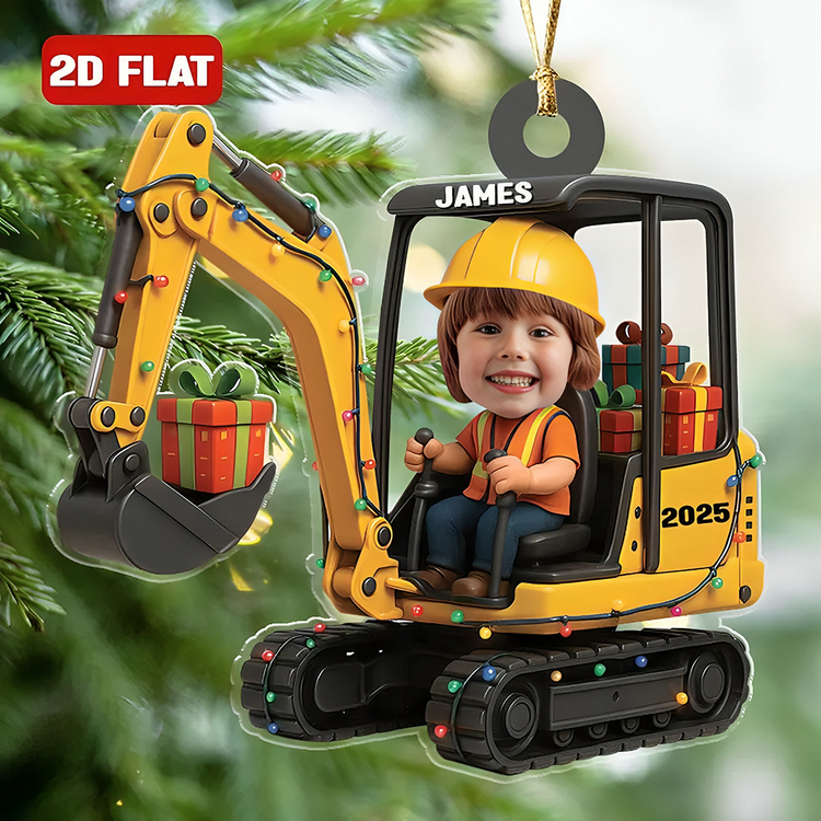 Custom Kid Face Cartoon Excavator Ornament – Personalized Acrylic Decoration, Unique Christmas Gift for Kids and Families Ornament