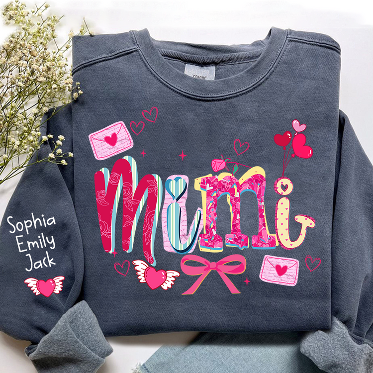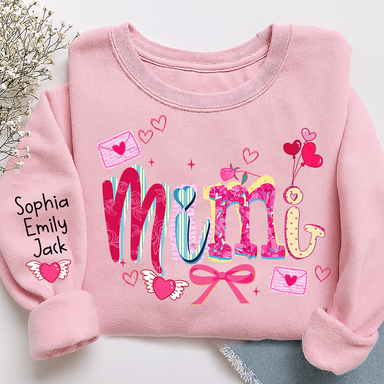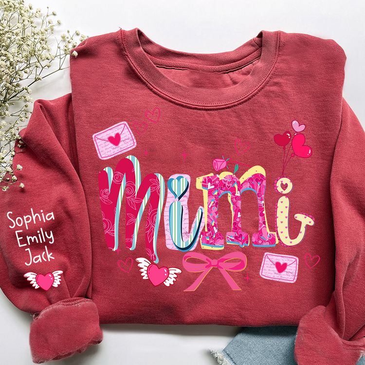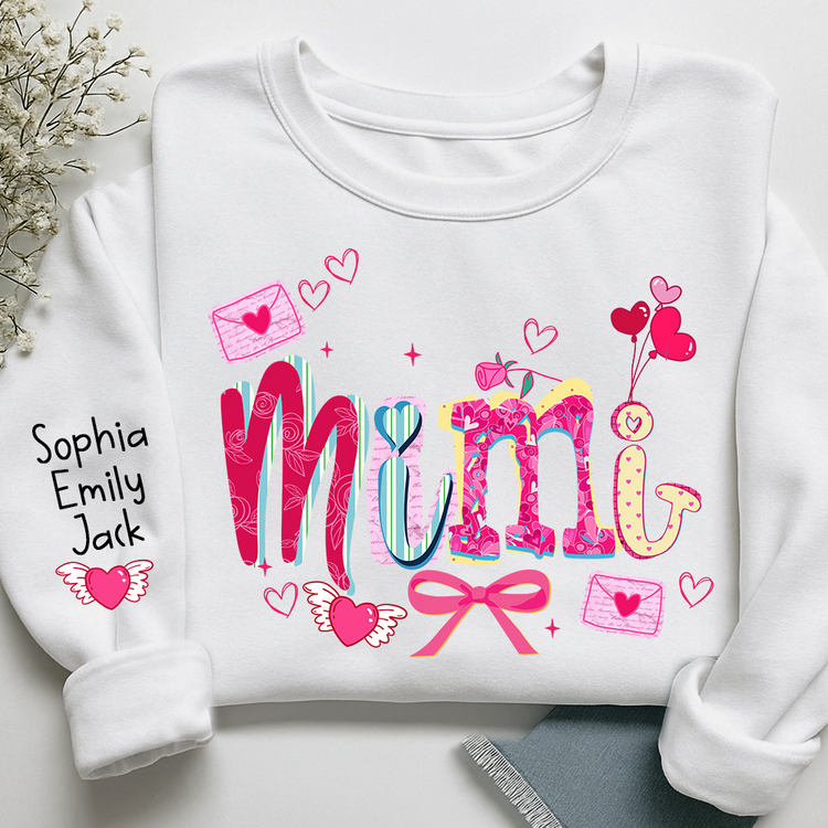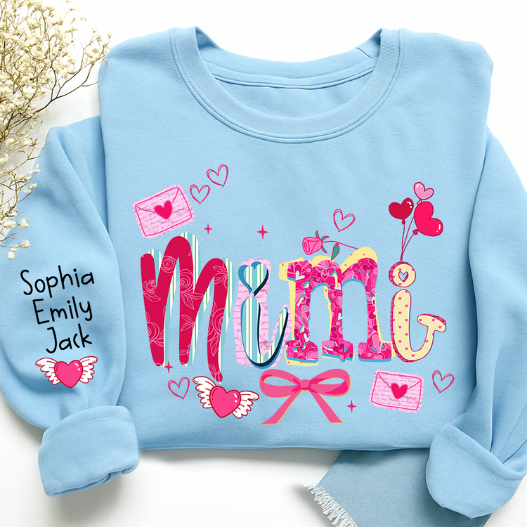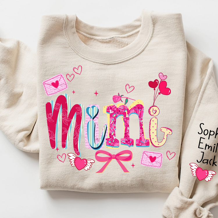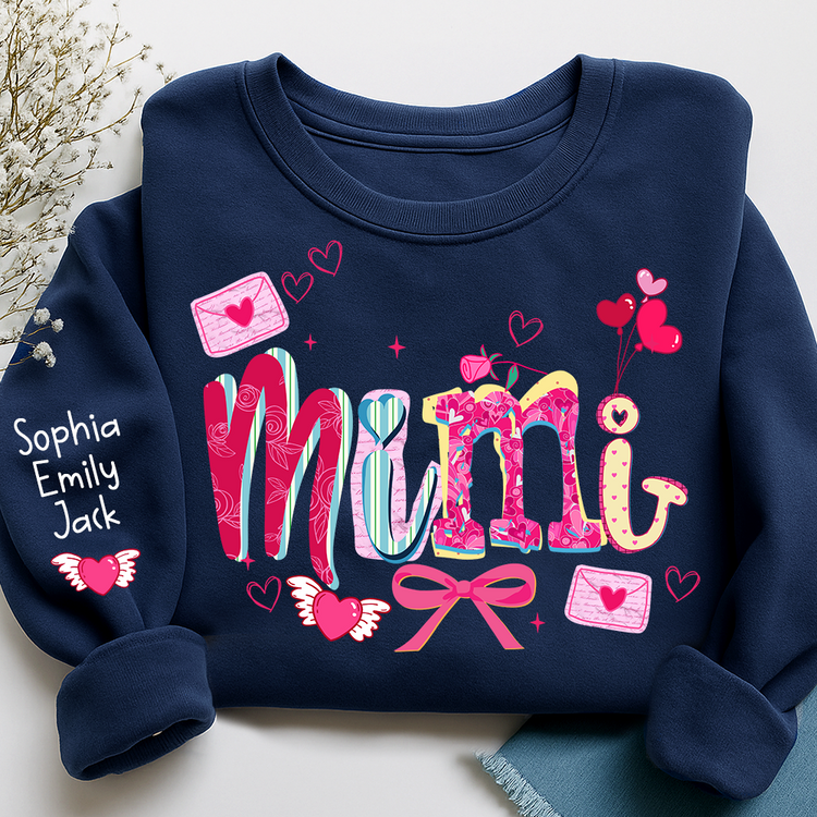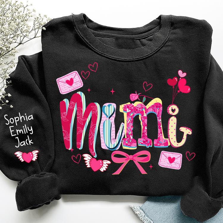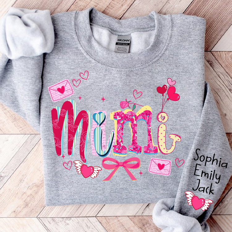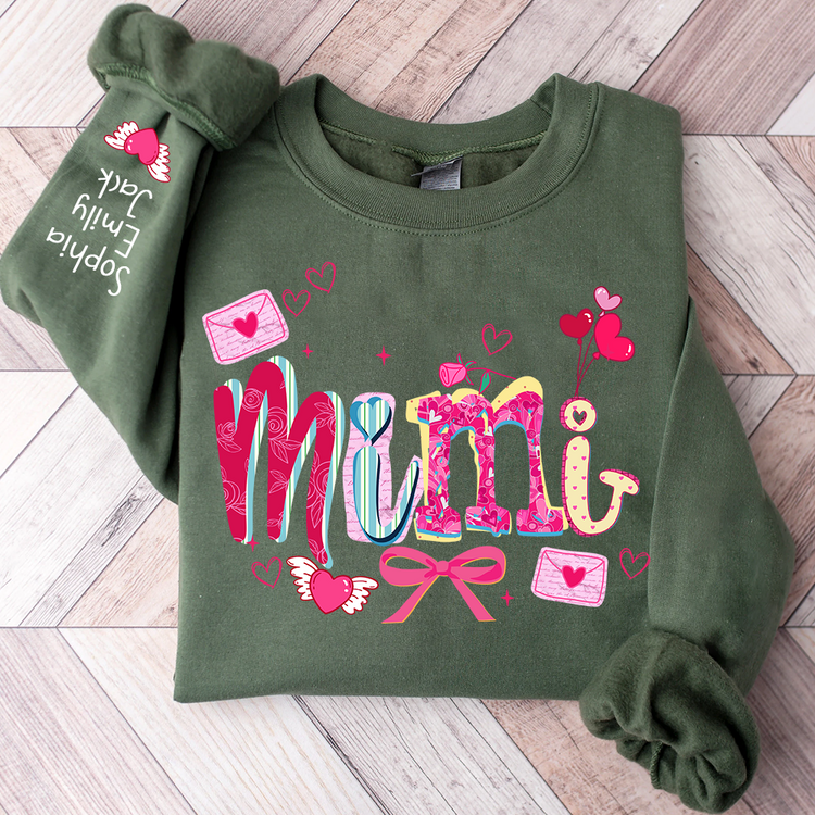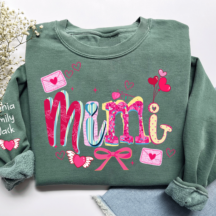 Custom Mimi Valentine Brushstroke Sweatshirt, Heart Shaped valentine Gift for Grandma And Kids