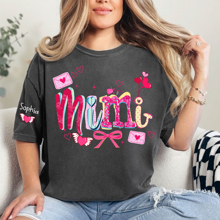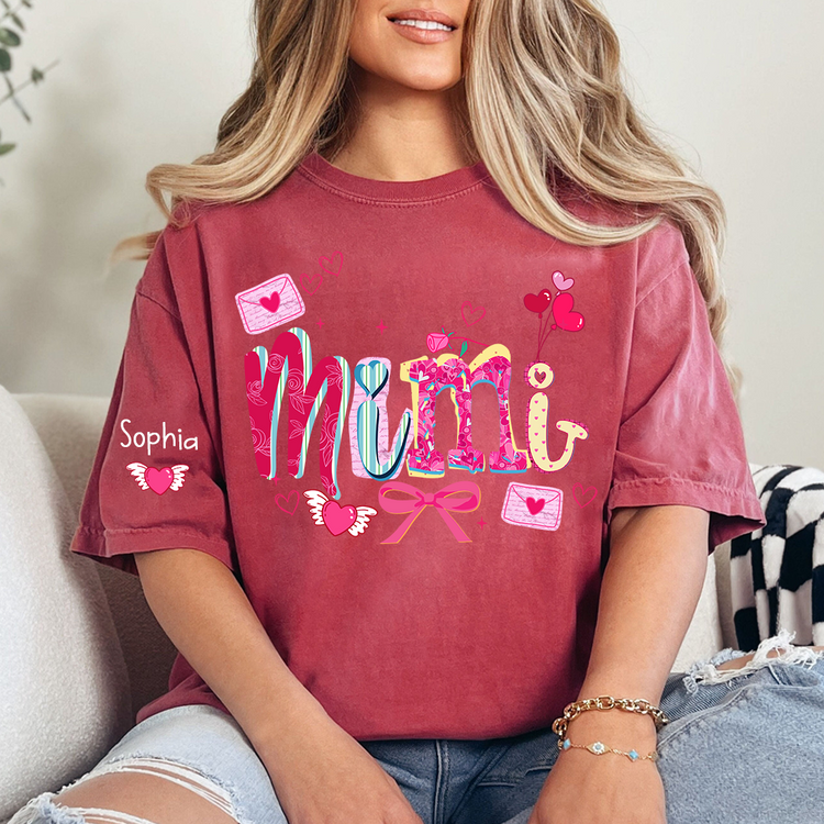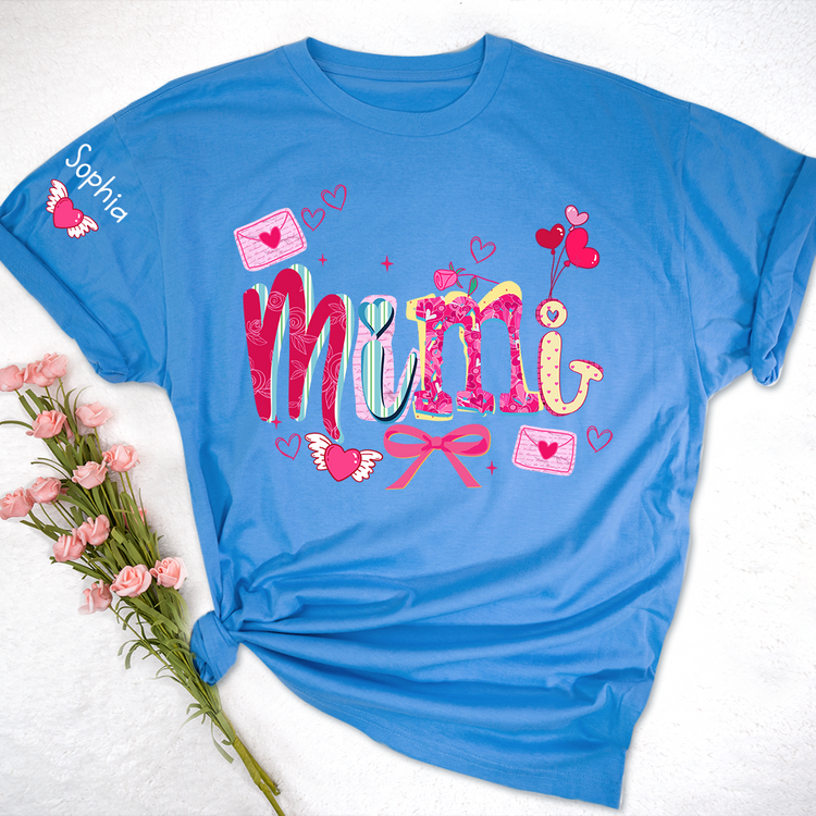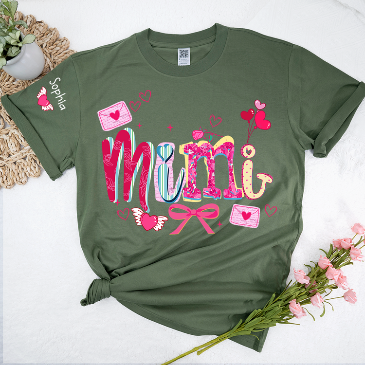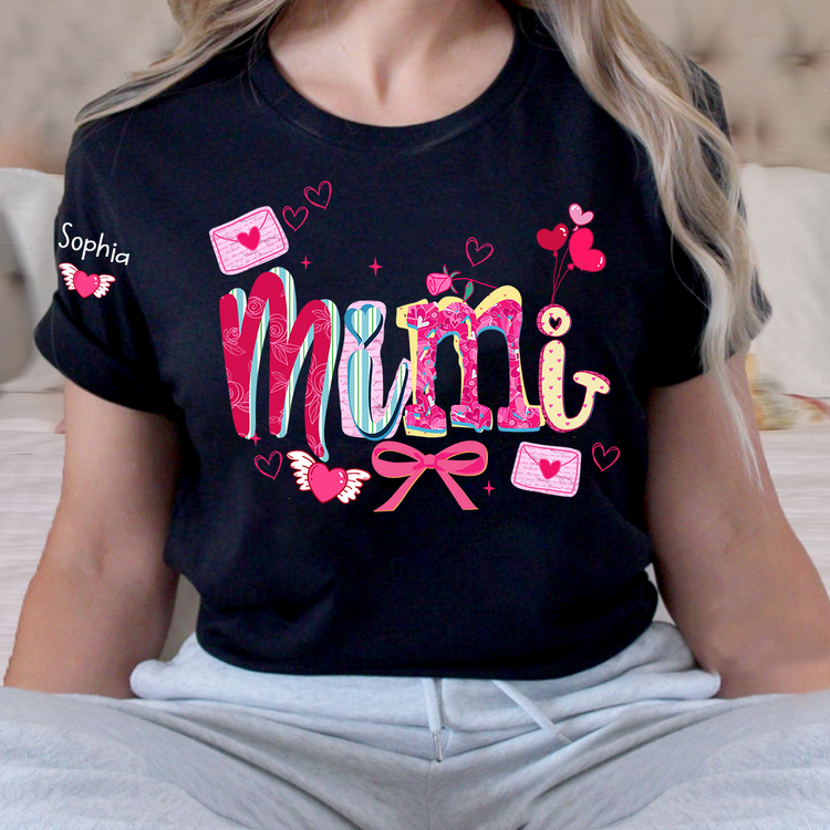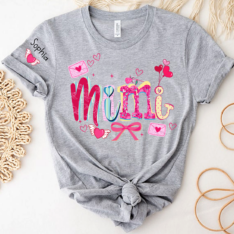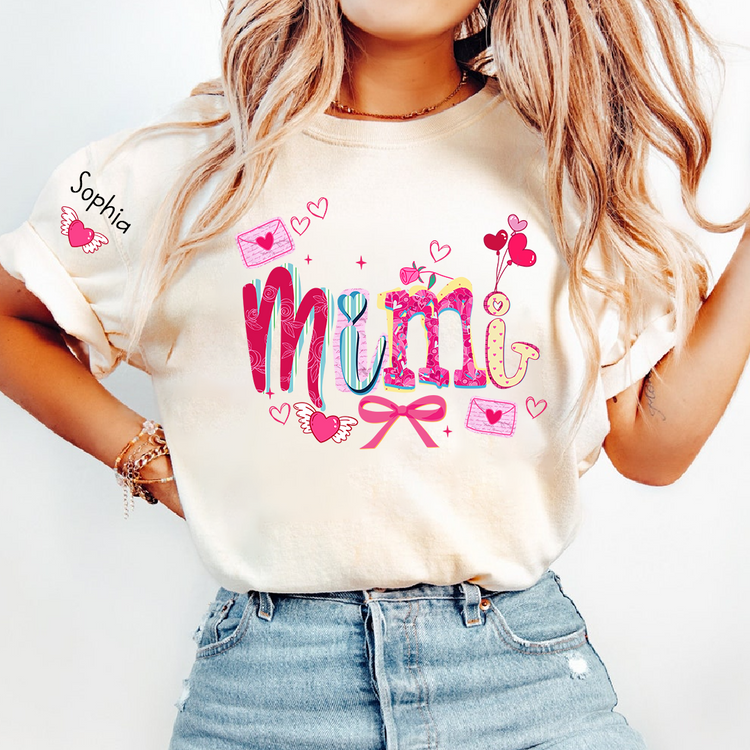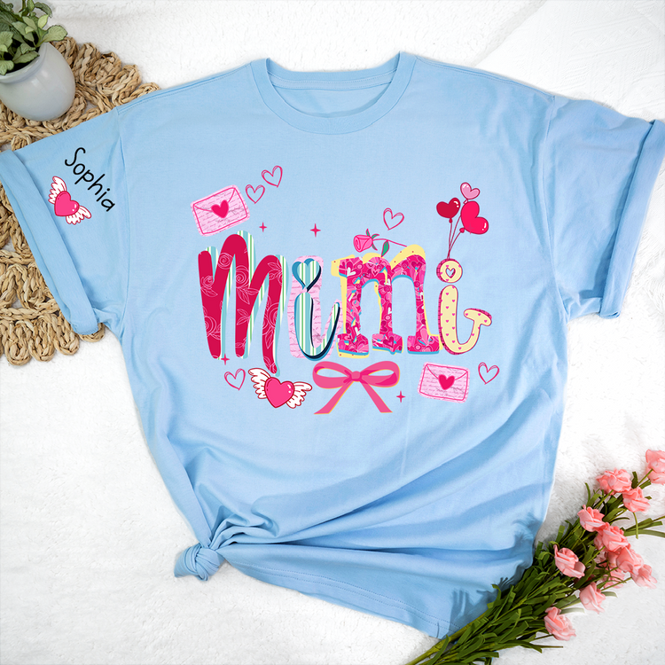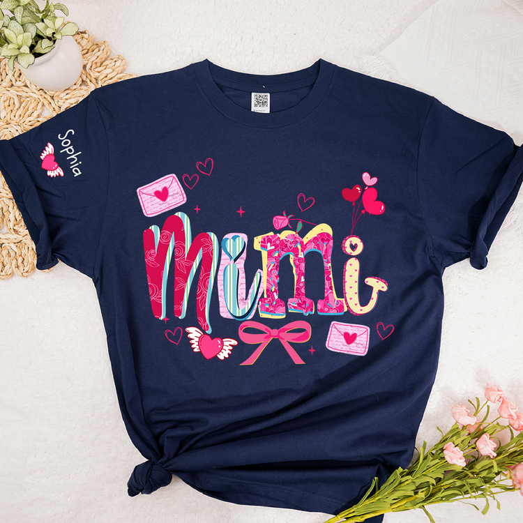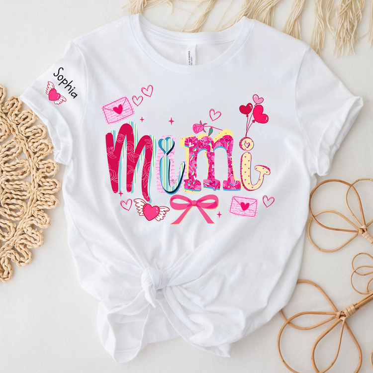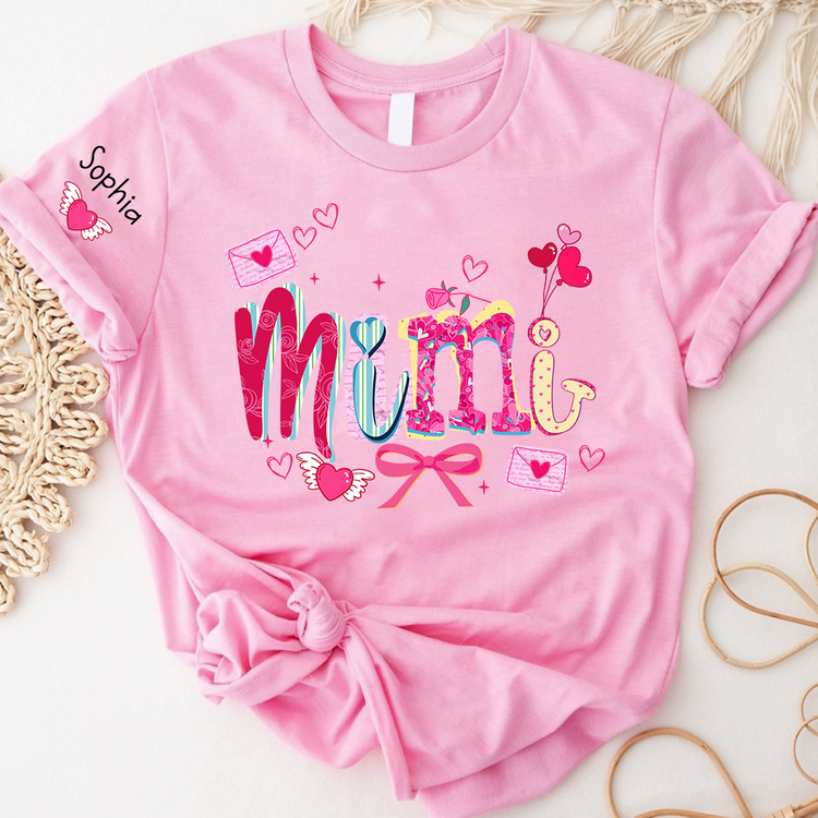 Custom Mimi Valentine Brushstroke T-shirt, Heart Shaped valentine Gift for Grandma And Kids