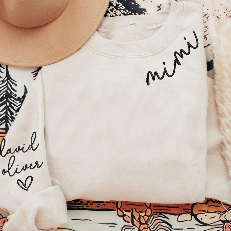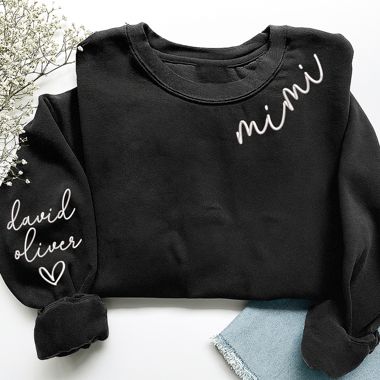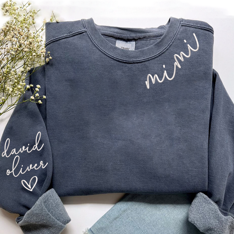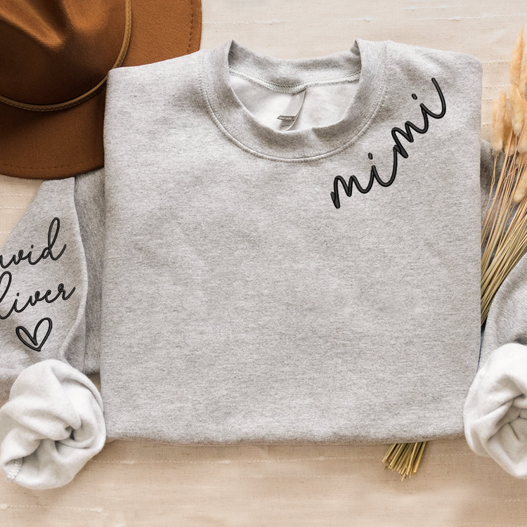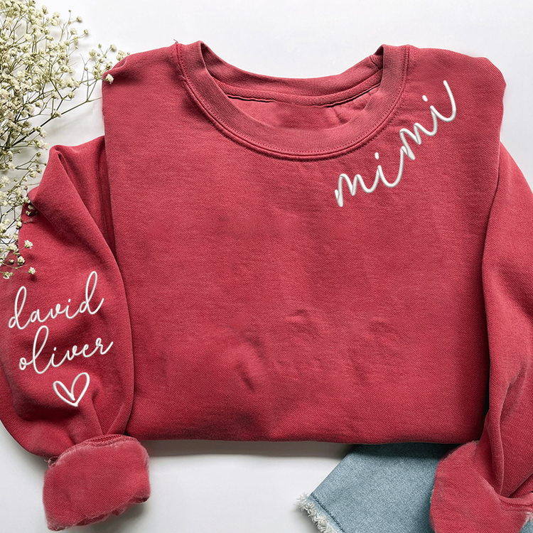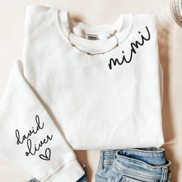 Embroidered Custom Mimi Heart Sweatshirt, Gift for Grandma And Grandchild
