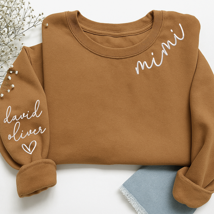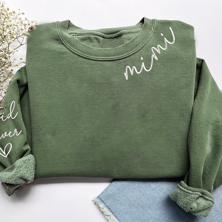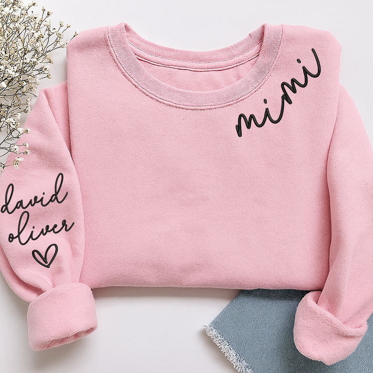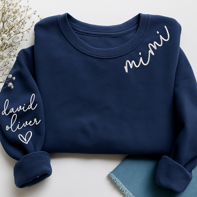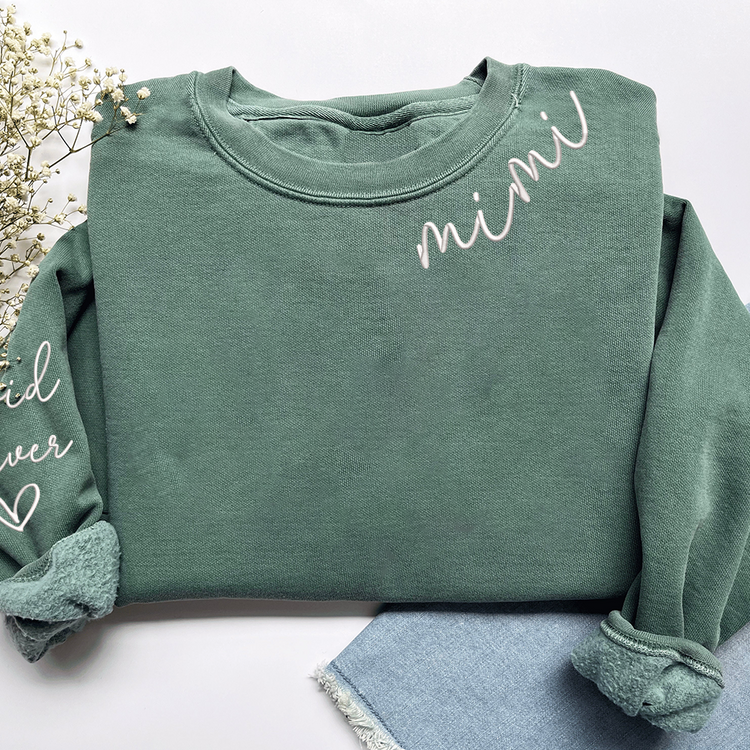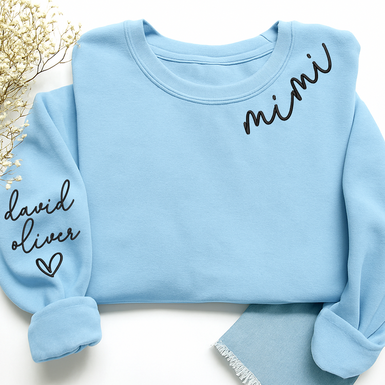 Embroidered Custom Mimi Heart Sweatshirt, Gift for Grandma And Grandchild