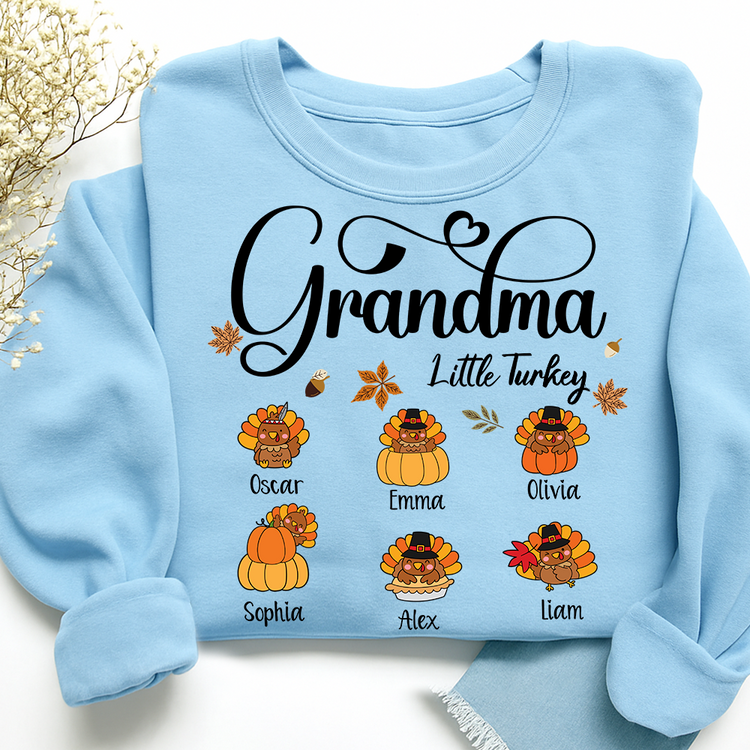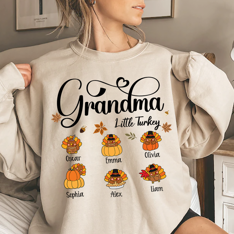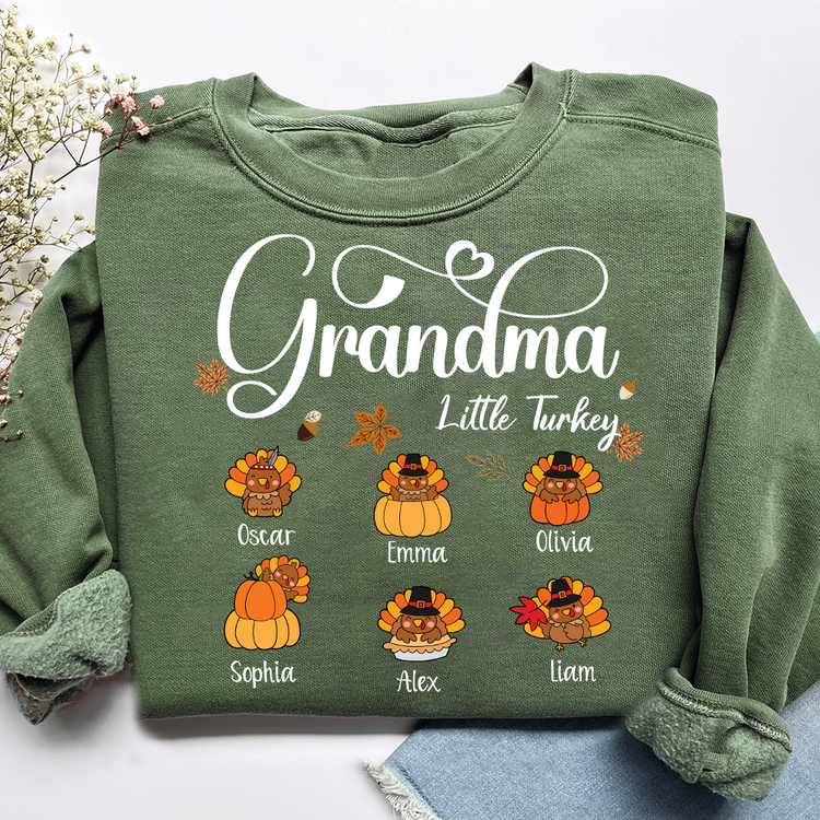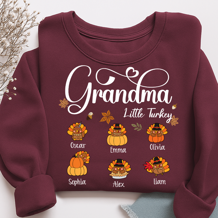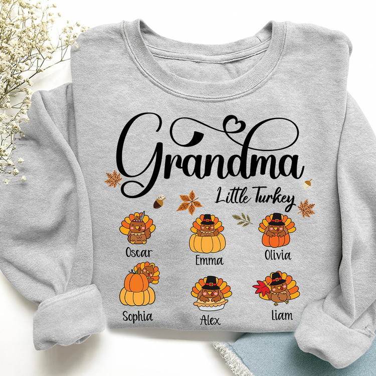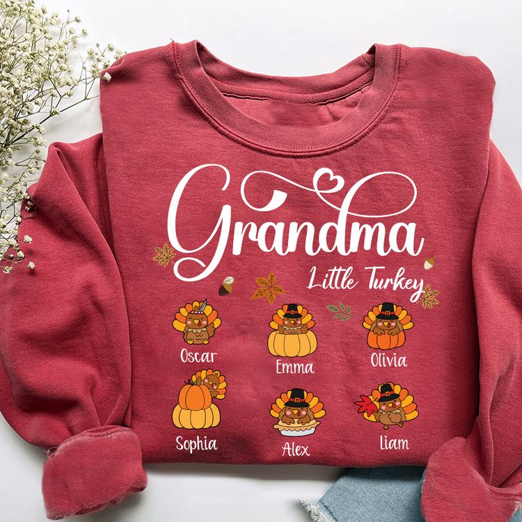Full Grandma Little Turkey Sweatshirt, Custom Gifts for Grandma and Grandchild