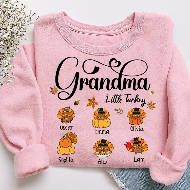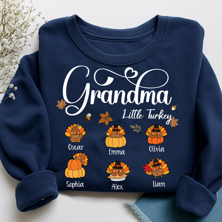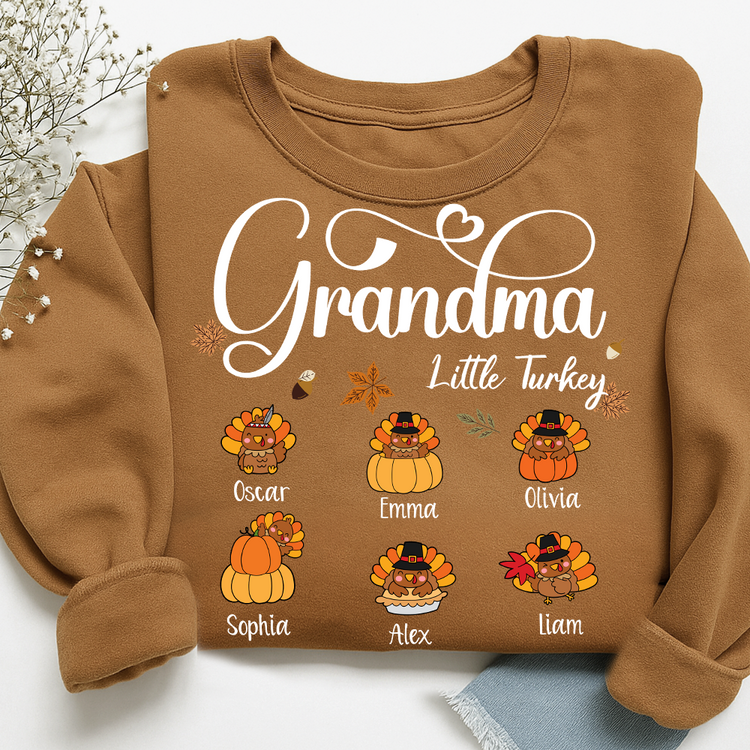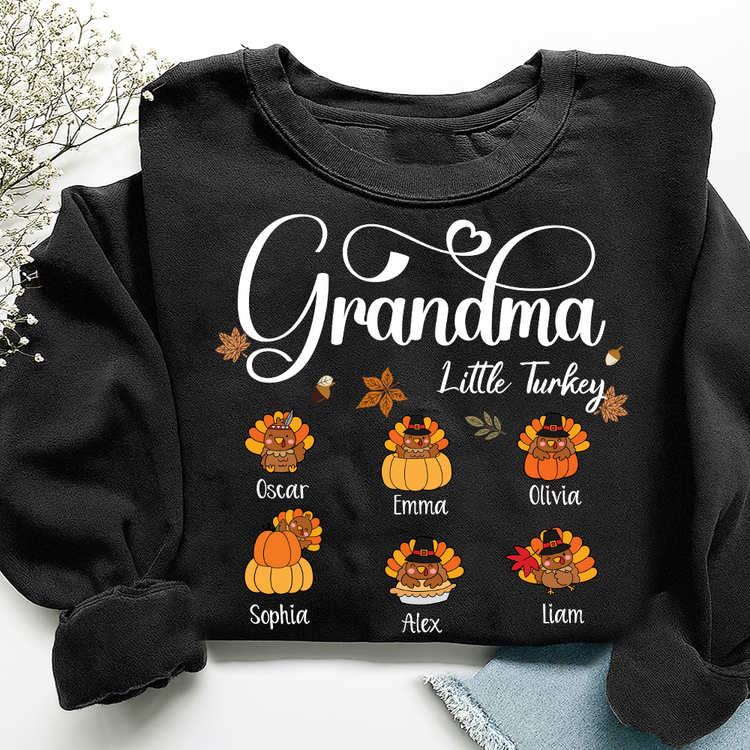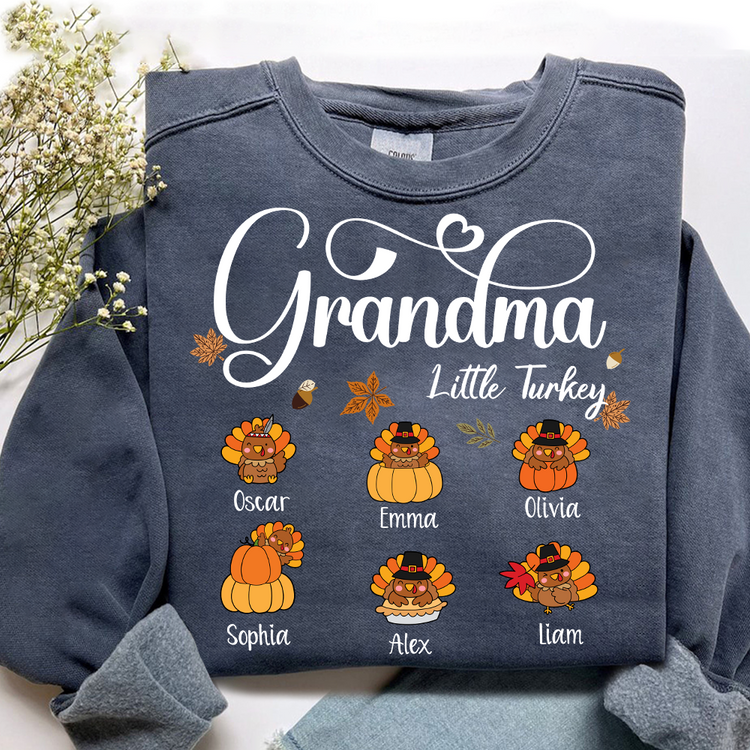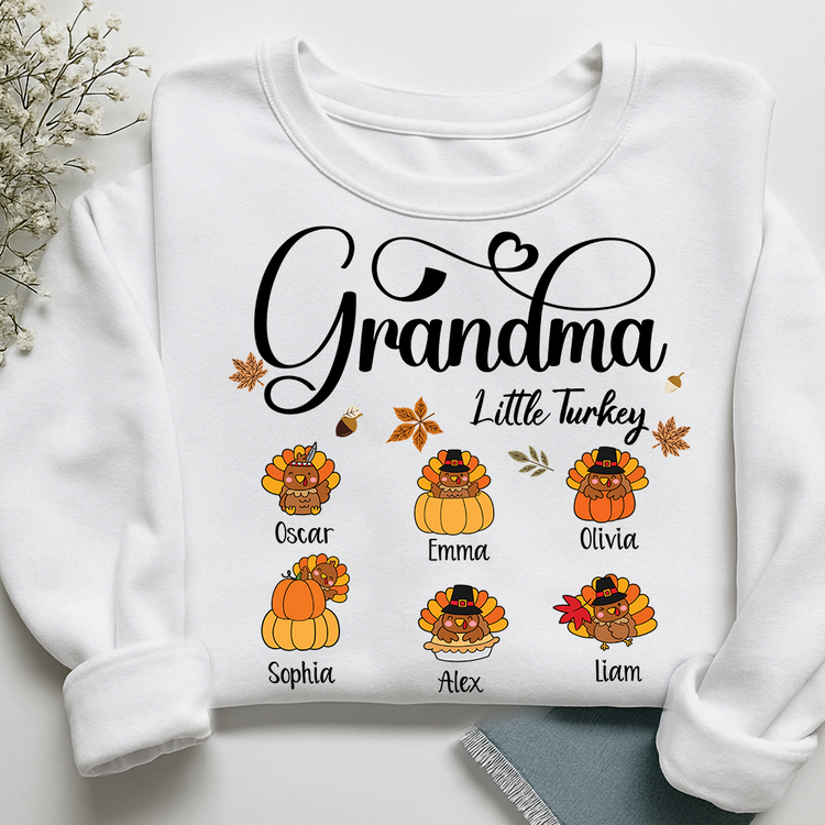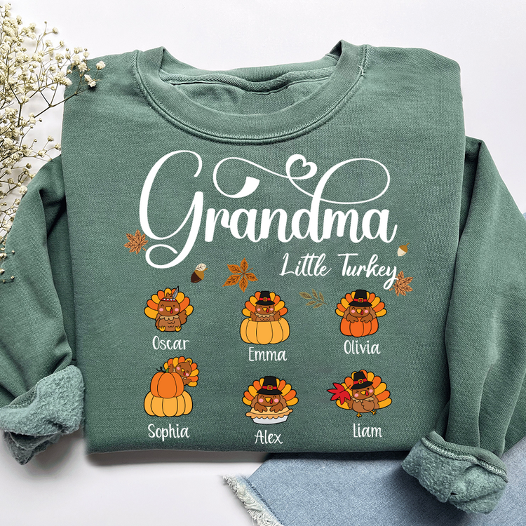 Full Grandma Little Turkey Sweatshirt, Custom Gifts for Grandma and Grandchild