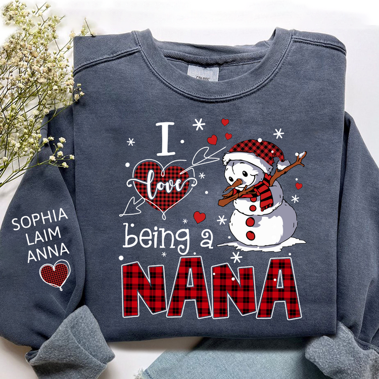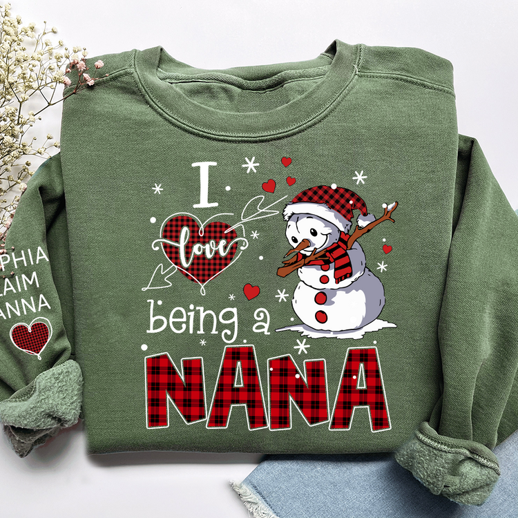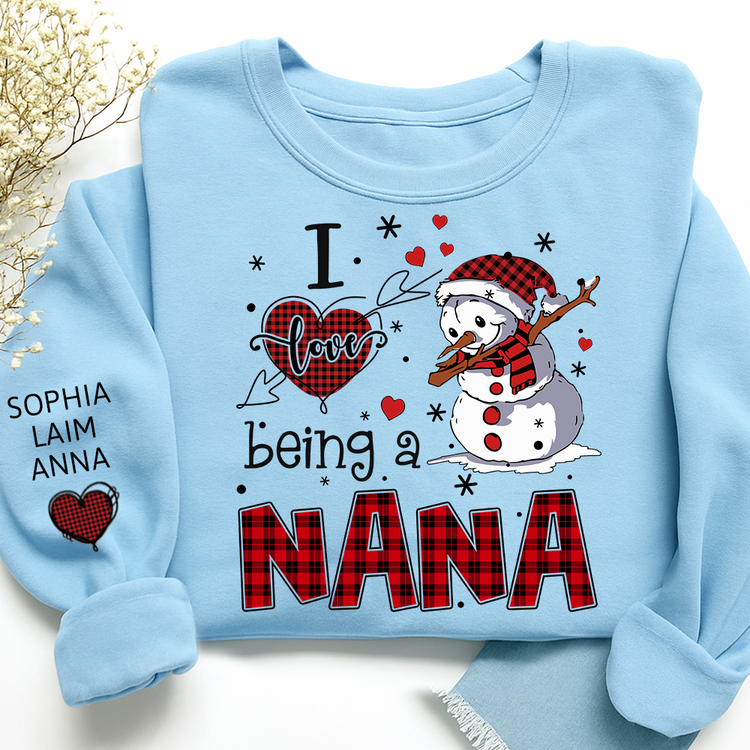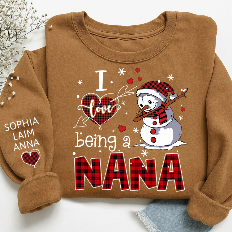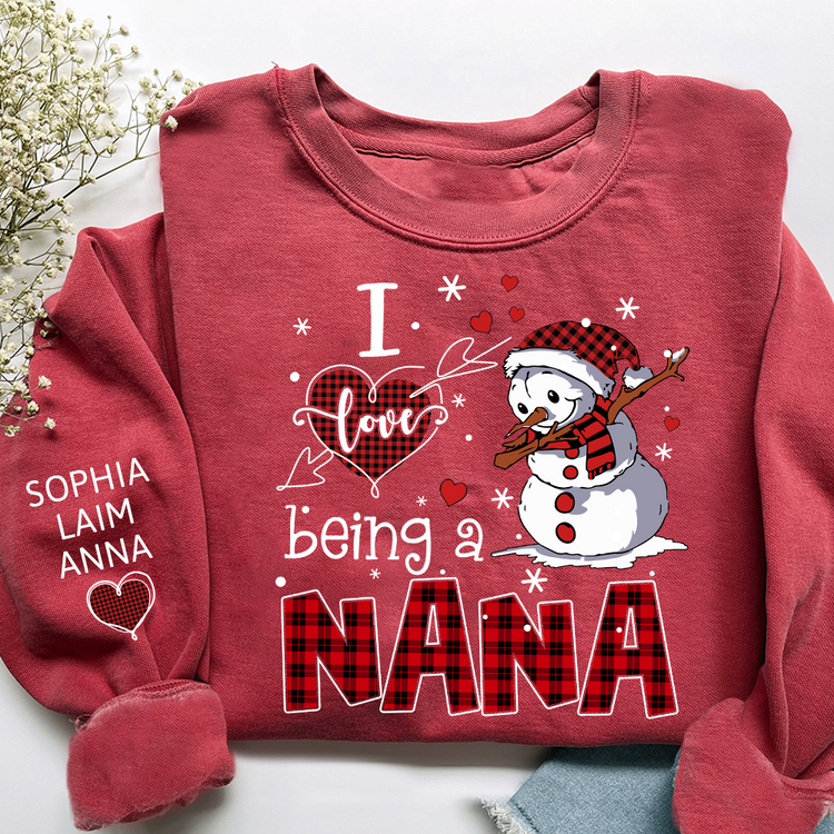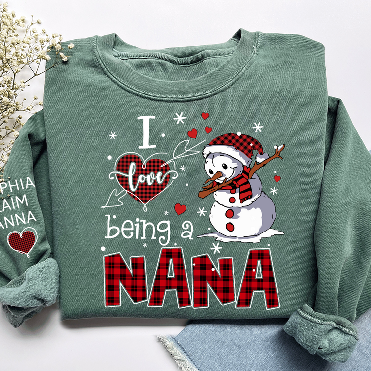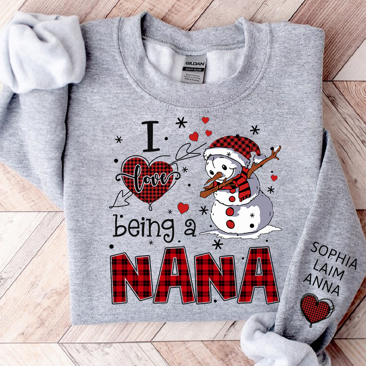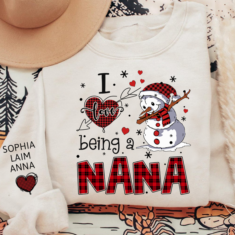 I Love Being a Nana Sweatshirt, Personalized Christmas Snowman Shirt with Kids Names