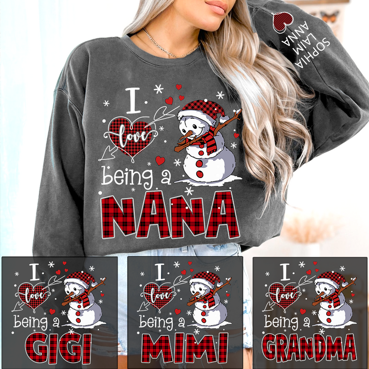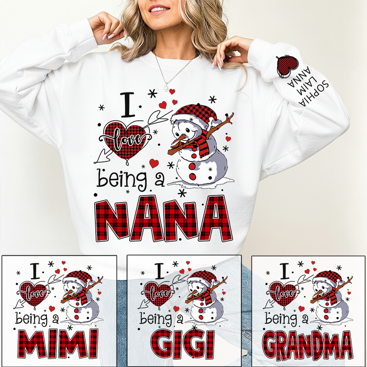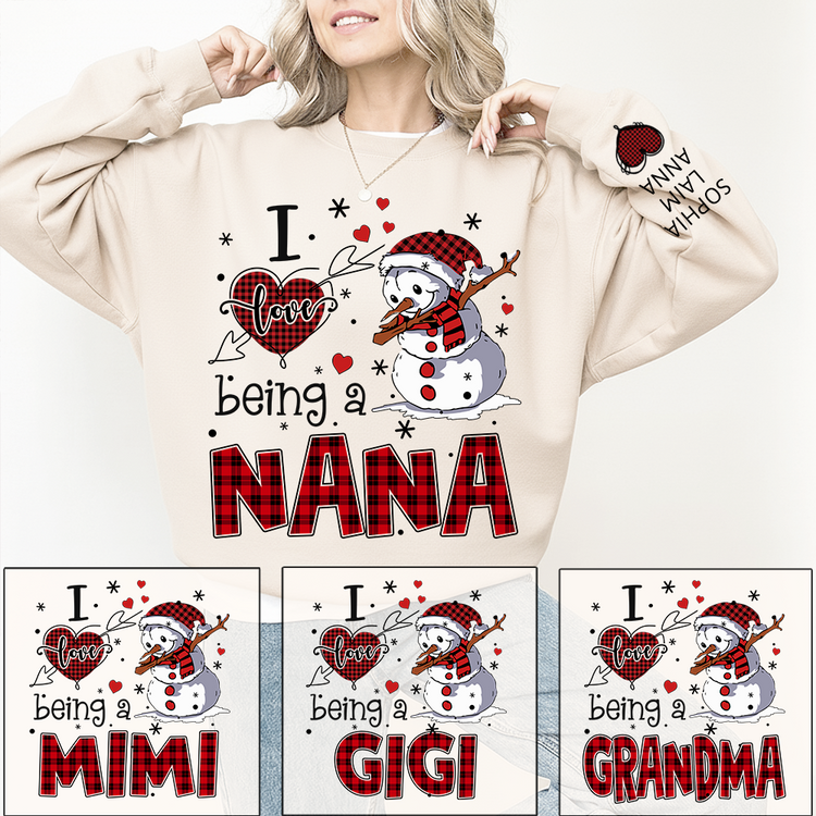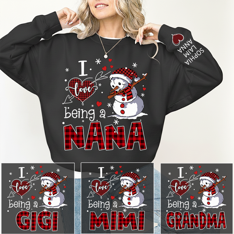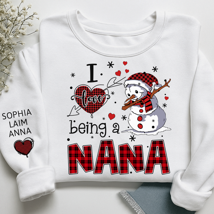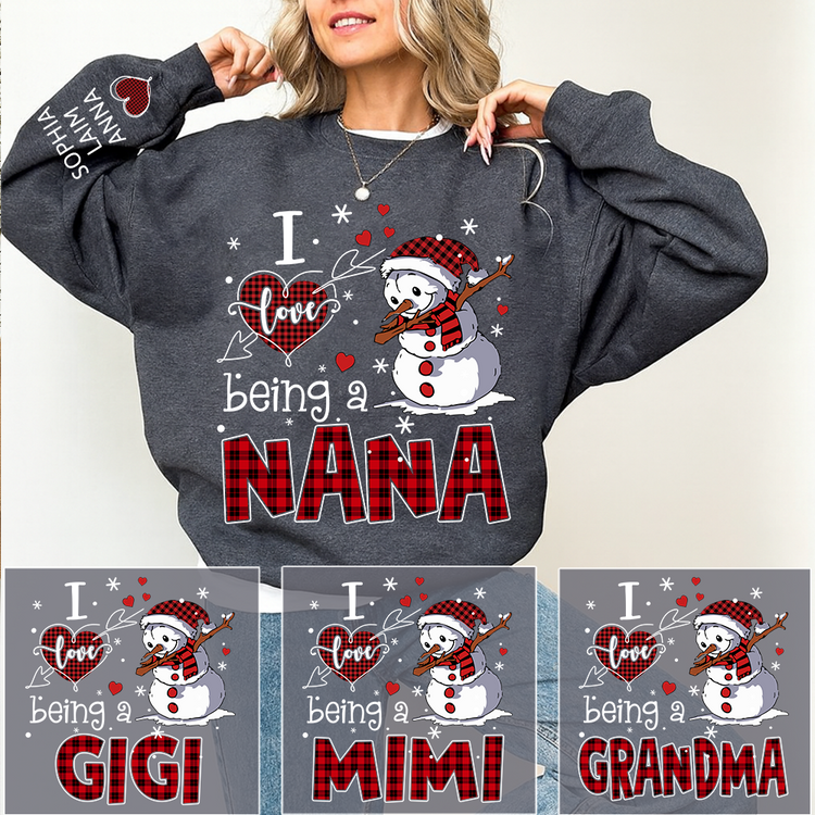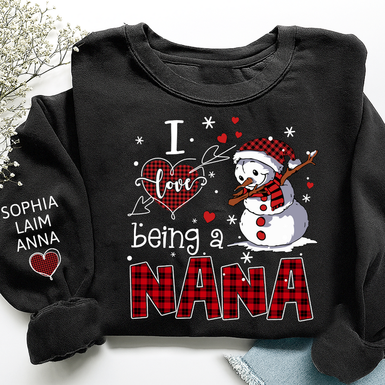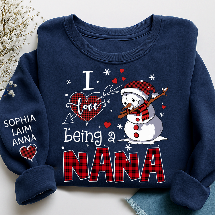I Love Being a Nana Sweatshirt, Personalized Christmas Snowman Shirt with Kids Names