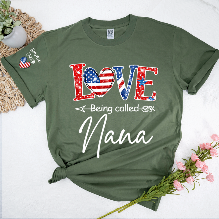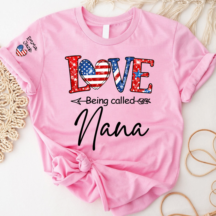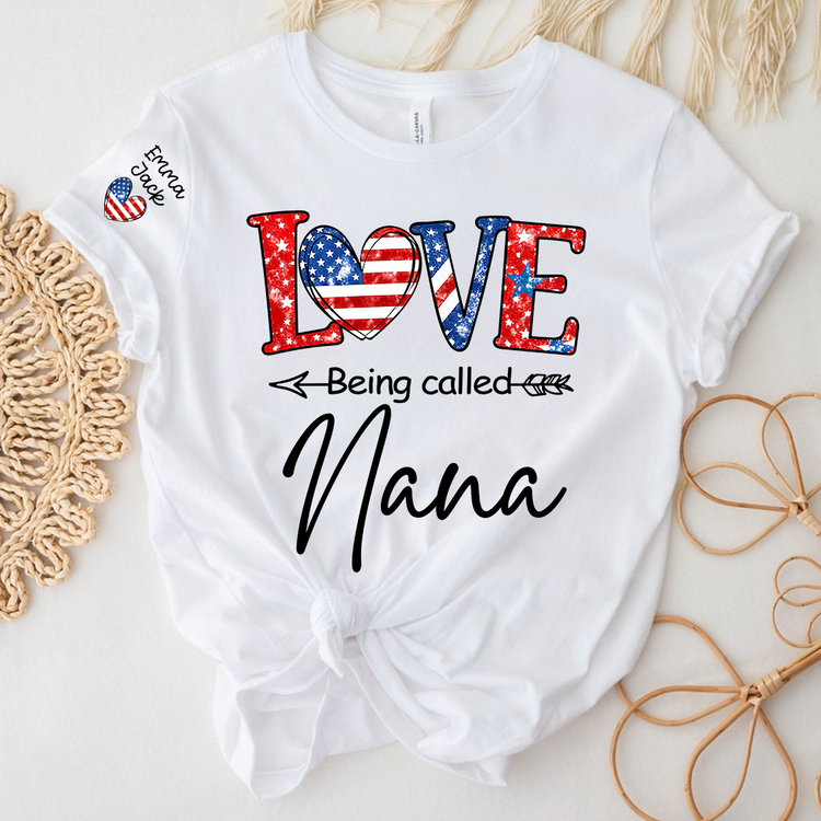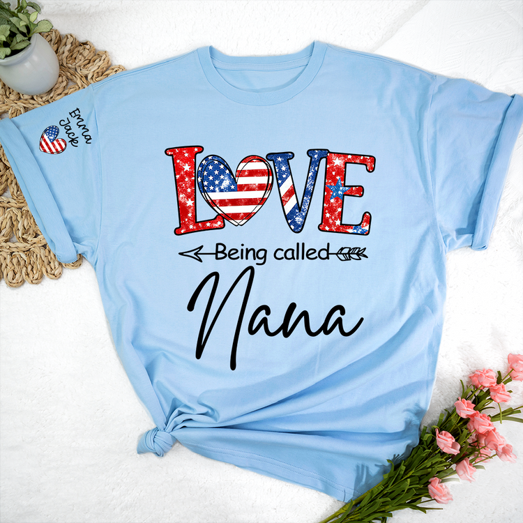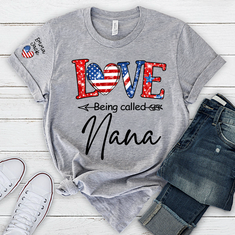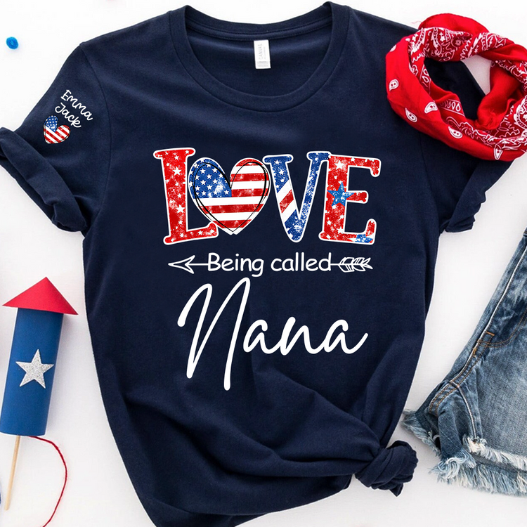 Love Being Called Nana Shirt, Personalized Patriotic Nana T-Shirt with Custom Names