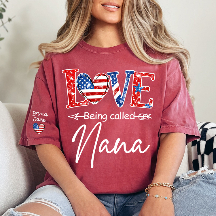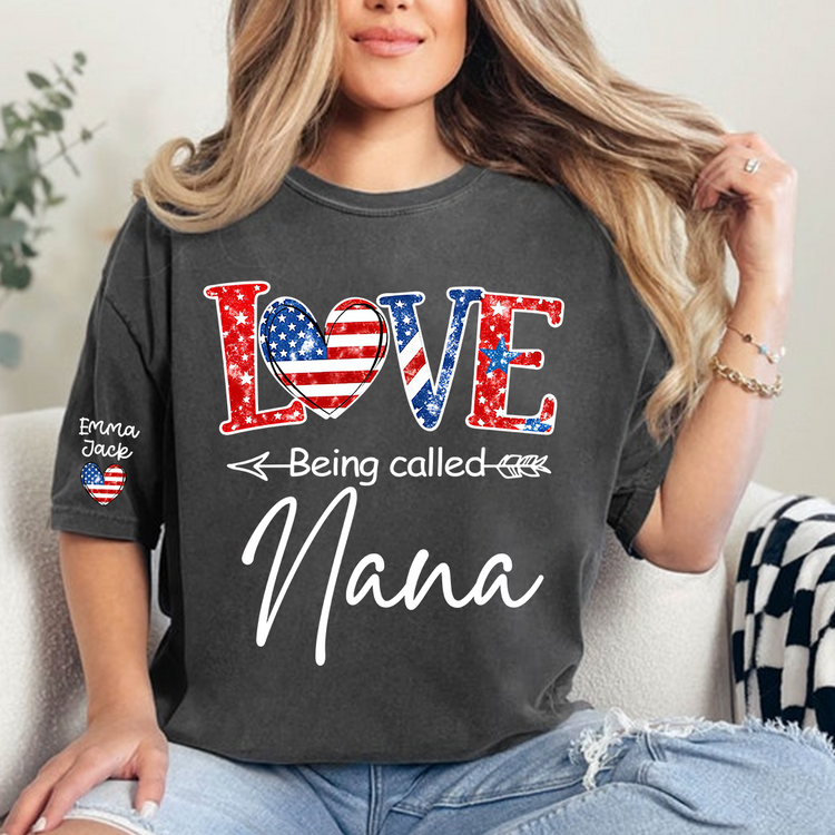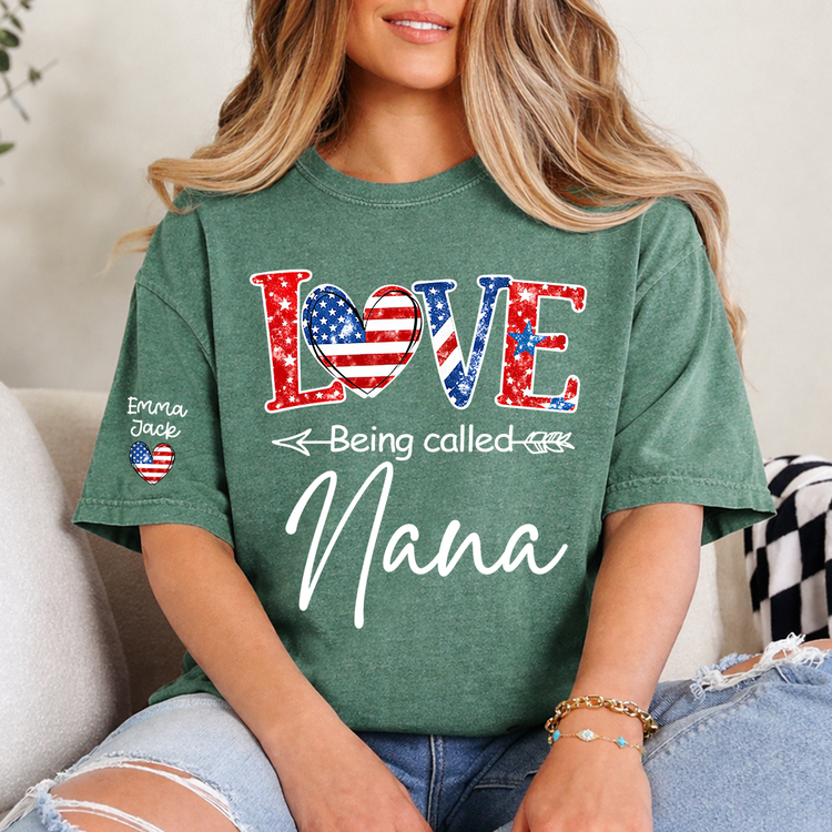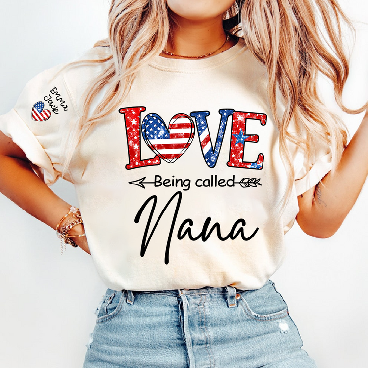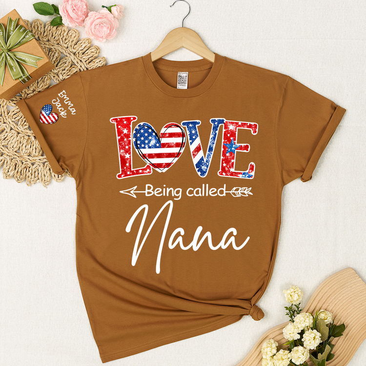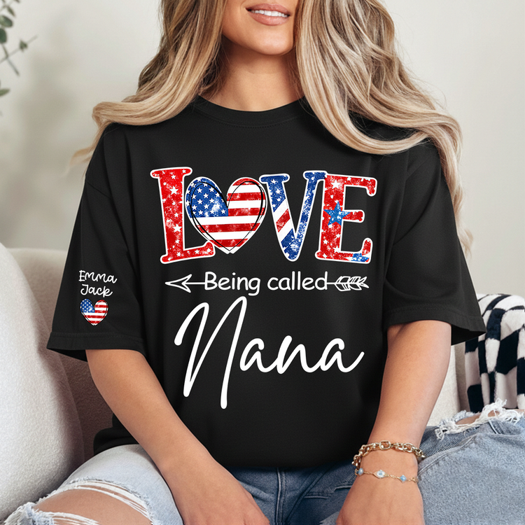 Love Being Called Nana Shirt, Personalized Patriotic Nana T-Shirt with Custom Names