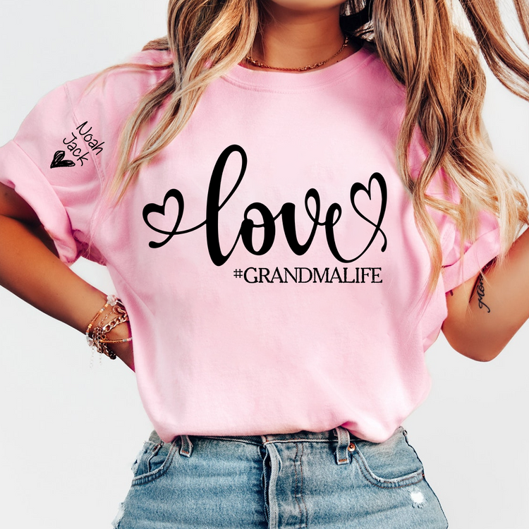 Love Grandma Life T-Shirt, Personalized Grandma Tee with Custom Names