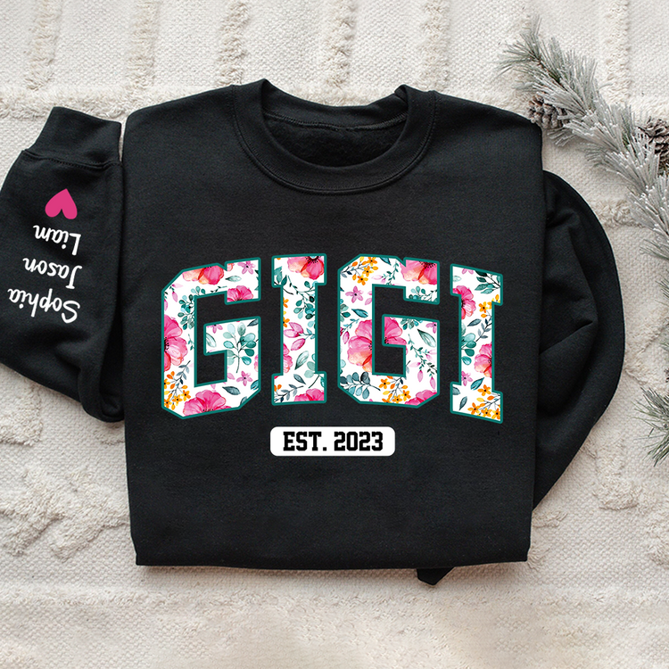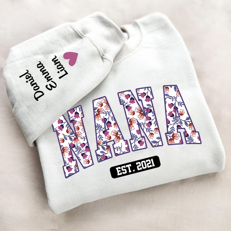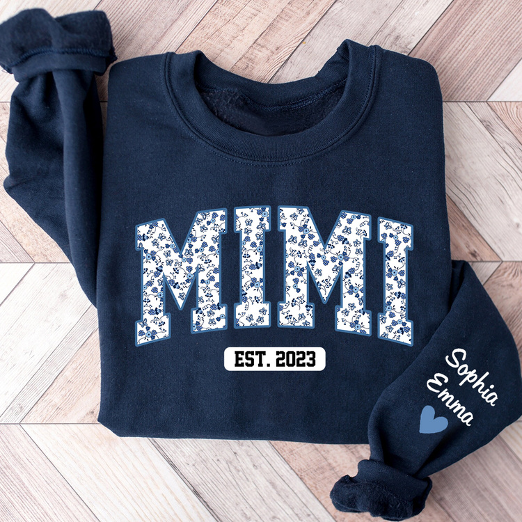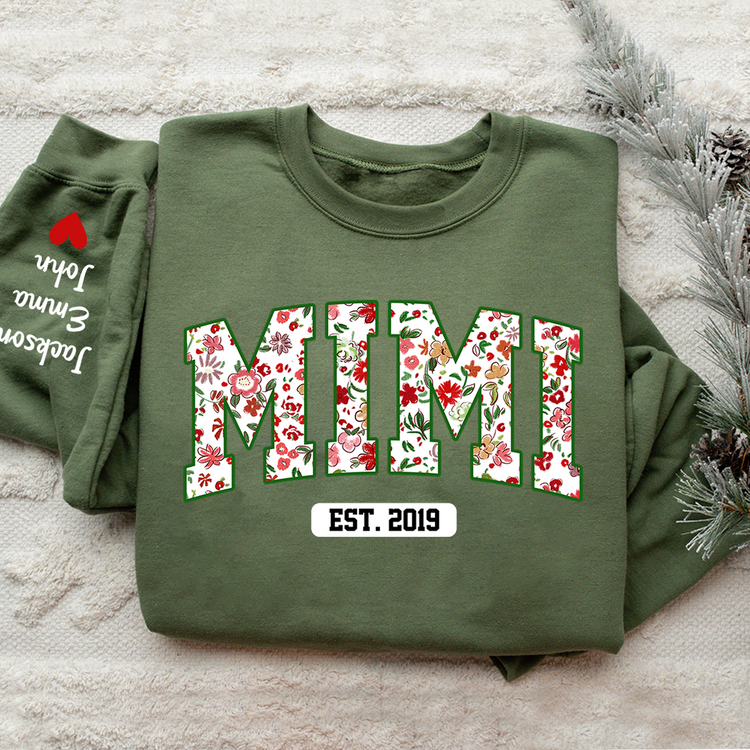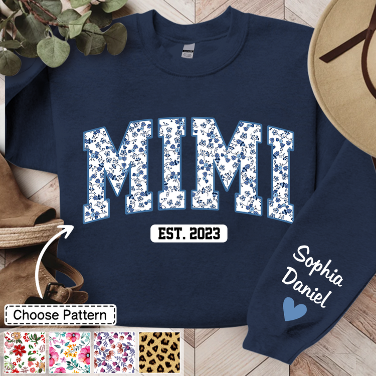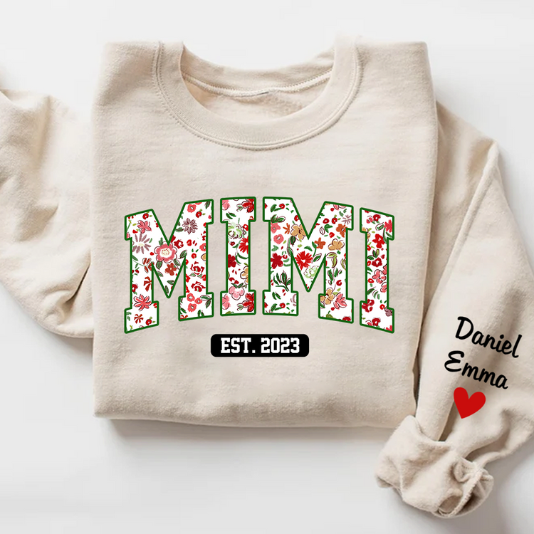 Mimi Flower Pattern Sweatshirt, Custom Grandma With Kids, Grandma Gift TH Sweatshirt