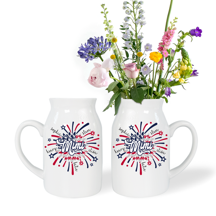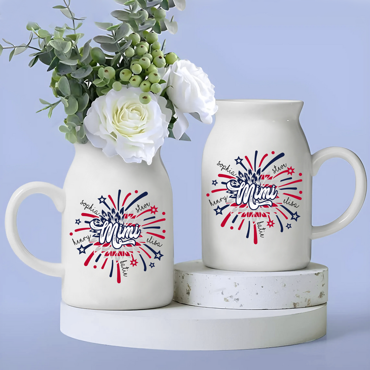 Patriotic Fireworks Covered With Flag For Mimi And Kids - Custom Home Decoration Flower Vase According To Family Requirements, Ceramic Flower Vase
