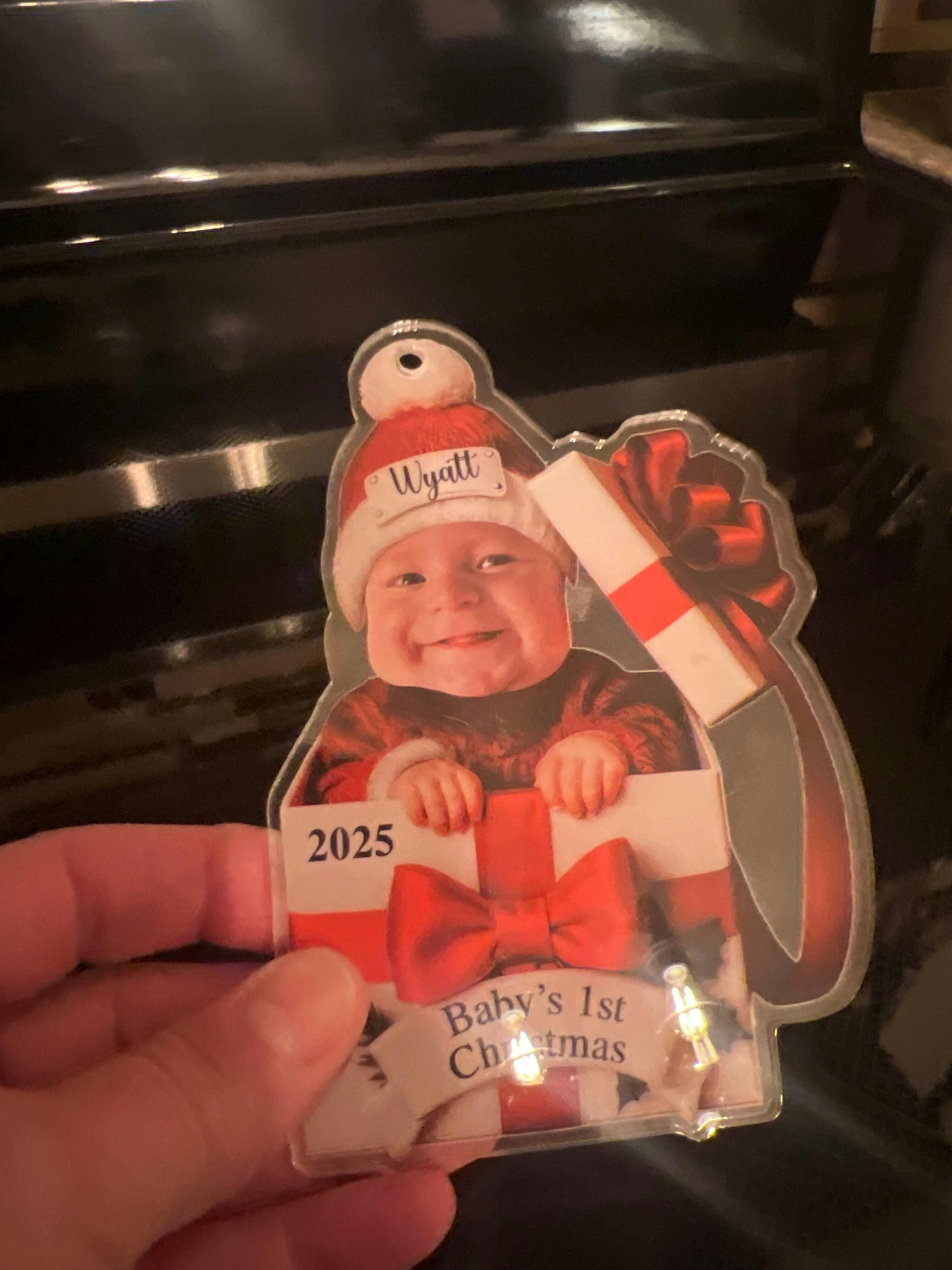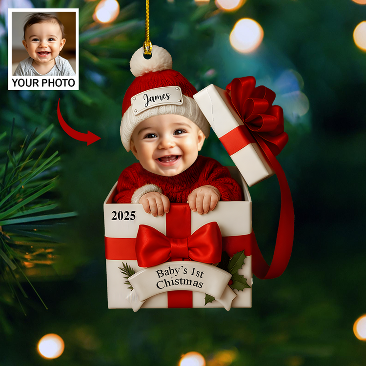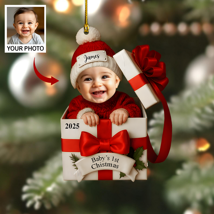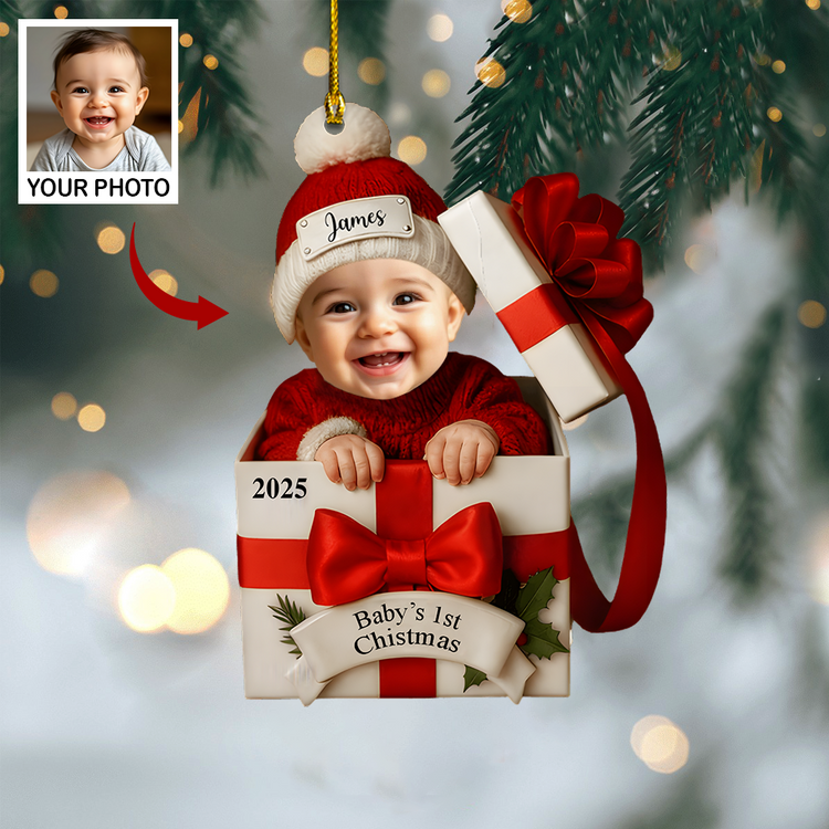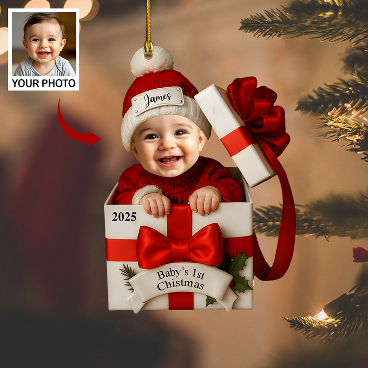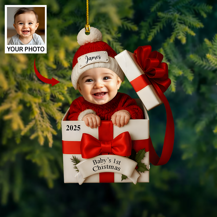 Personalized Baby’s 1st Christmas Ornament 2025 – Custom Photo Gift Box Ornament, Baby Face Christmas Keepsake