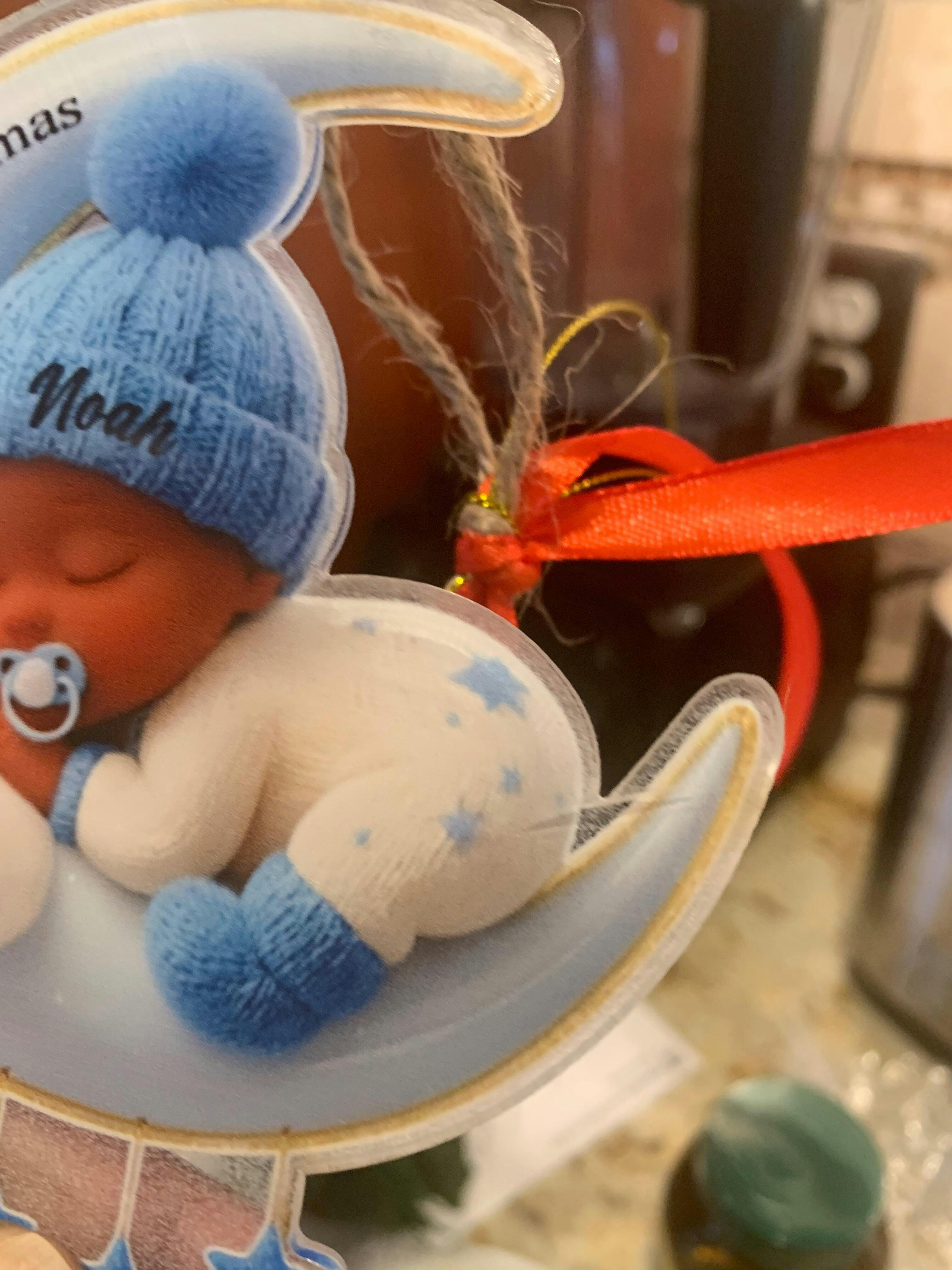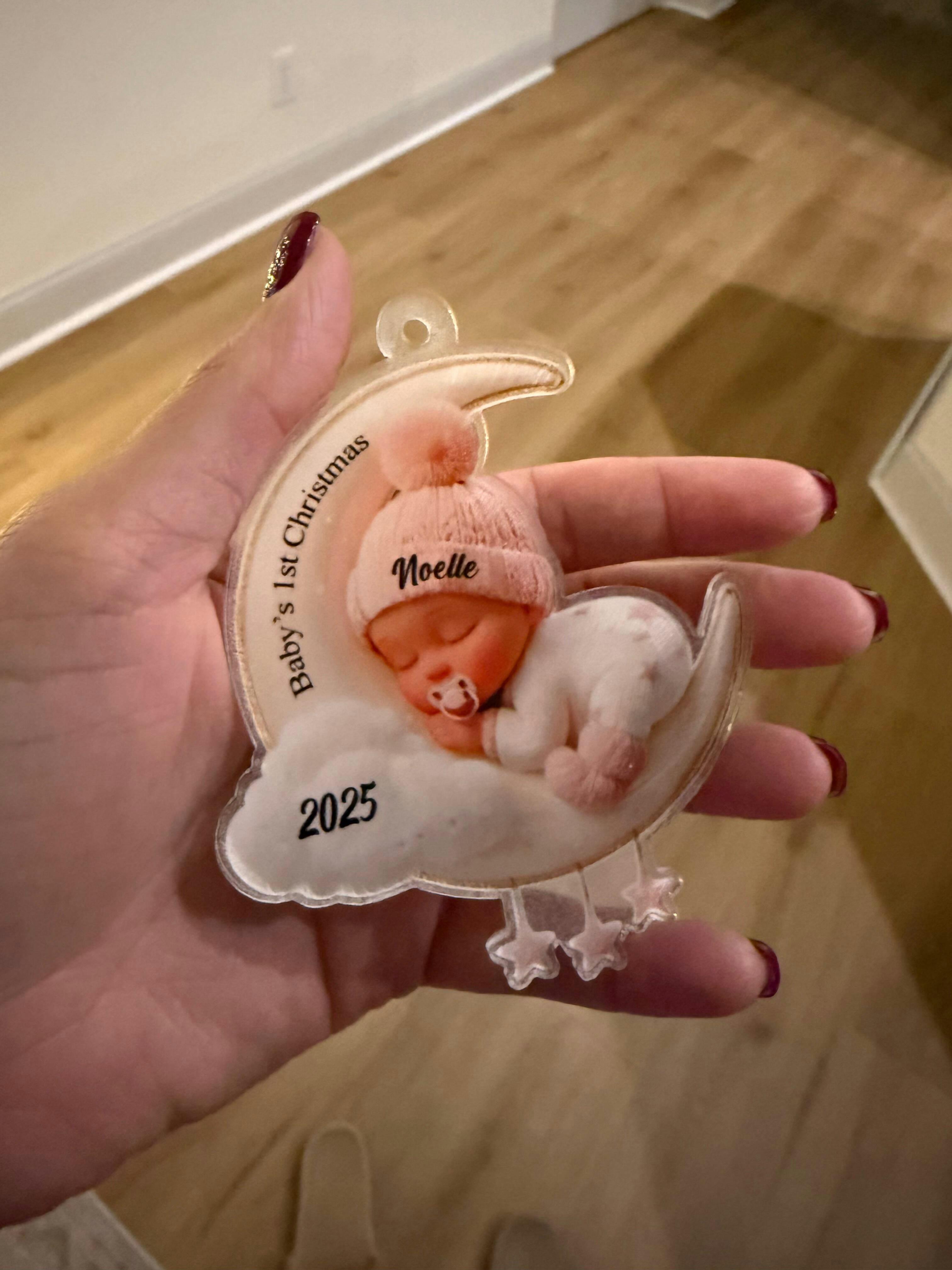 Personalized Baby’s First Christmas Ornament 2025 – Custom Name Moon & Cloud Ornament, Newborn Keepsake Gift for Baby Boy or Girl Ornament