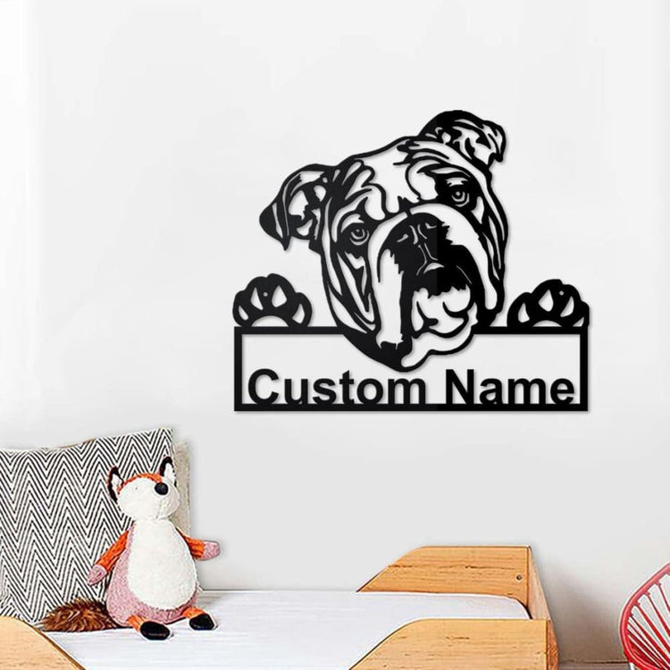 Personalized Custom British Bulldog Cut Metal Sign, Dog Lover Metal Wall Art, Laser Cut Metal Signs