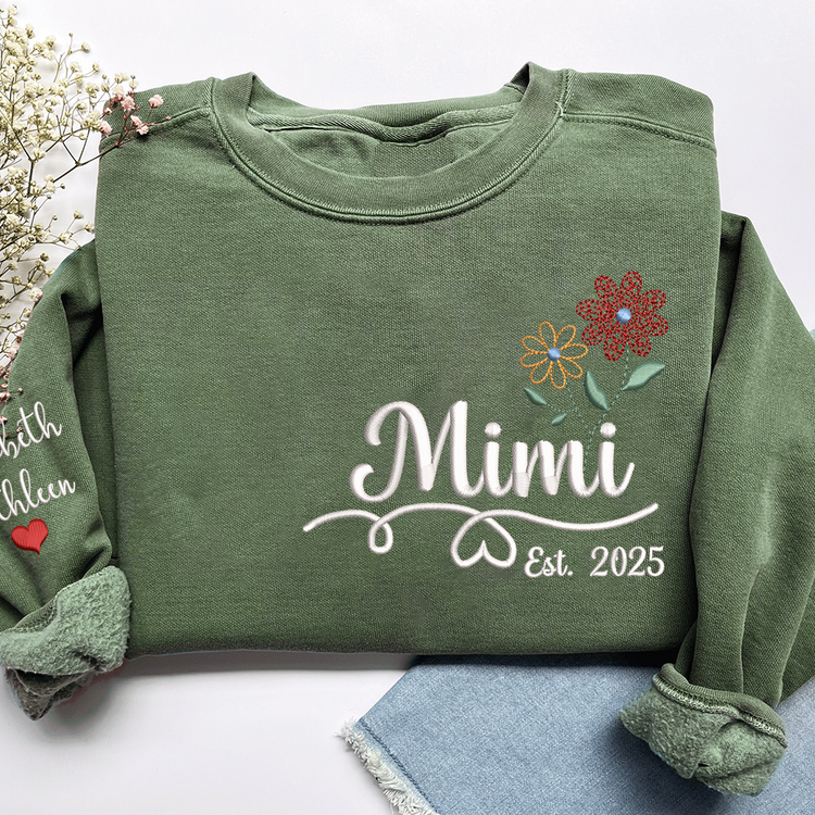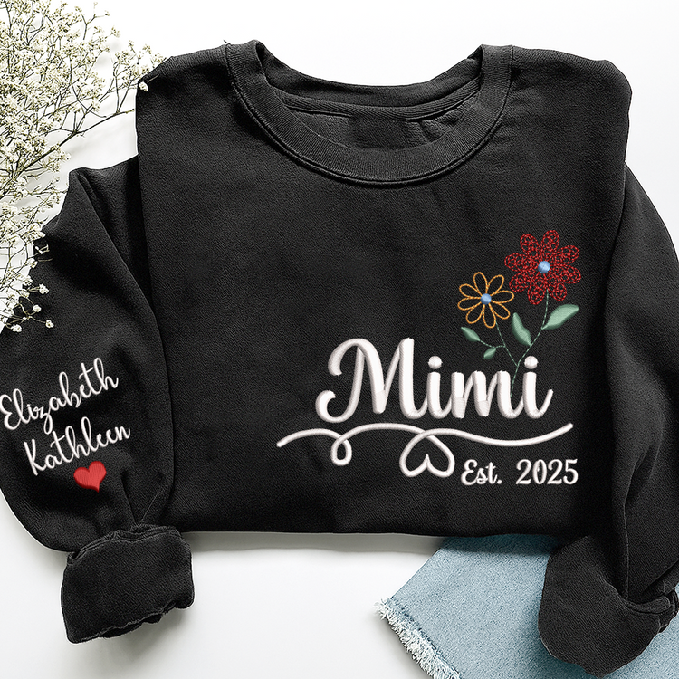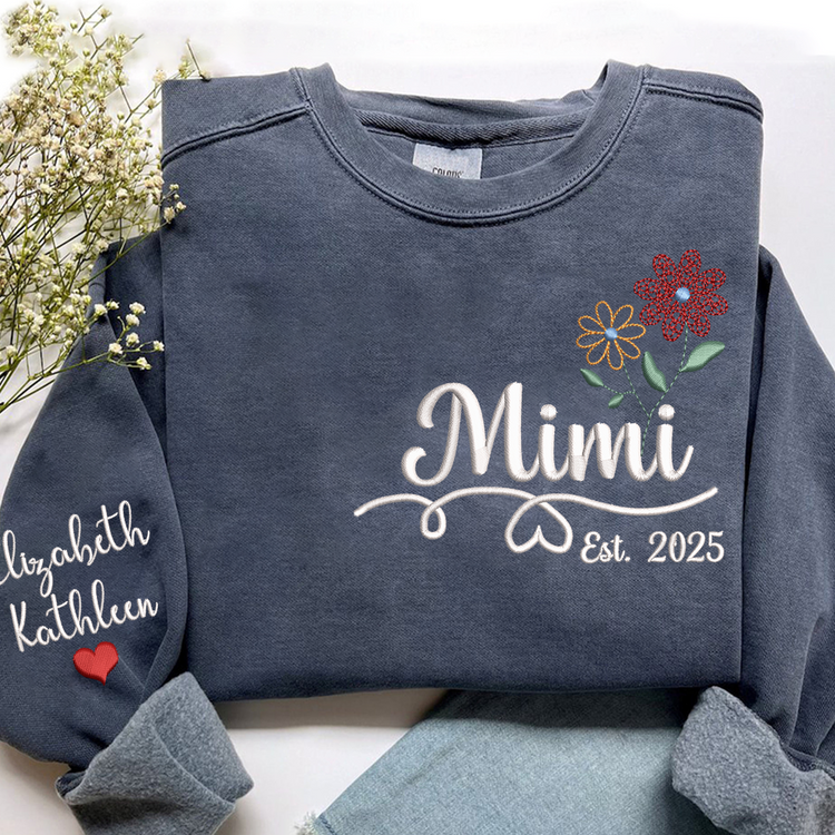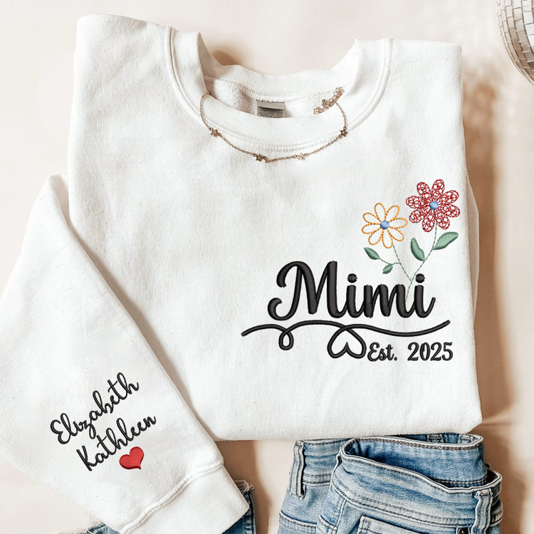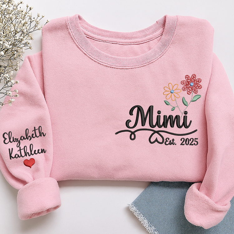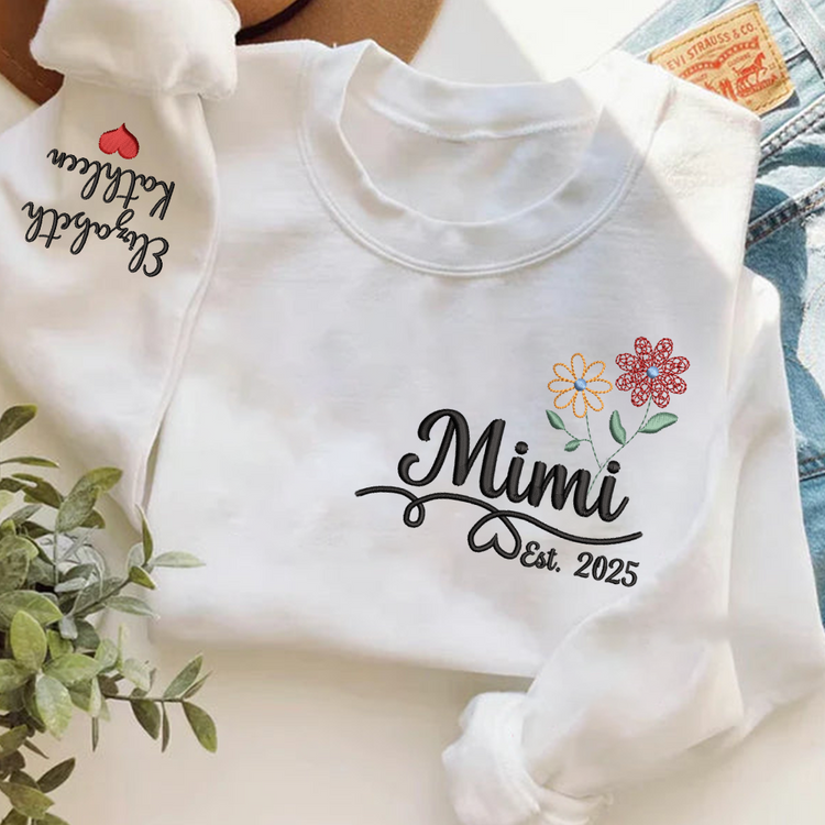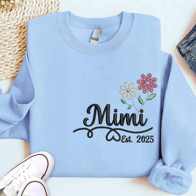 Personalized Embroidered Name Sweatshirts with Flowers, Gifts For Grandma And Kids