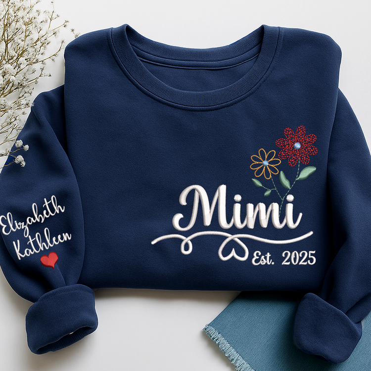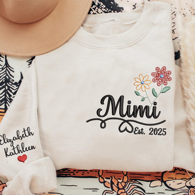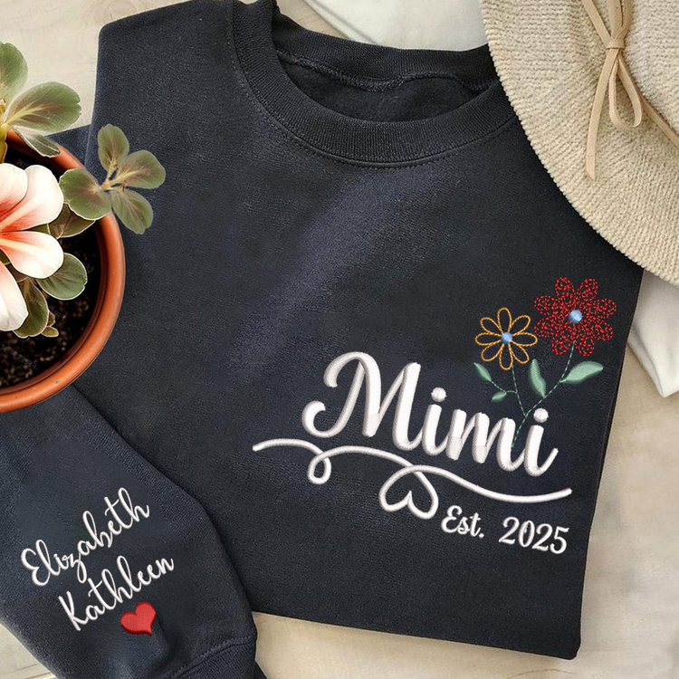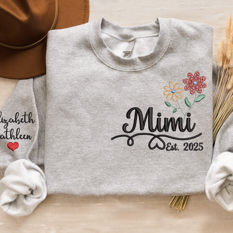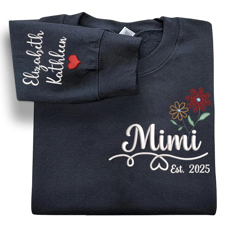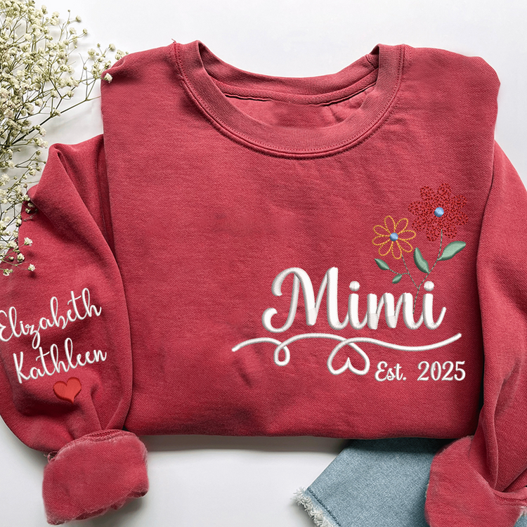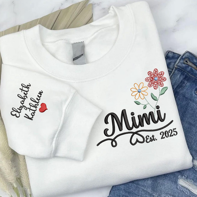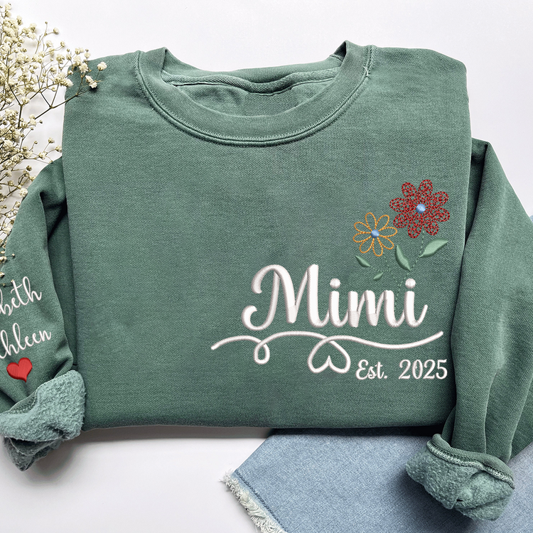 Personalized Embroidered Name Sweatshirts with Flowers, Gifts For Grandma And Kids