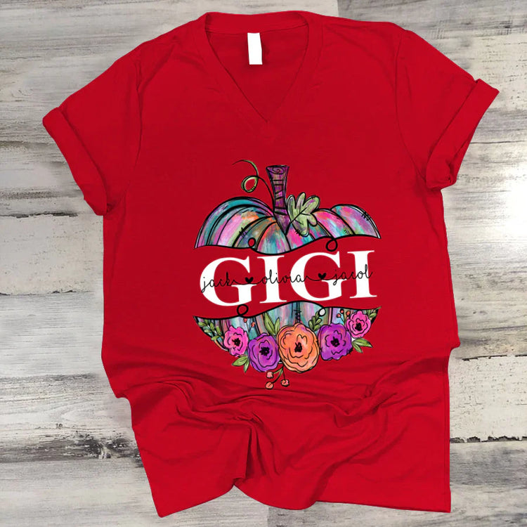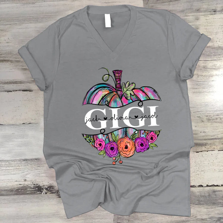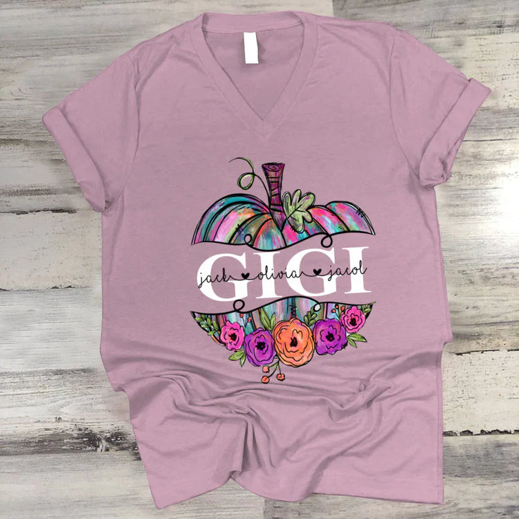 Personalized Gigi Painted Pumpkin 2022 V-Neck