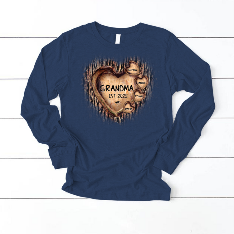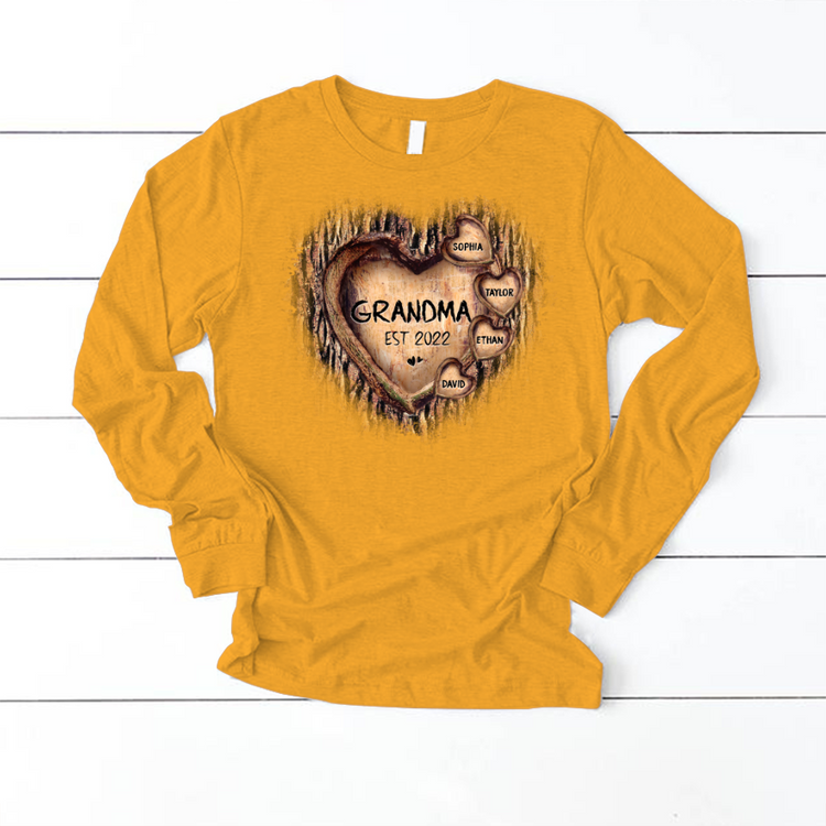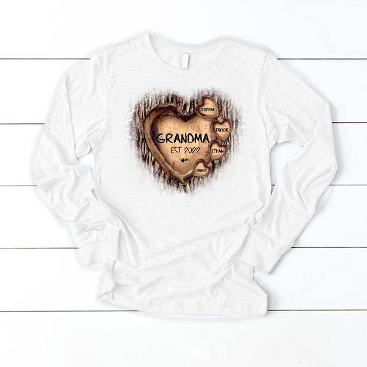 Personalized Grandma And Grandkids Hearts Tree New Longsleeve