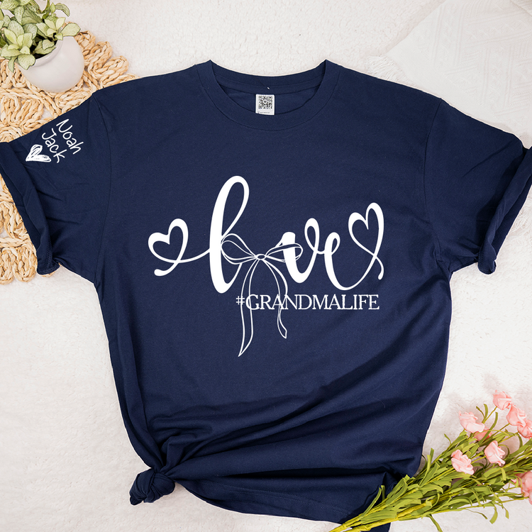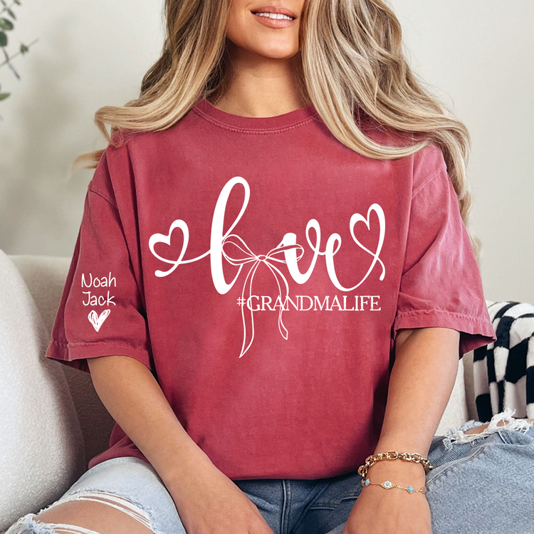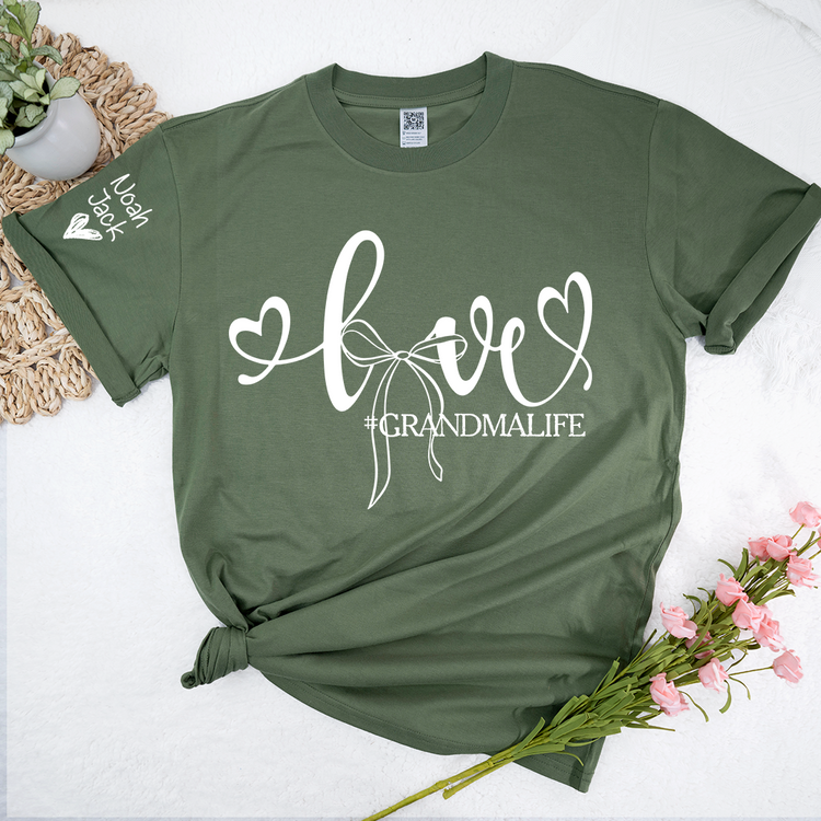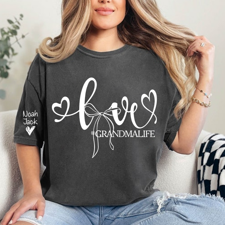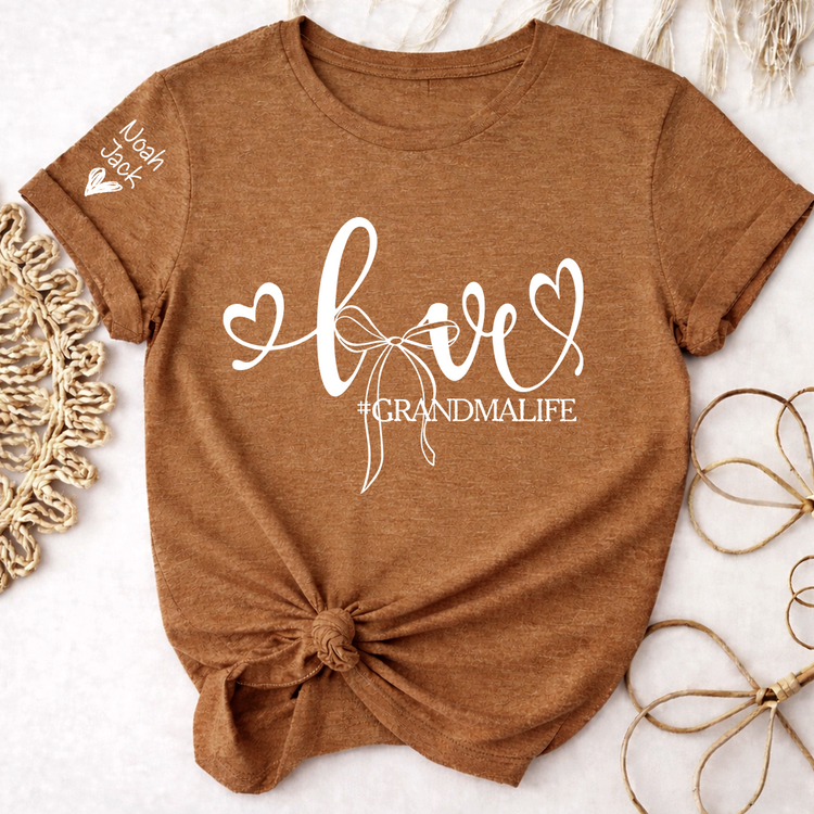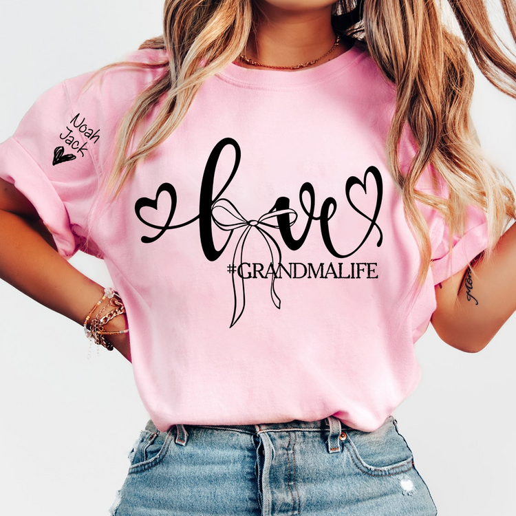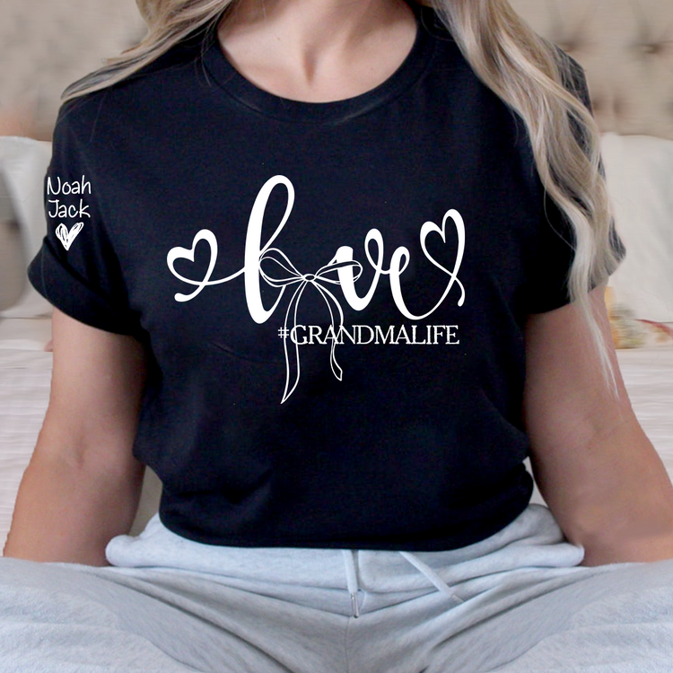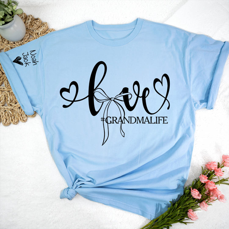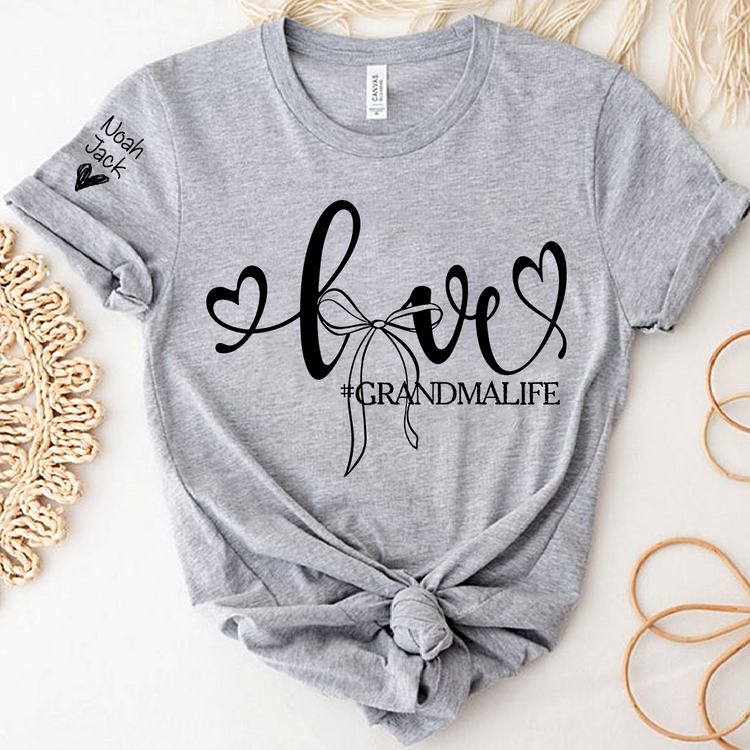 Personalized Grandma Life T-Shirt, Custom Name Graphic Tee with Love and Bow Design