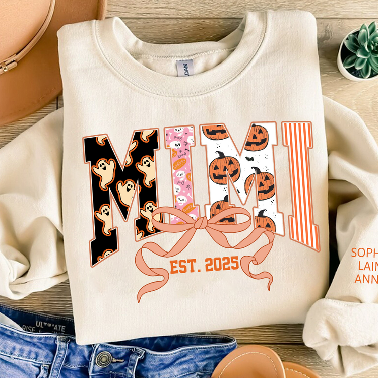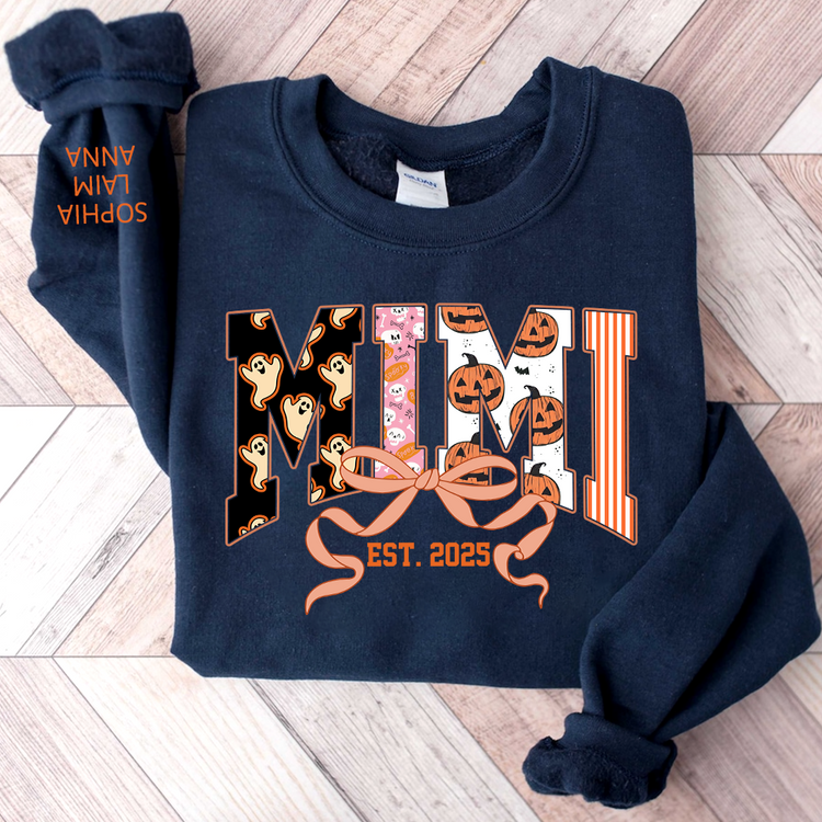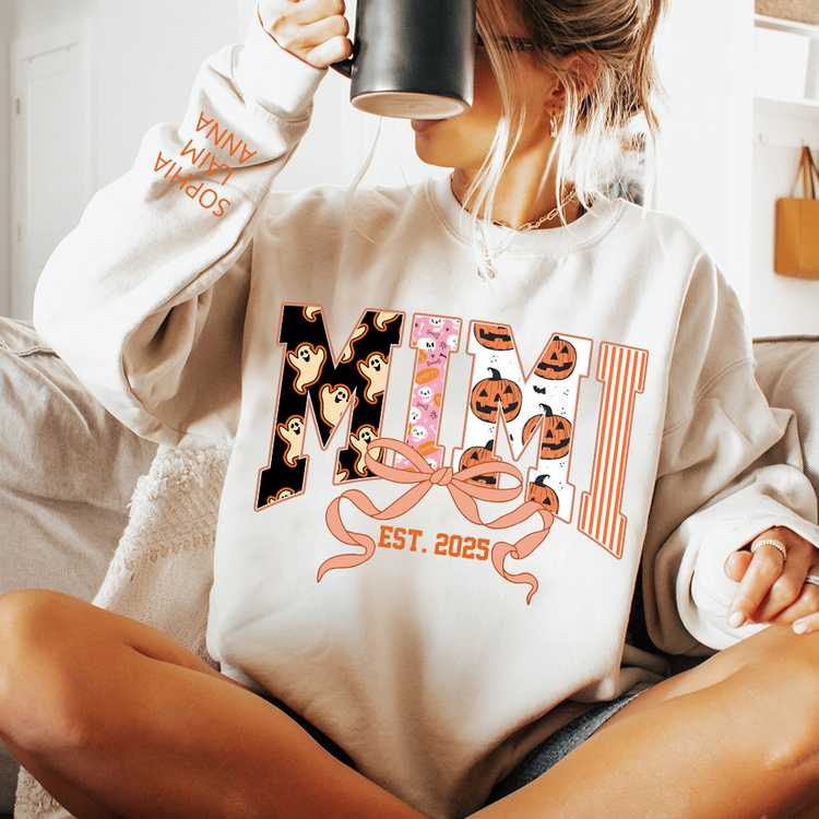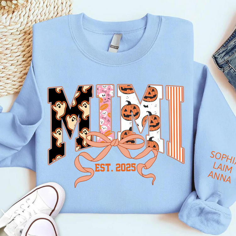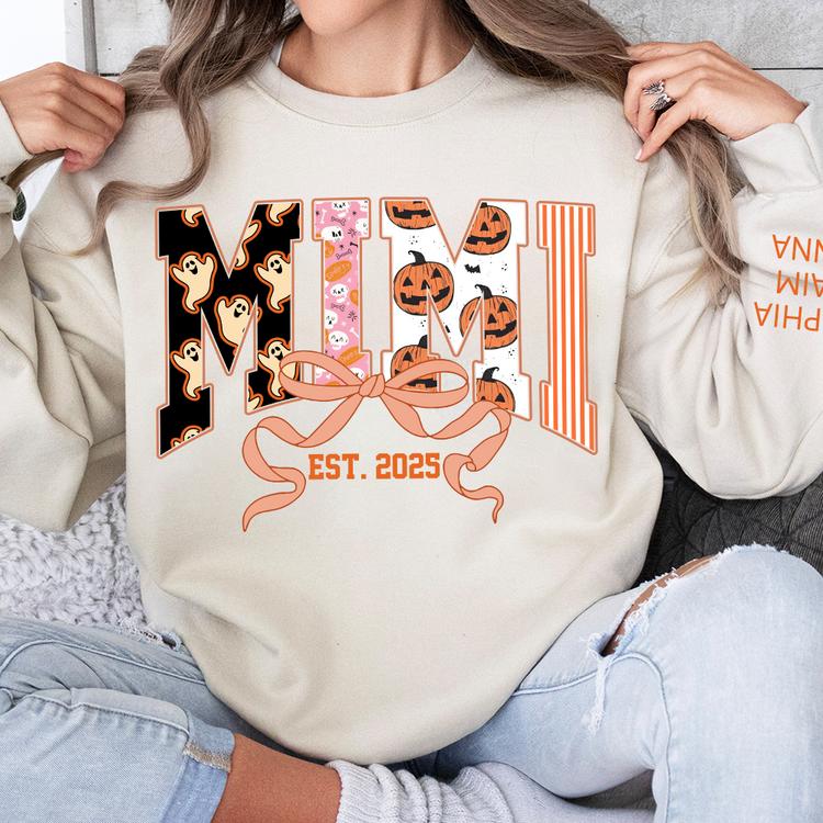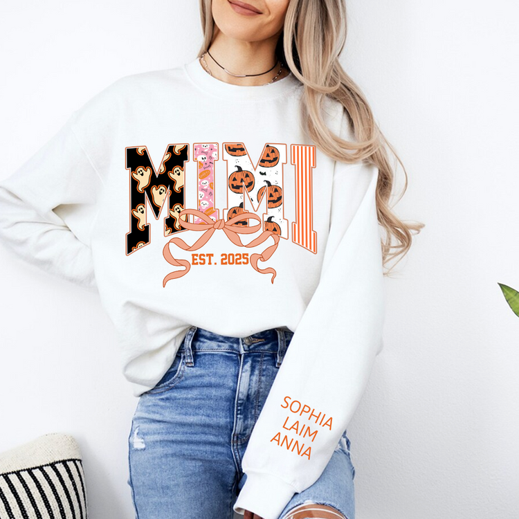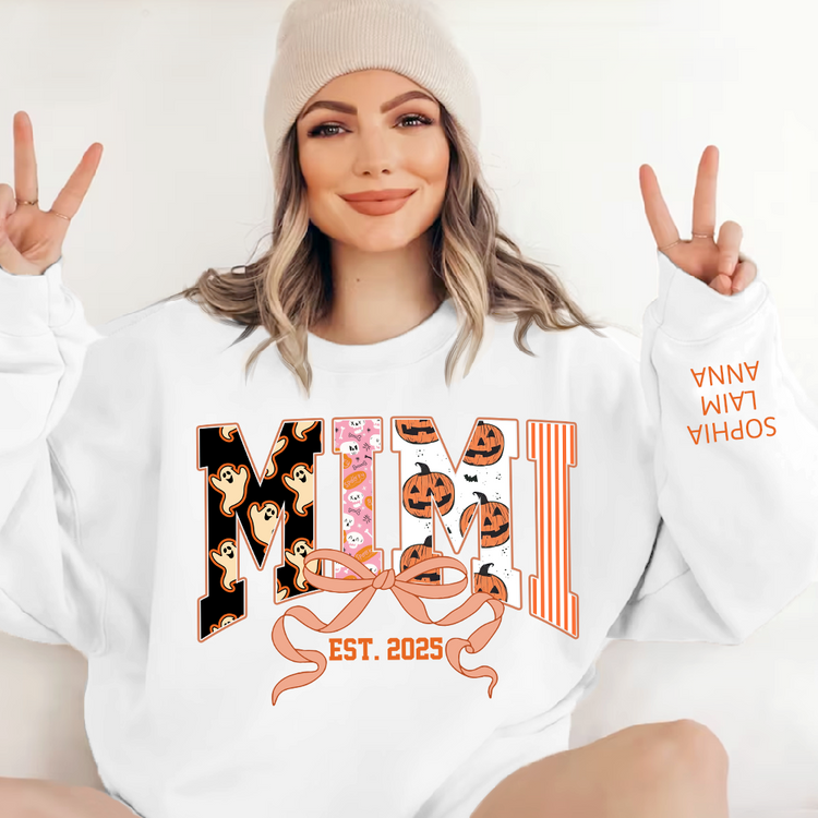 Personalized Halloween Grandma Sweatshirt, Custom Mimi And Kids Names