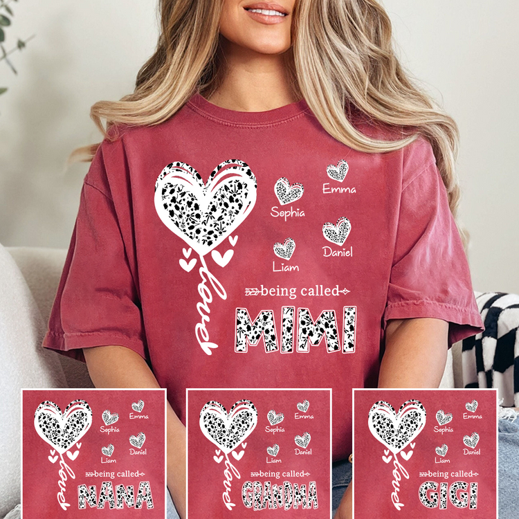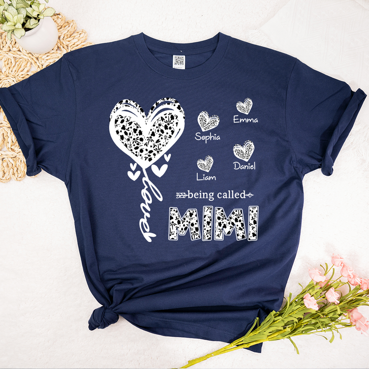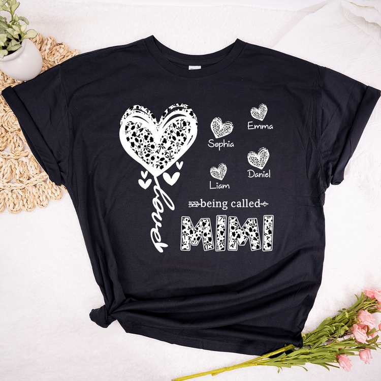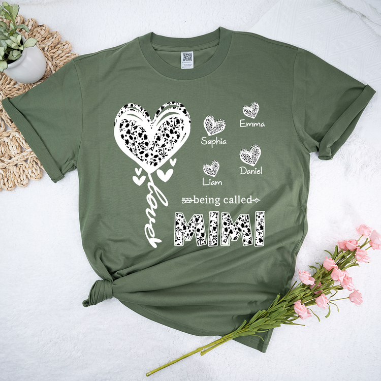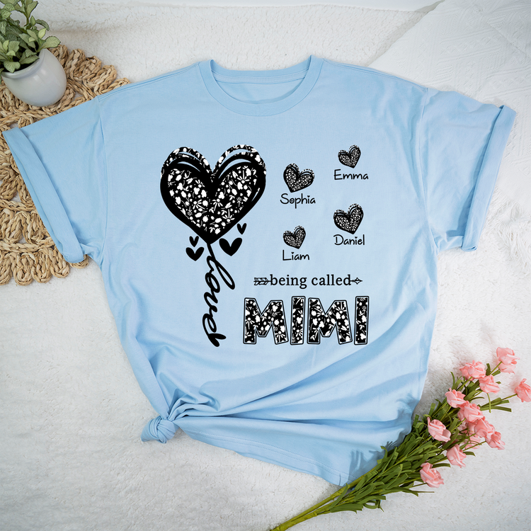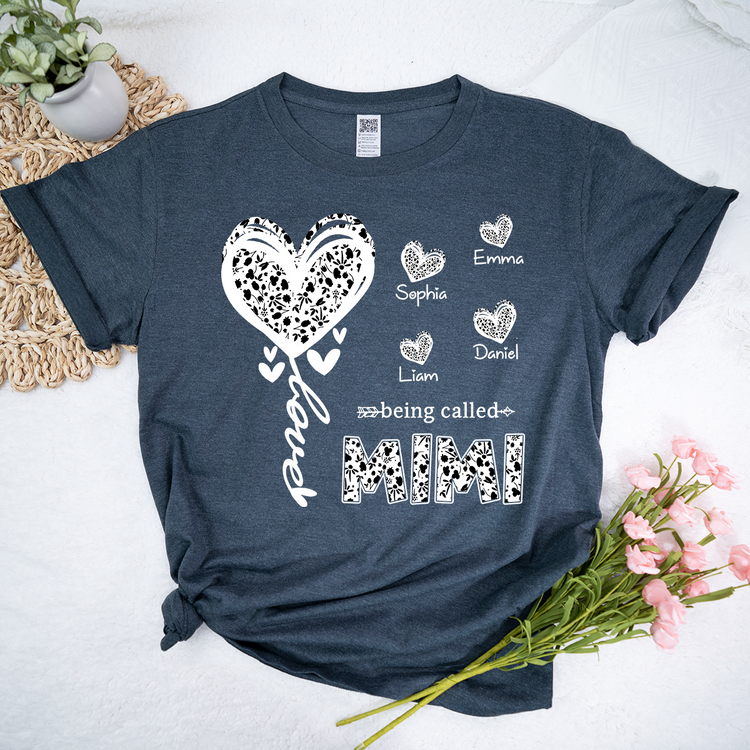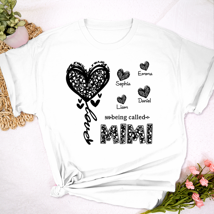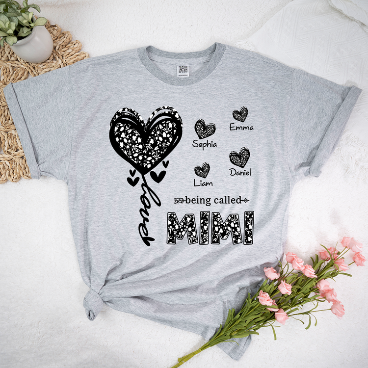Personalized Mimi Shirt with Grandkids Names, Being Called Mimi Floral Heart Grandma T-Shirt