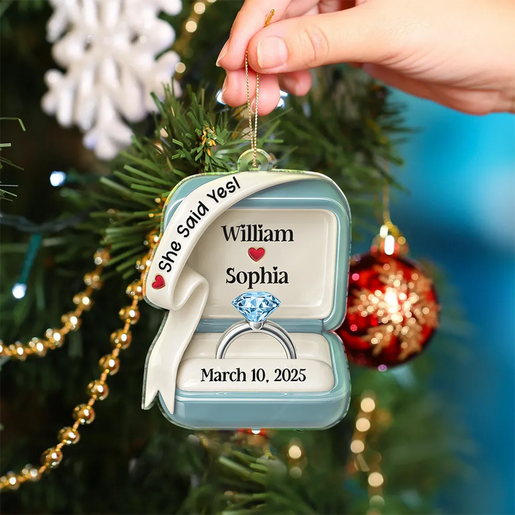 She Said Yes Engaged Married Ring Box – Personalized Custom Shaped Acrylic Ornament, Unique Wedding & Engagement Gift for Couples Ornament
