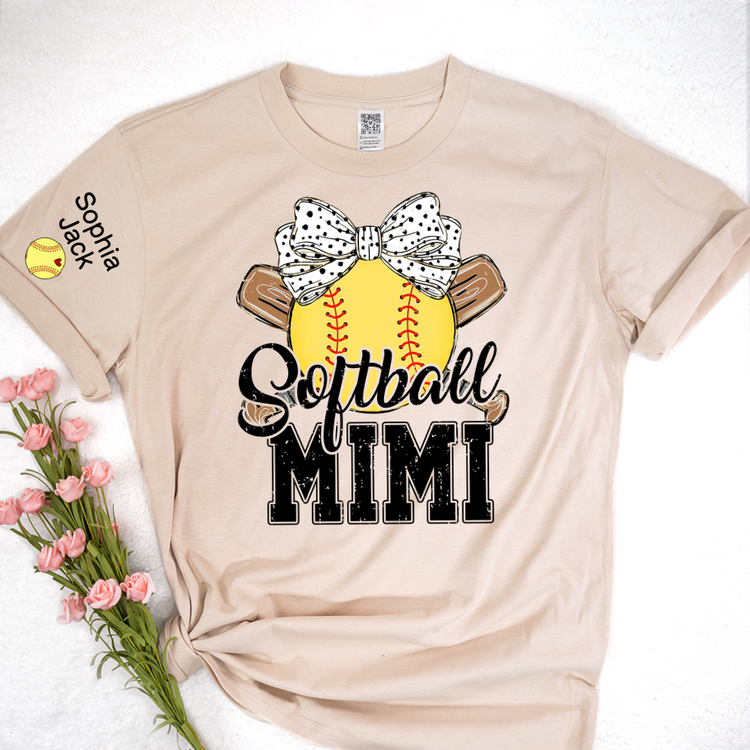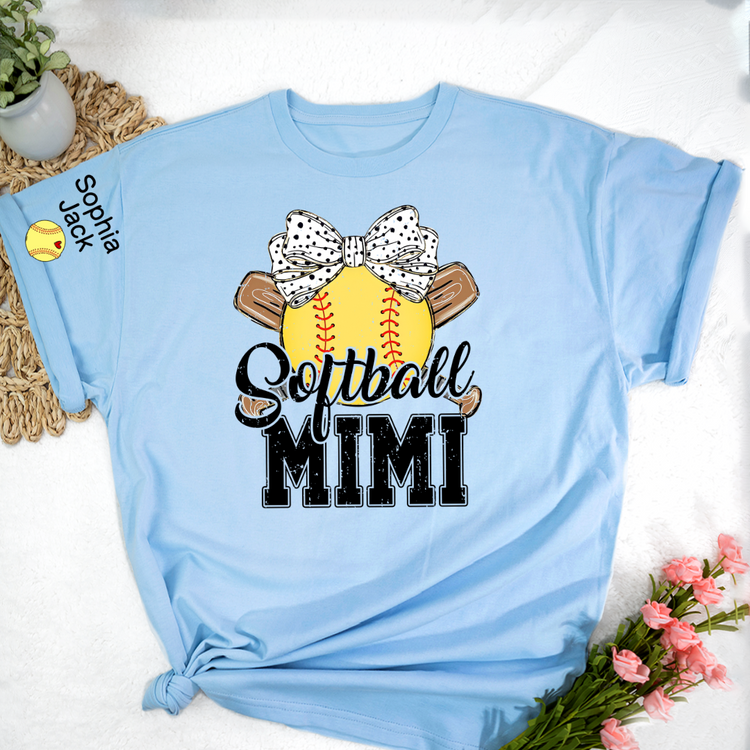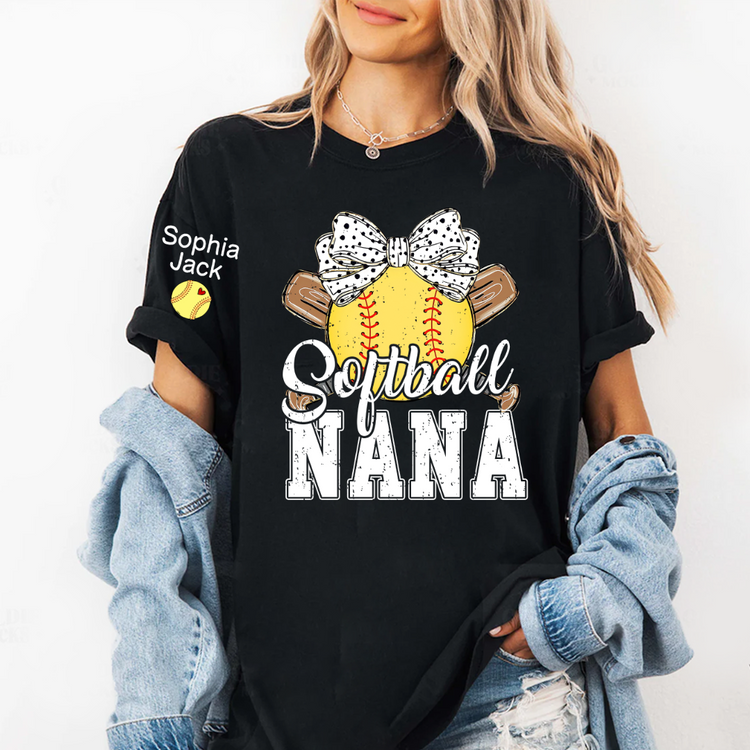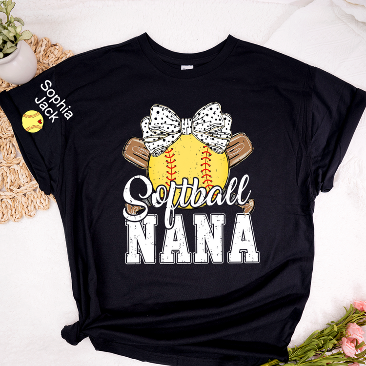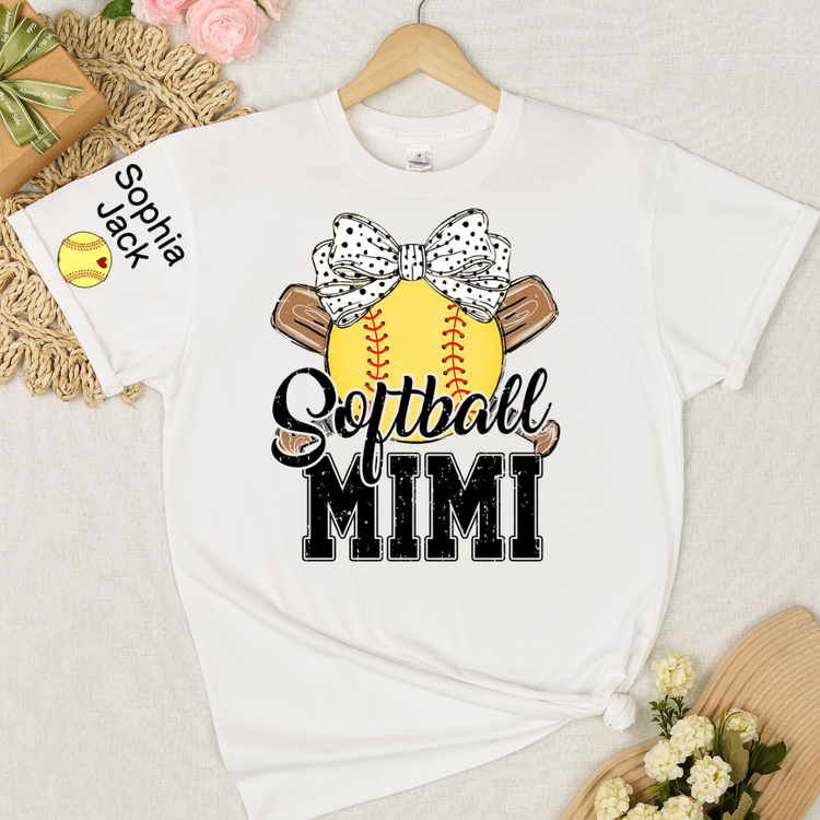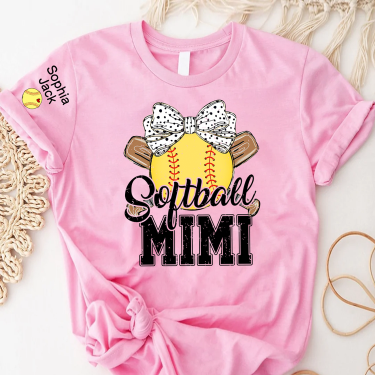 Softball Game Day Softball Nana Gigi Mimi Grandma and Grandkids Personalized T-shirt