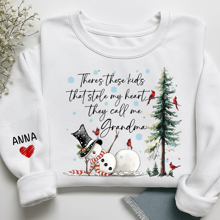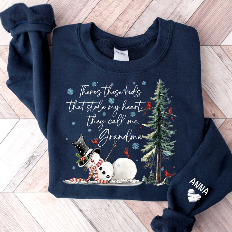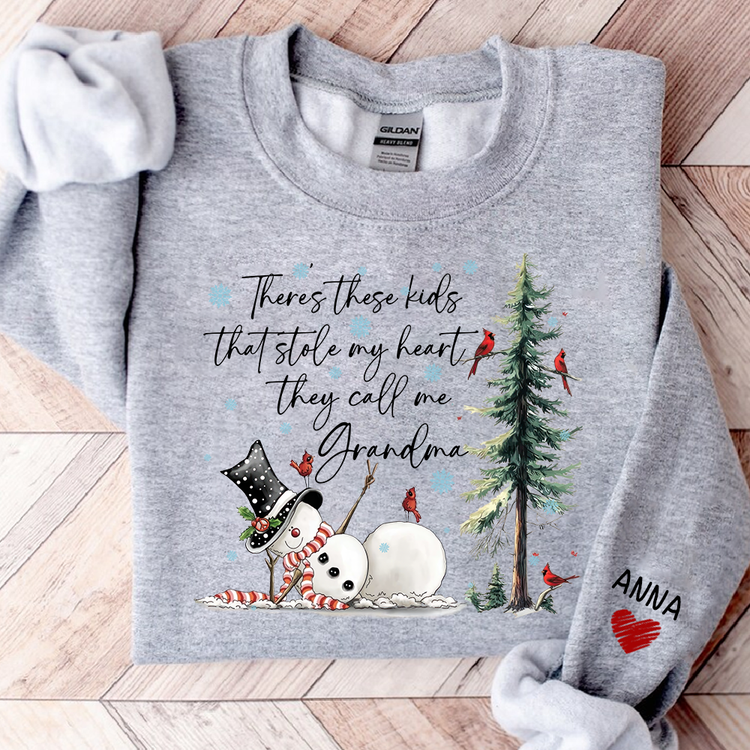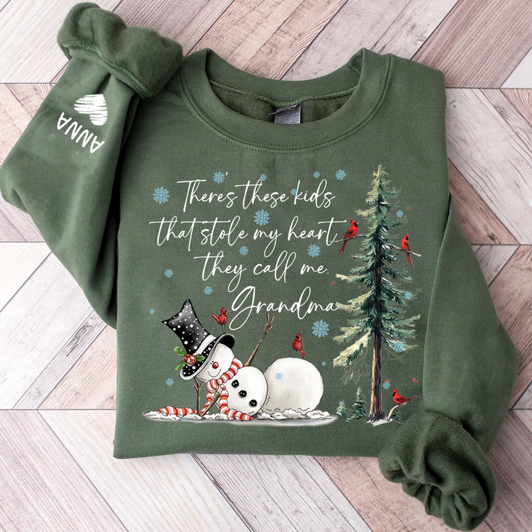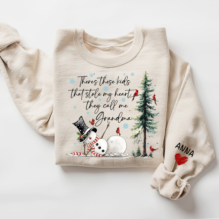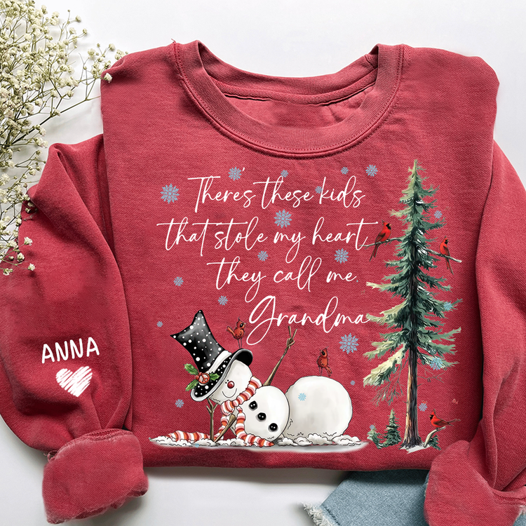 There’s These Kids That Stole My Heart They Call Me Grandma Sweatshirt, Personalized Christmas Shirt For Grandma And Kids