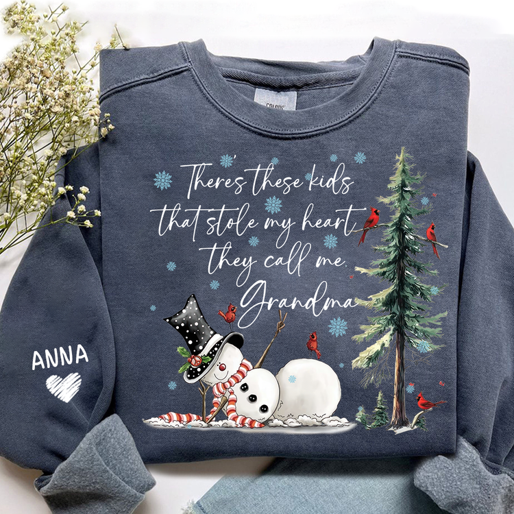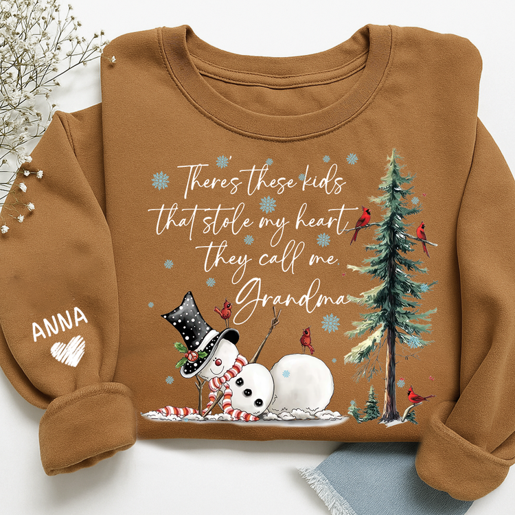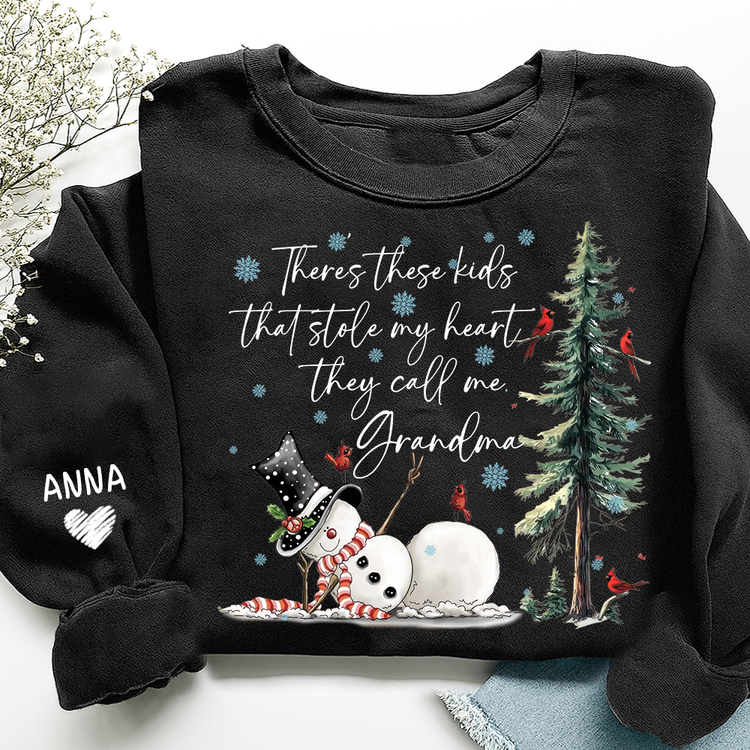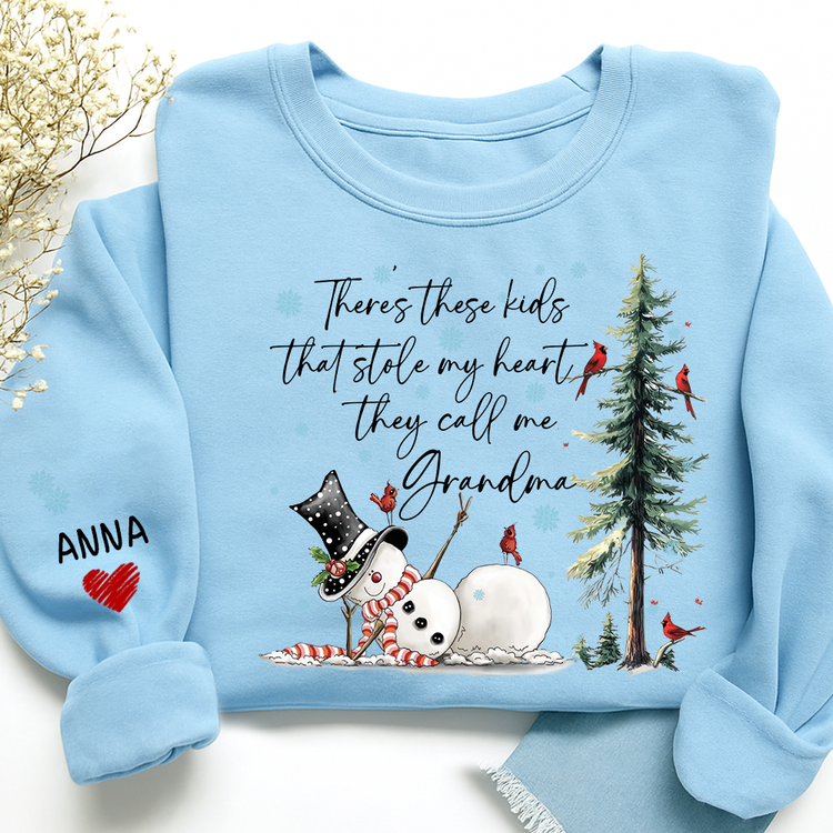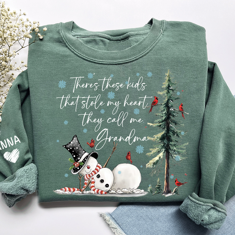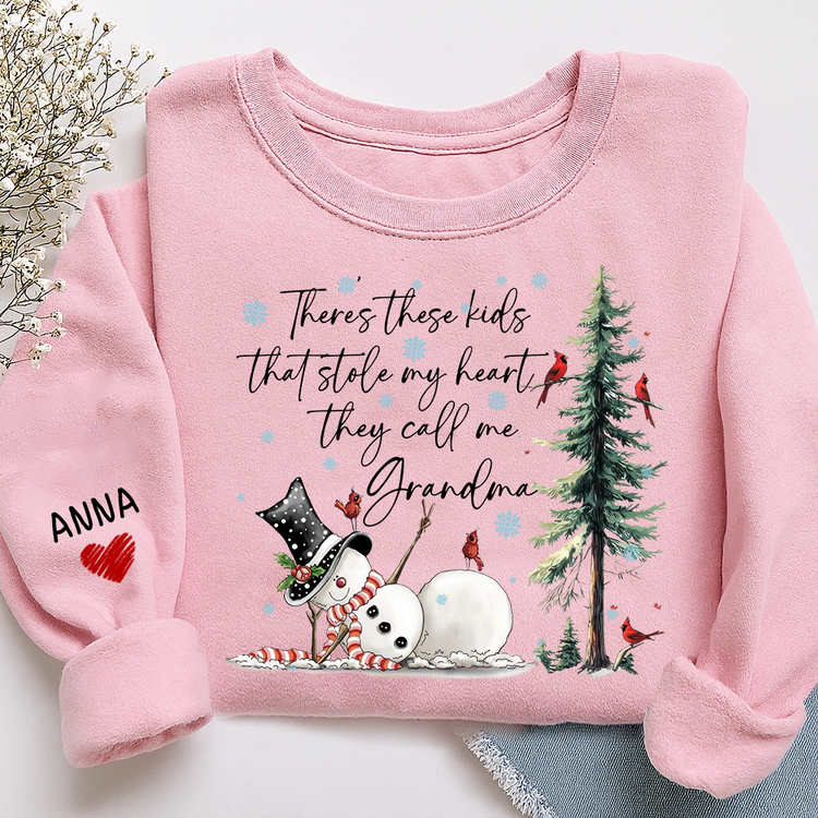 There’s These Kids That Stole My Heart They Call Me Grandma Sweatshirt, Personalized Christmas Shirt For Grandma And Kids