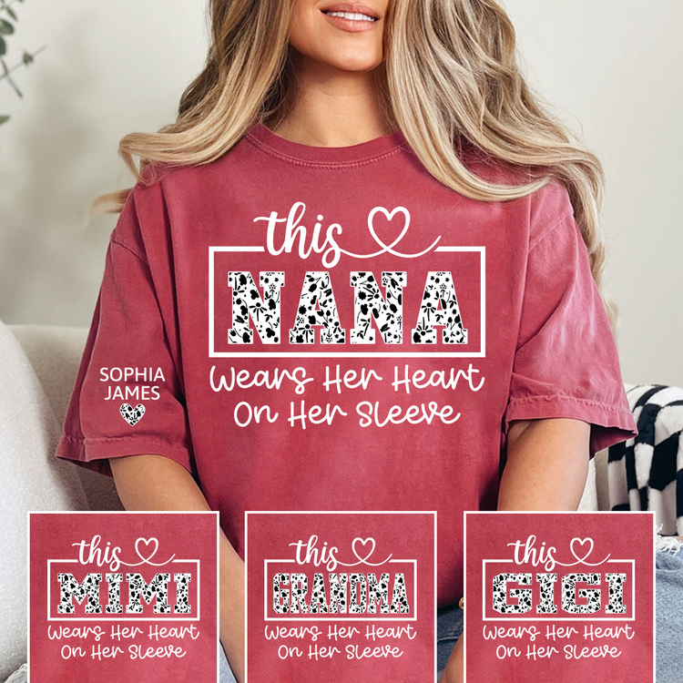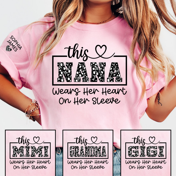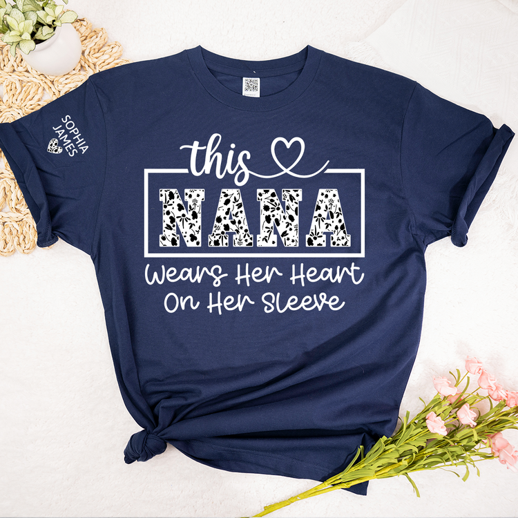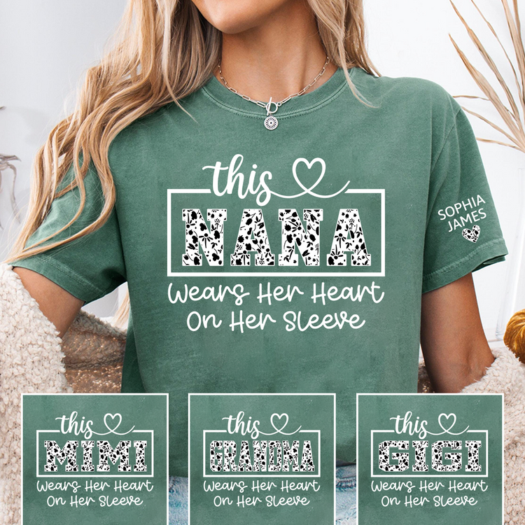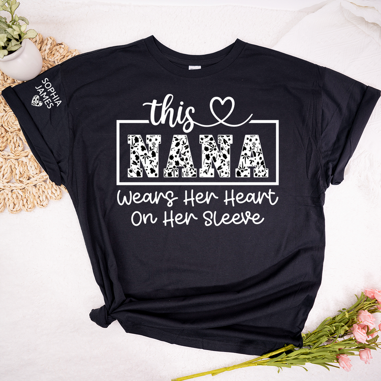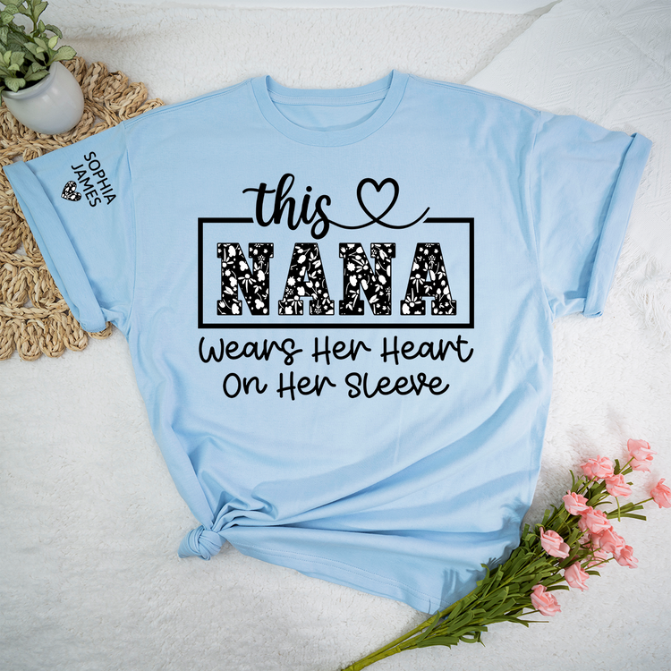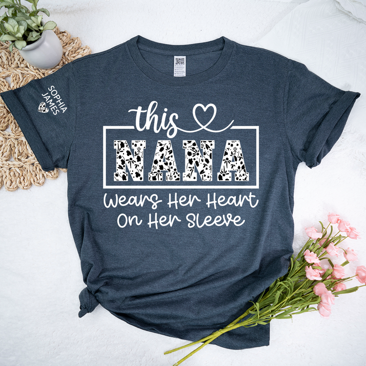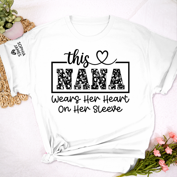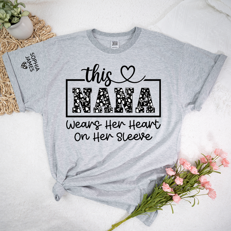 This Nana Wears Her Heart on Her Sleeve Floral T-Shirt, Custom Nana Gift for Grandmother